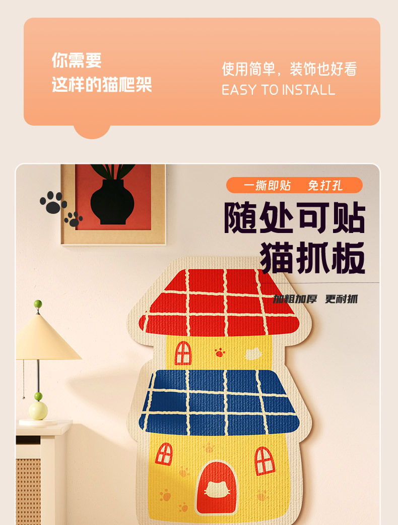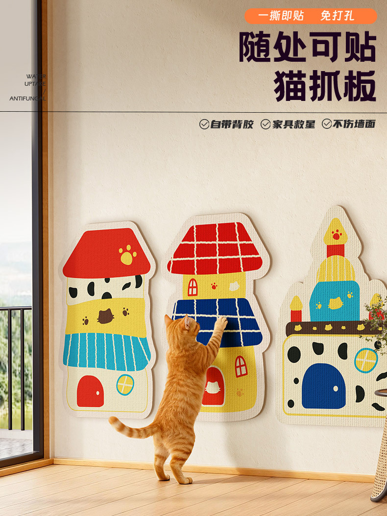 卡通毛毡猫抓板耐磨不掉屑立式墙贴自粘防猫抓沙发保护猫抓垫玩具
