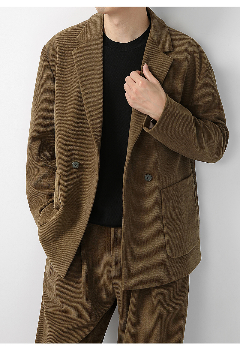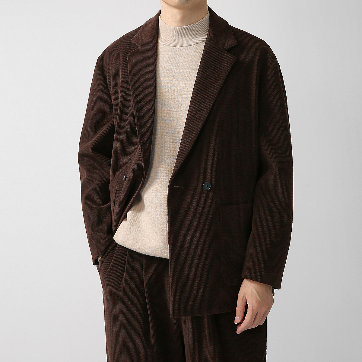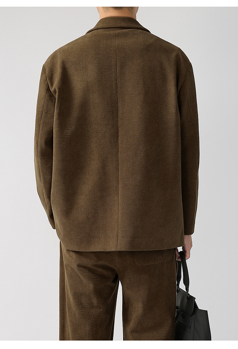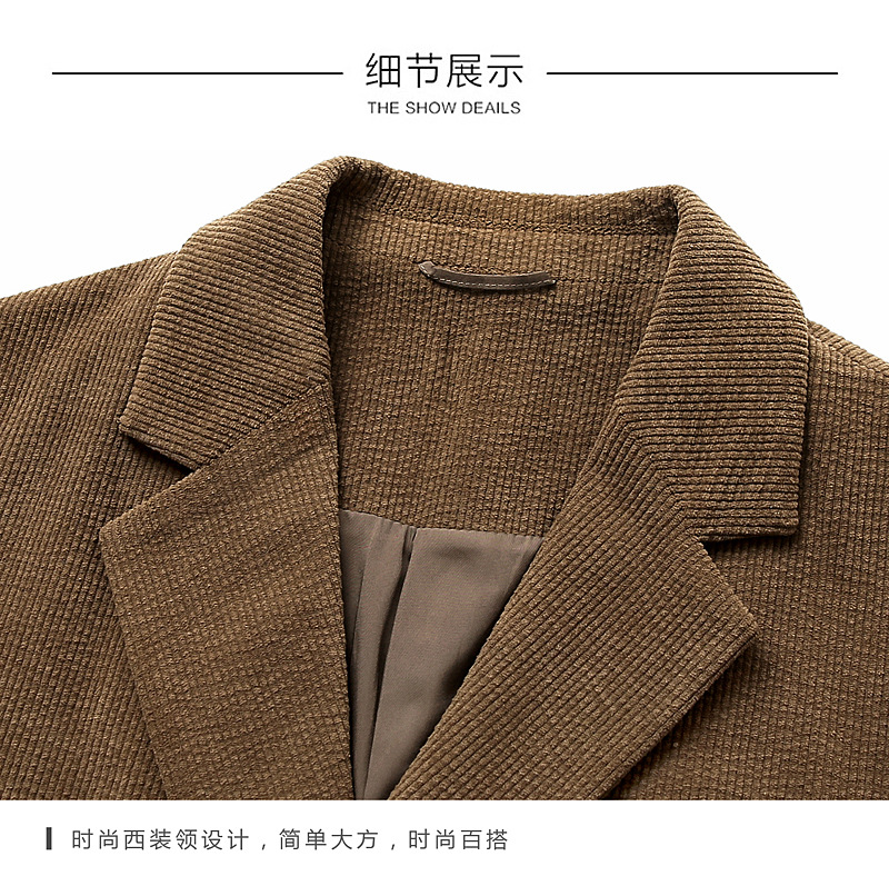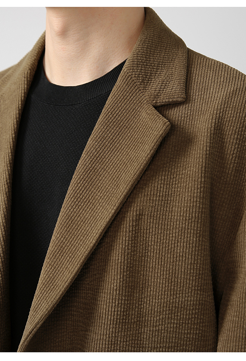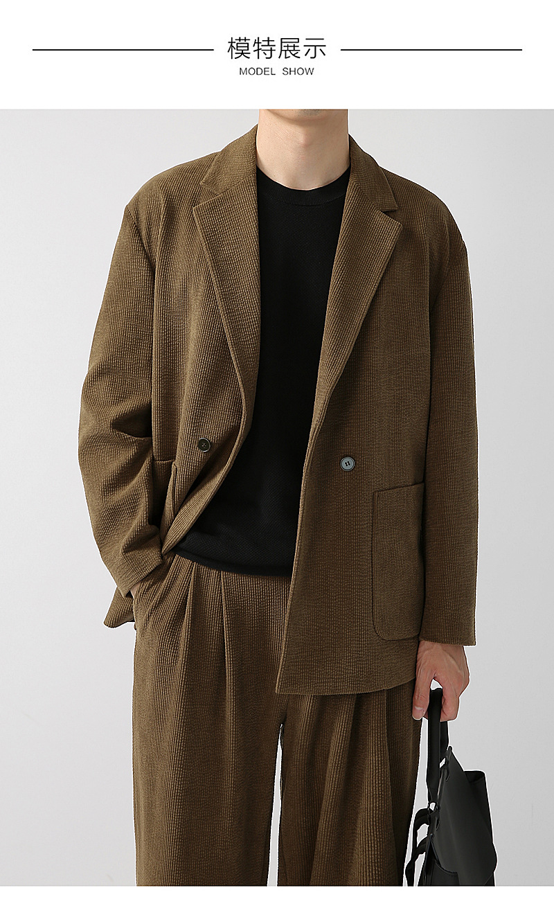 英伦风高级感秋季韩版潮流纯色坑条纹宽松外套男 灯芯绒休闲西服