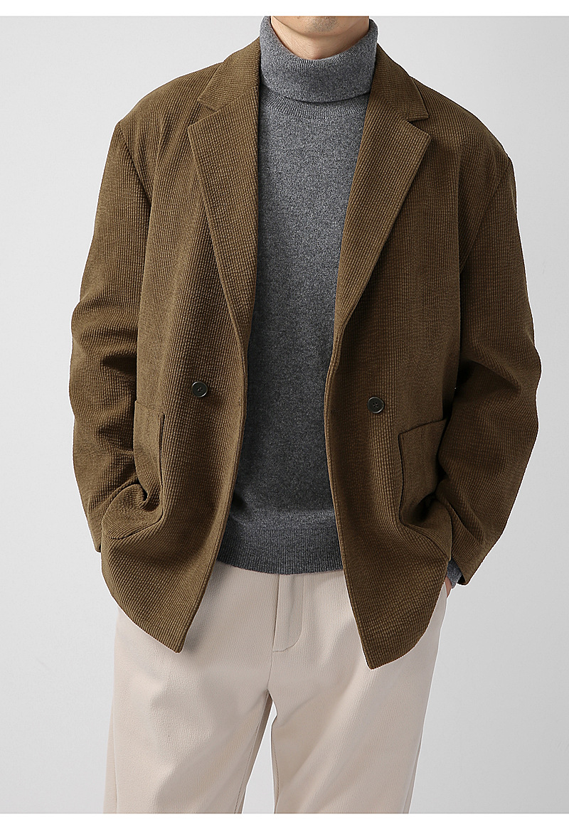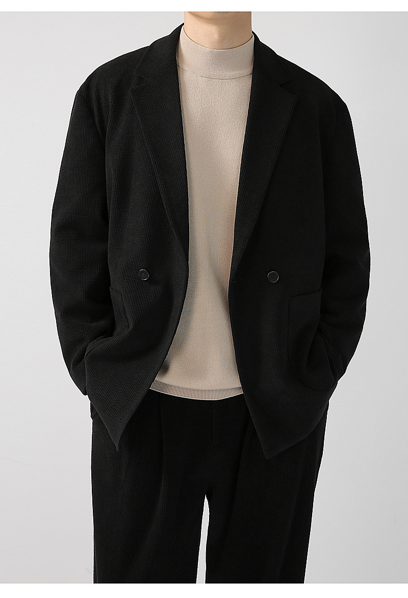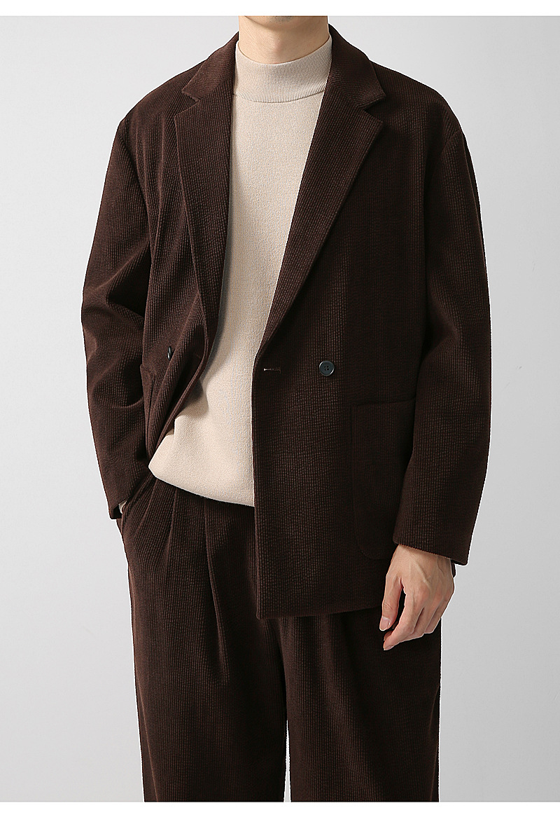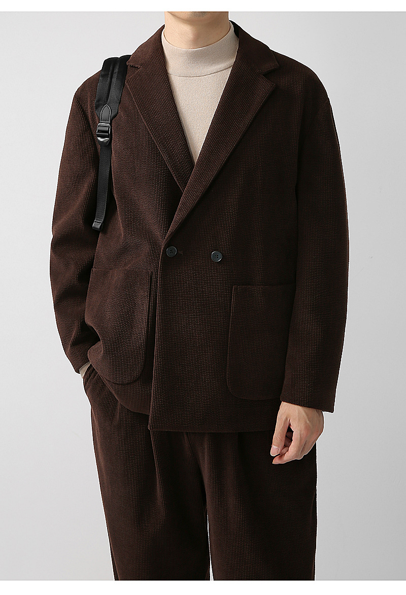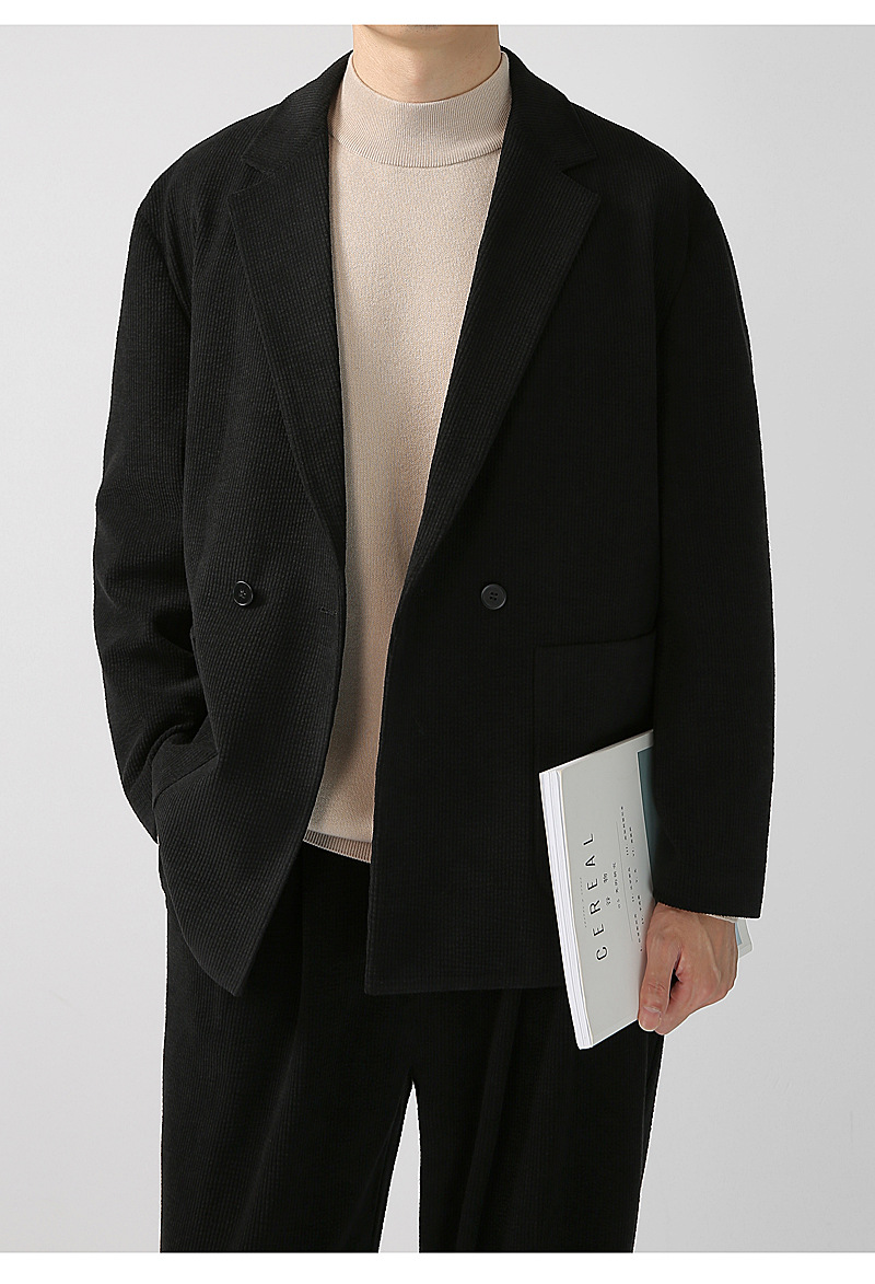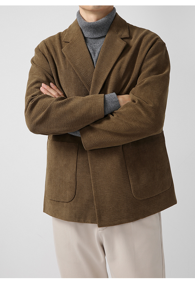 英伦风高级感秋季韩版潮流纯色坑条纹宽松外套男 灯芯绒休闲西服