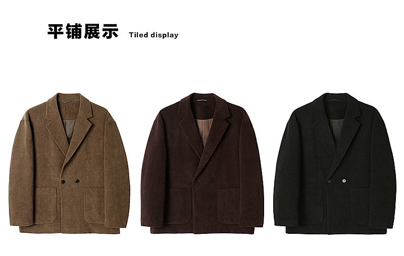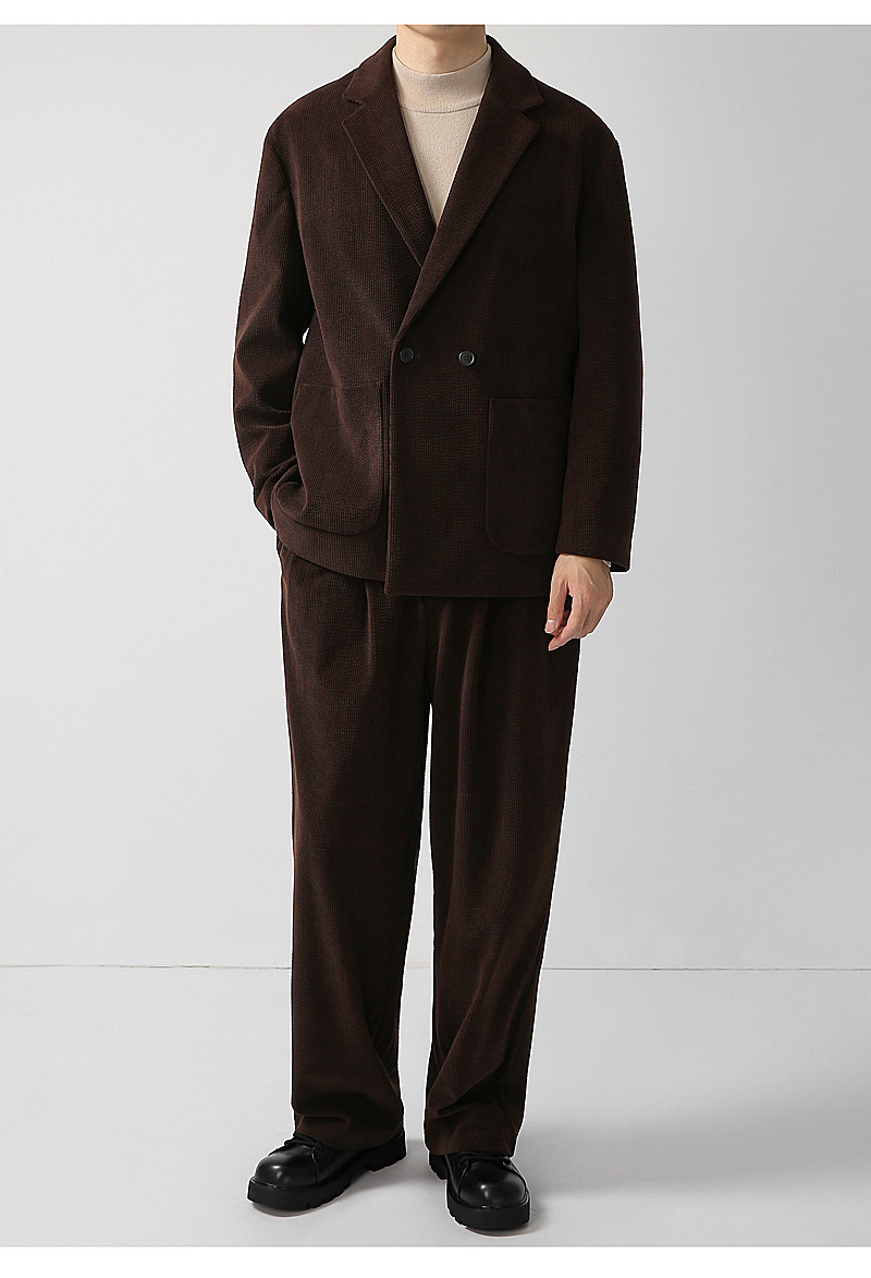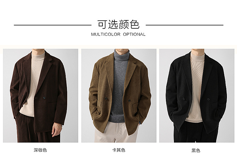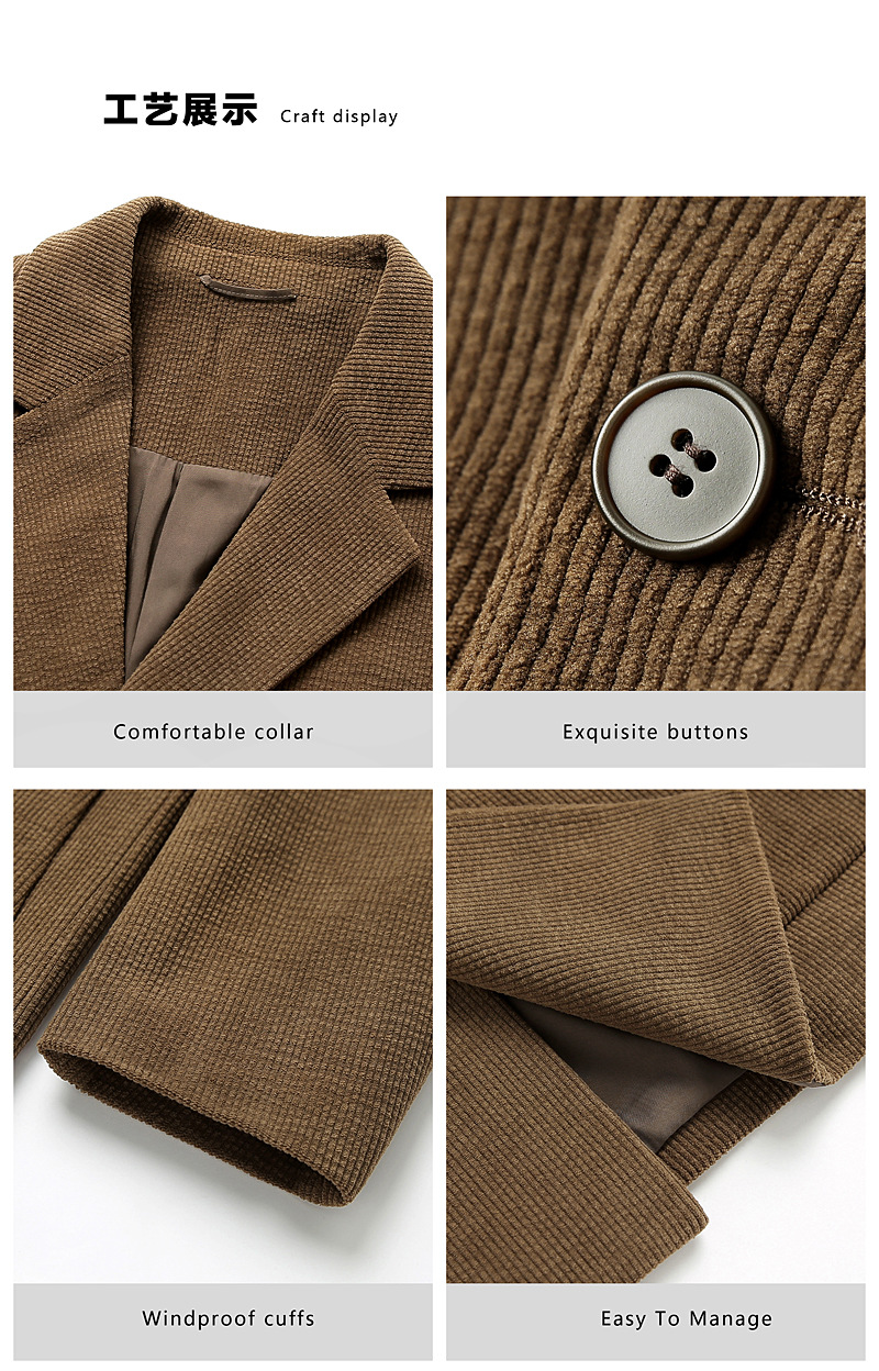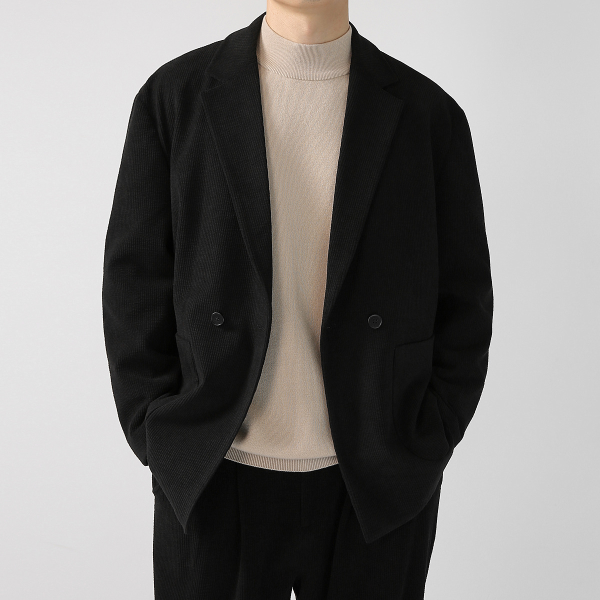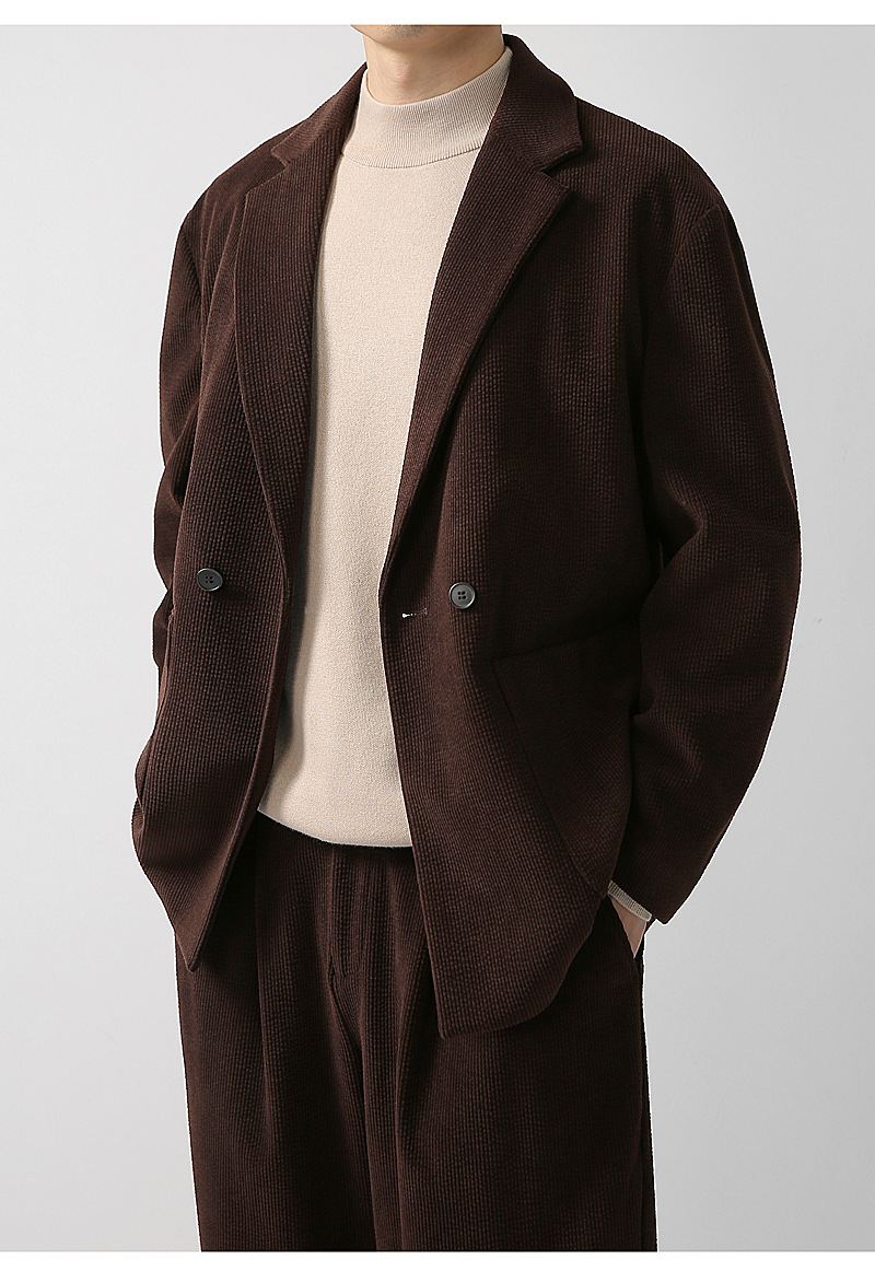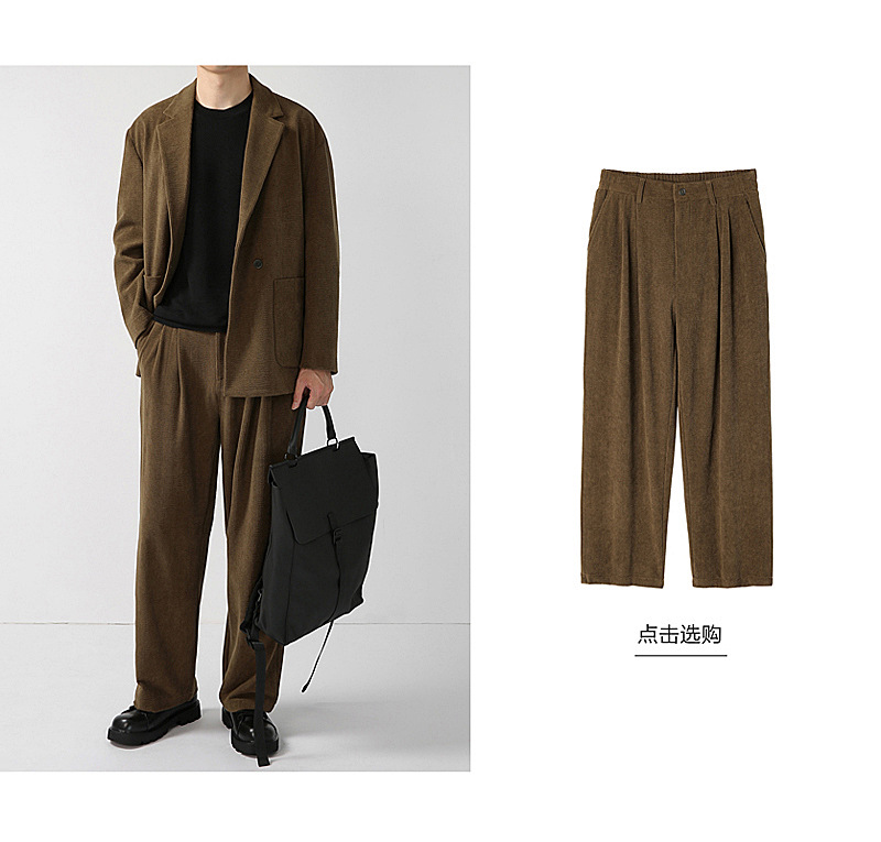 英伦风高级感秋季韩版潮流纯色坑条纹宽松外套男 灯芯绒休闲西服