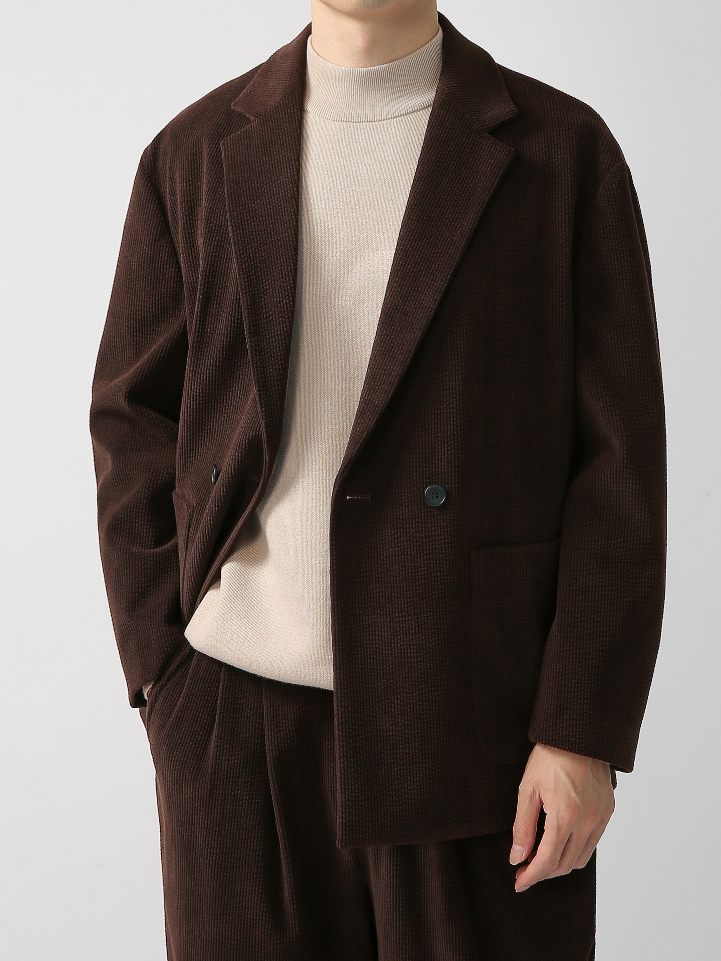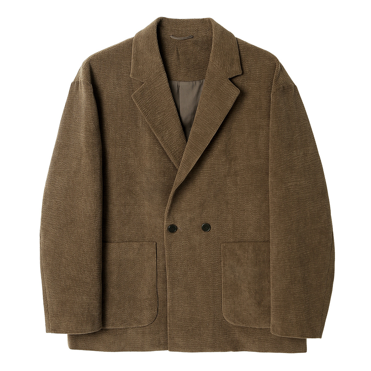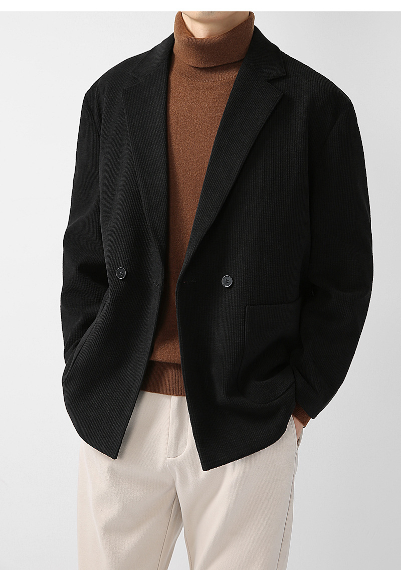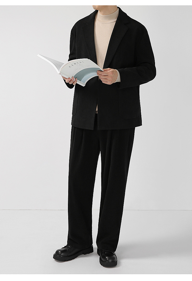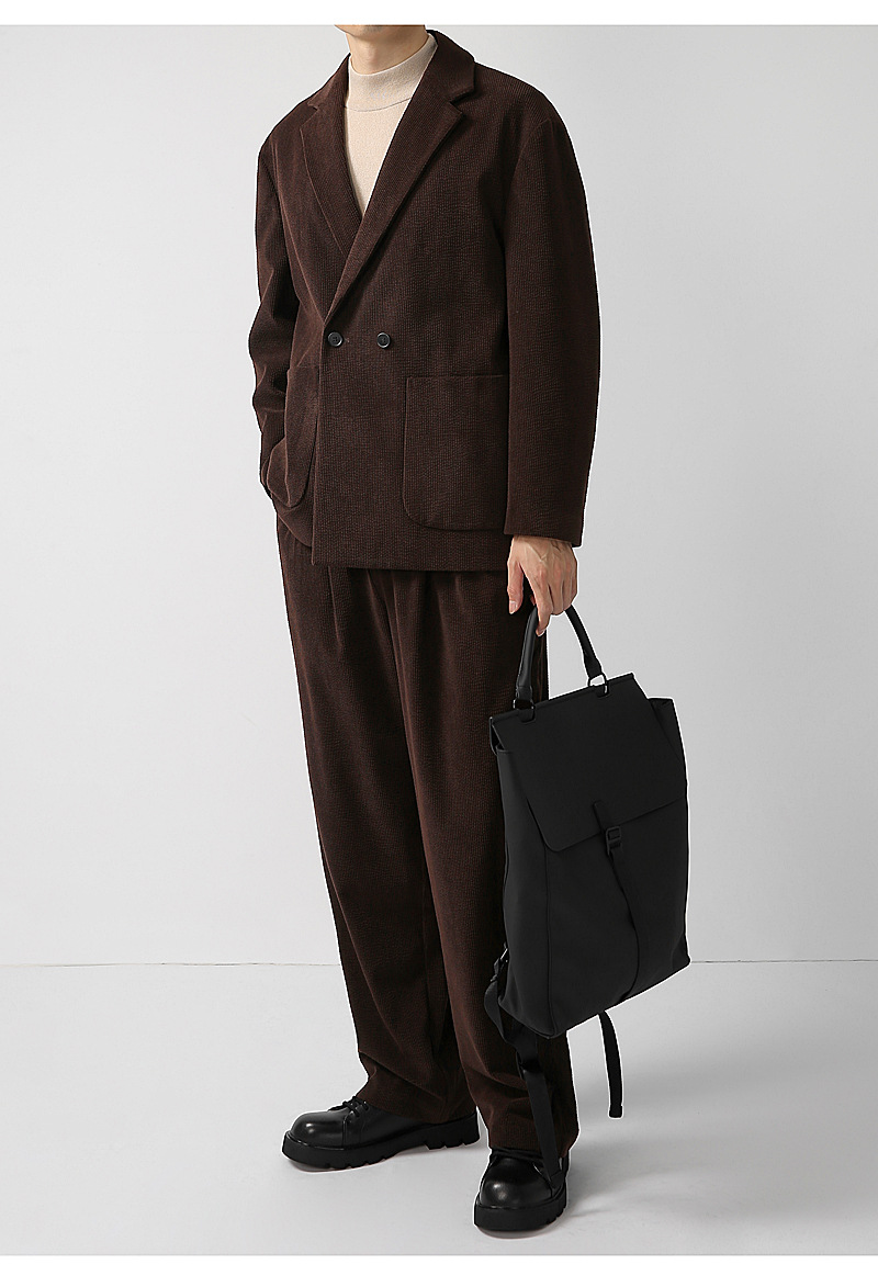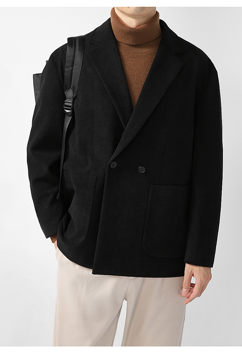 英伦风高级感秋季韩版潮流纯色坑条纹宽松外套男 灯芯绒休闲西服