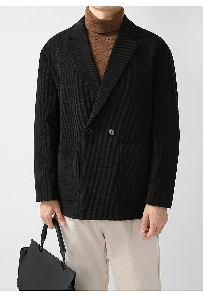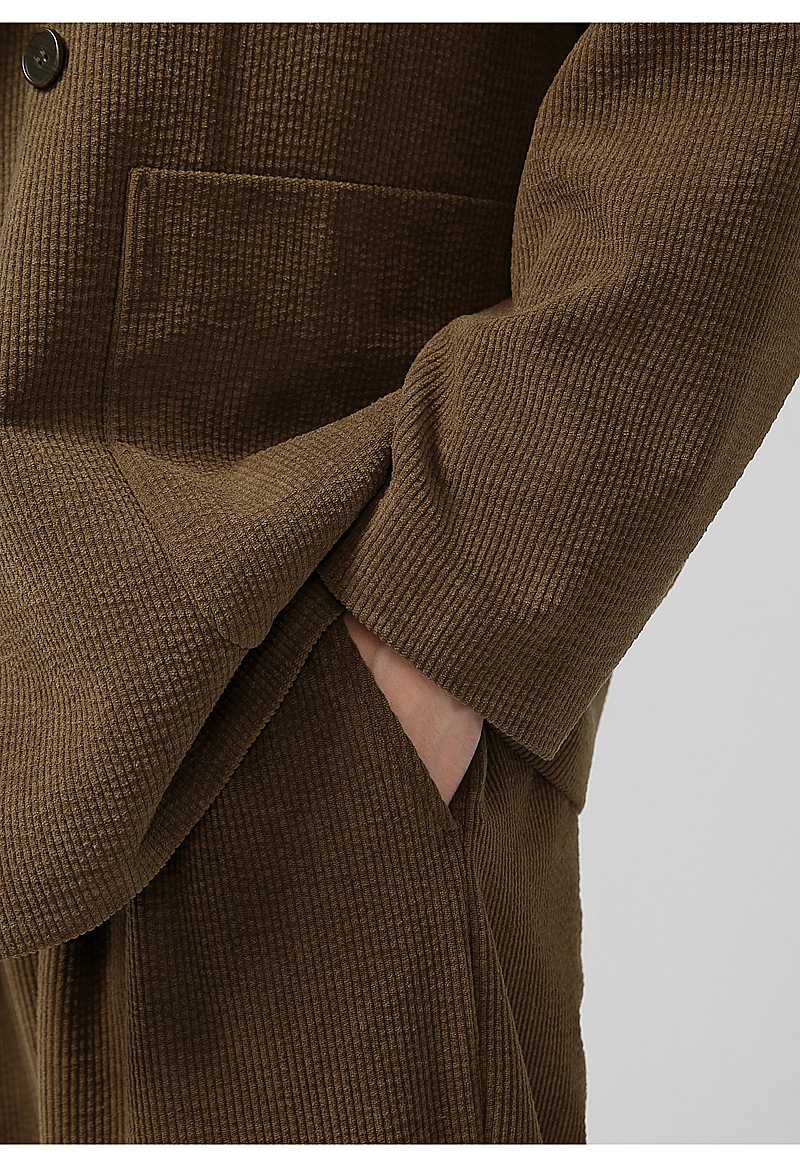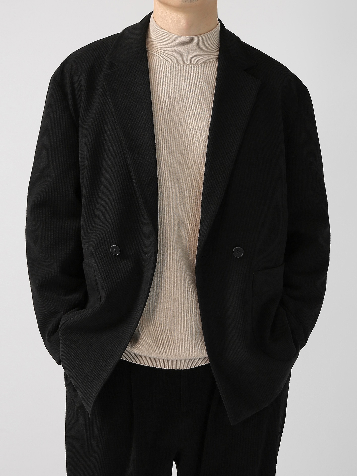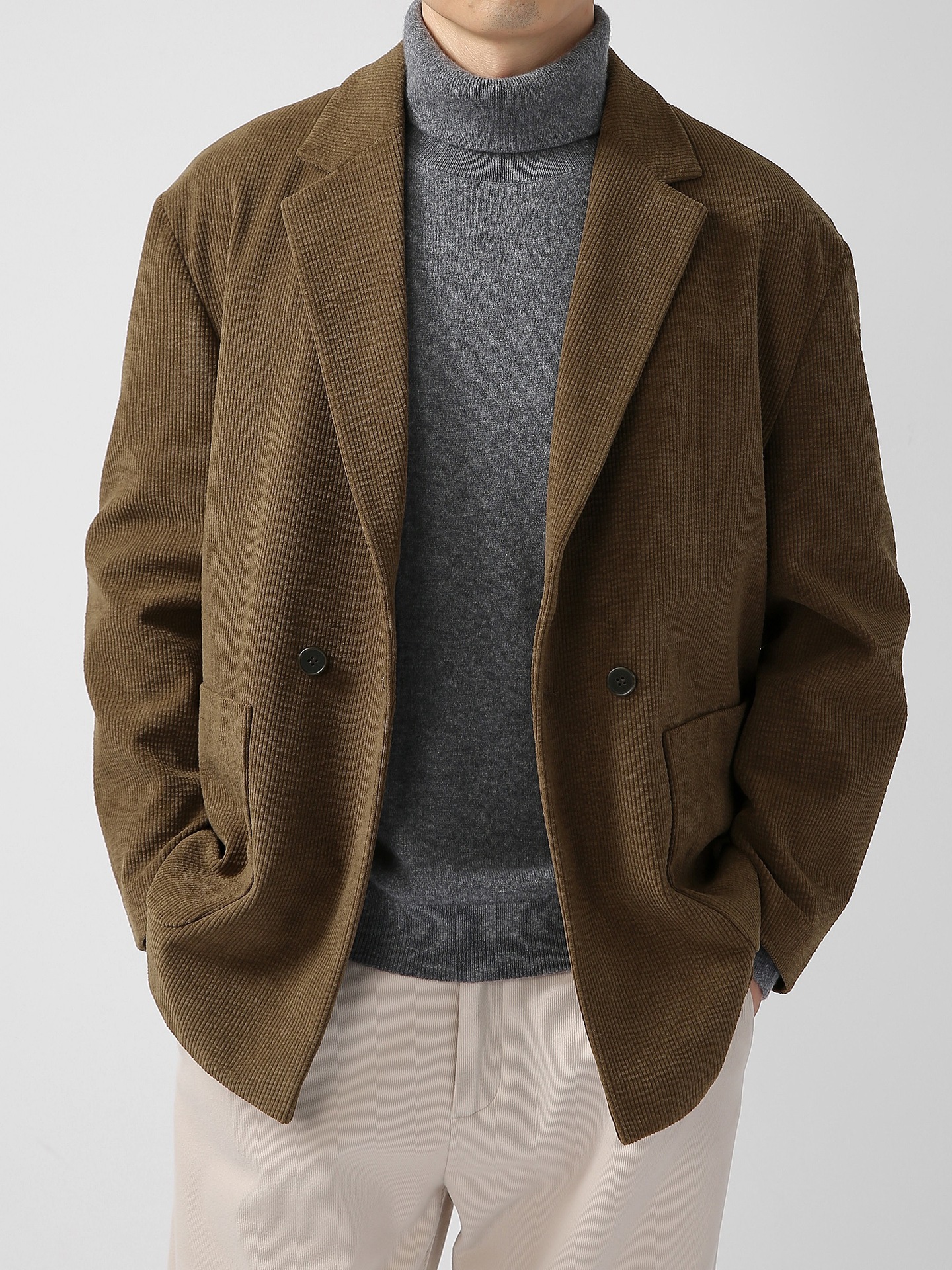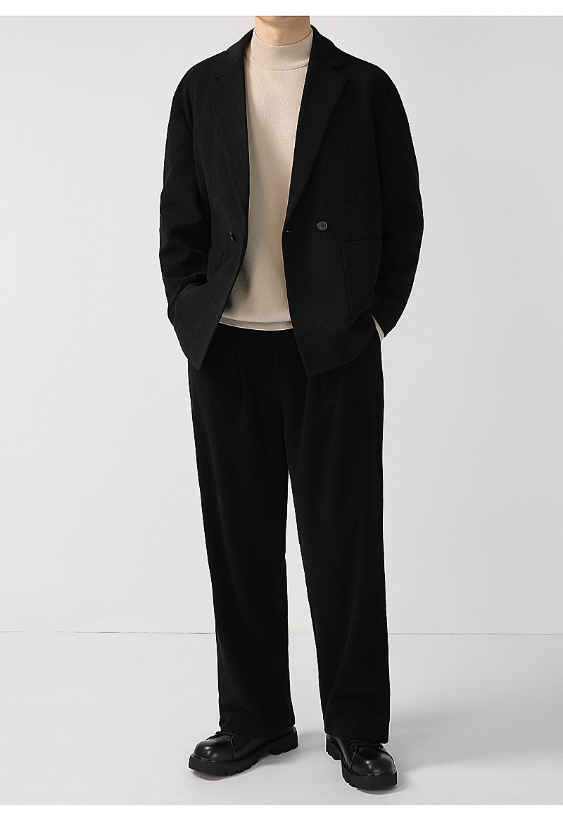 英伦风高级感秋季韩版潮流纯色坑条纹宽松外套男 灯芯绒休闲西服