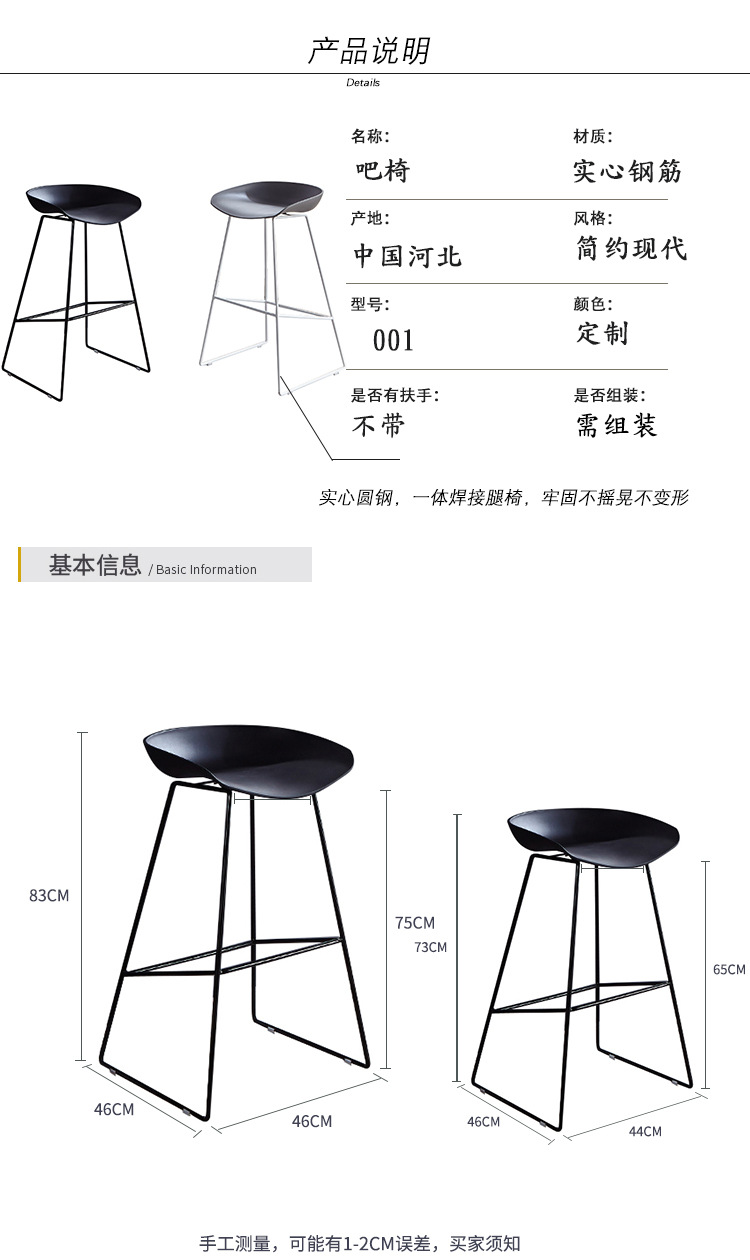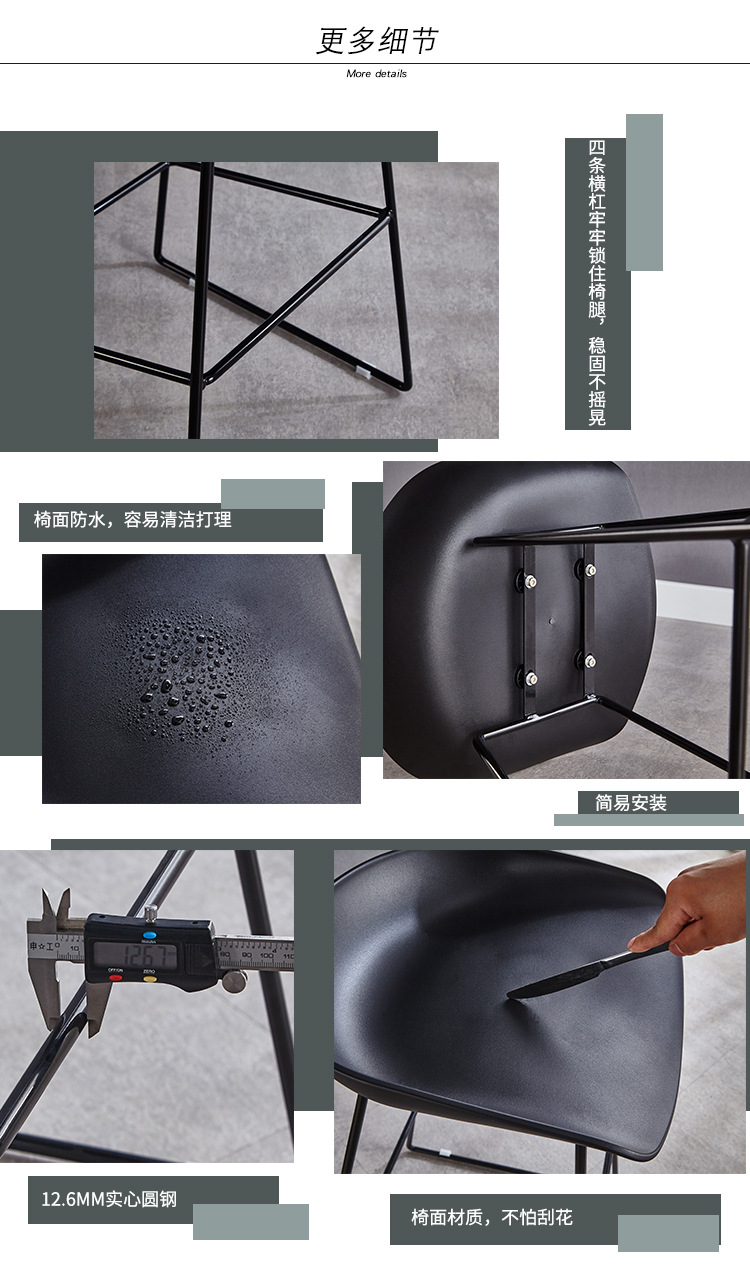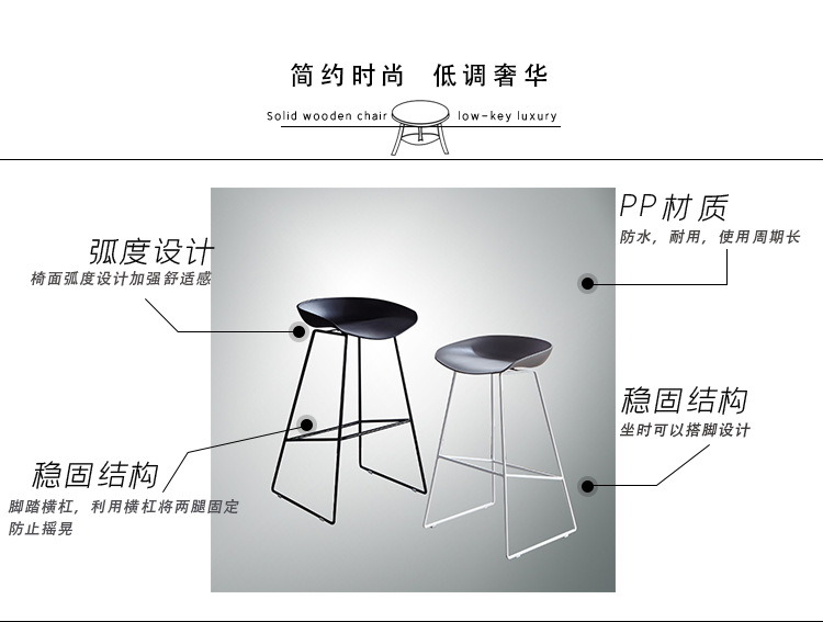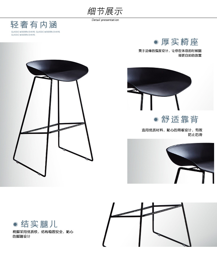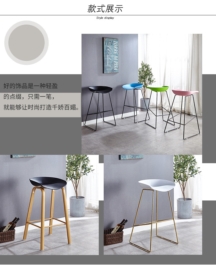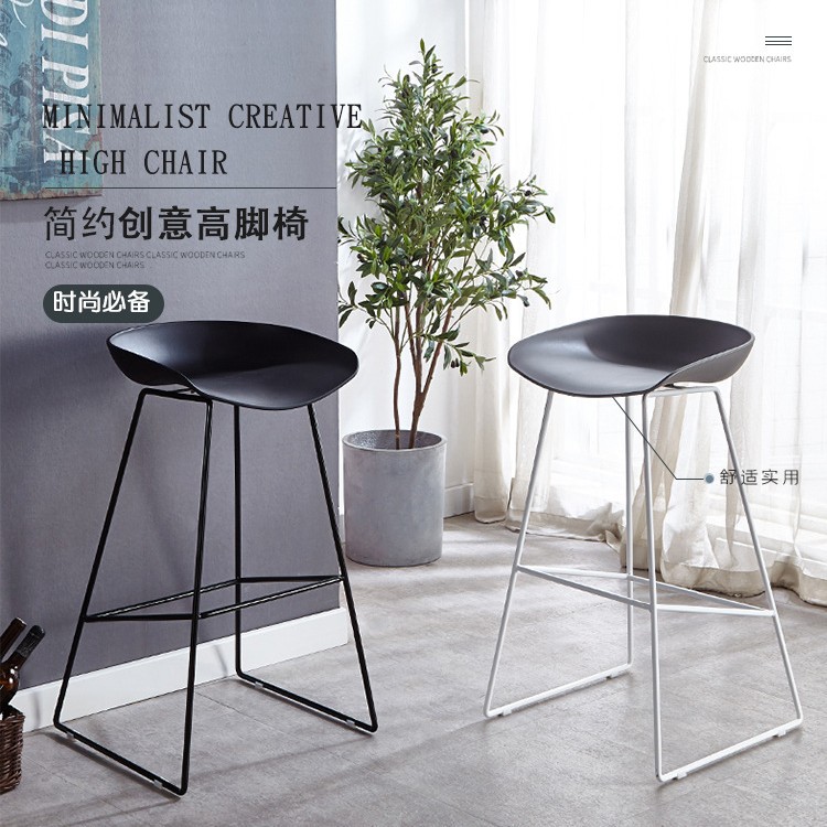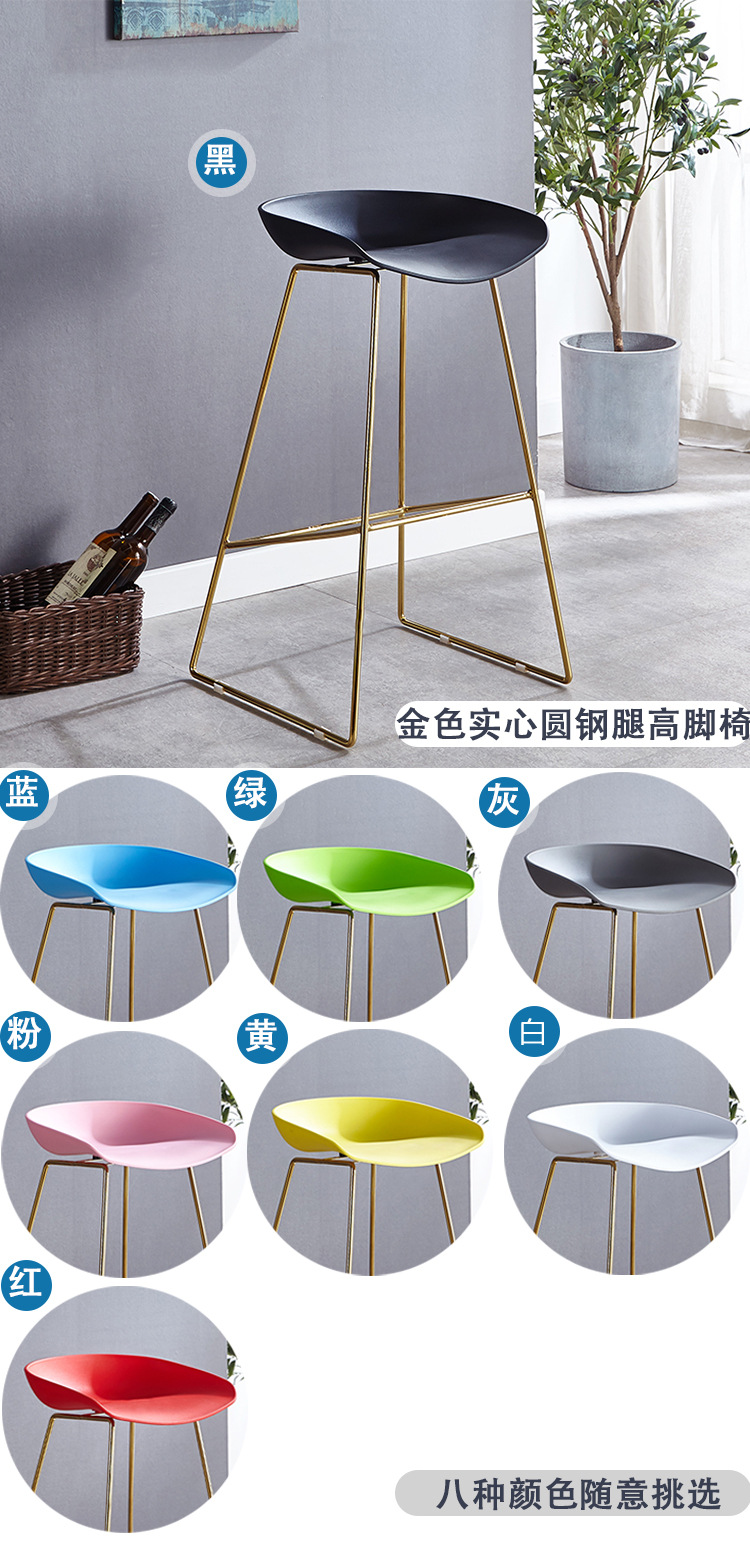 北欧吧台椅铁艺吧椅金色高脚凳餐椅咖啡厅酒吧椅子金属骨架轻奢