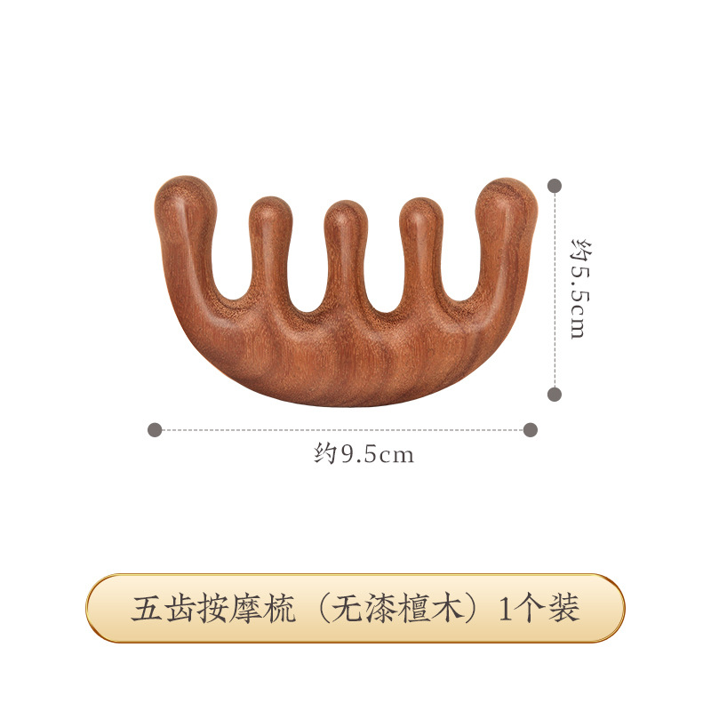 金丝檀按摩梳子头部经络梳 宽齿梳五齿梳头疗神器木梳经络按摩梳