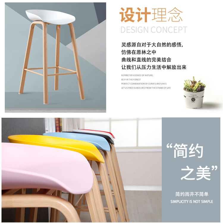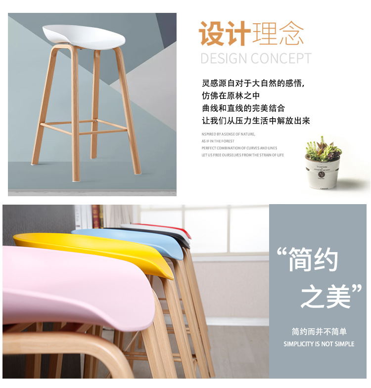 高脚吧椅现代简约酒吧椅休闲咖啡厅椅子时尚塑料铁艺休闲餐厅洽谈
