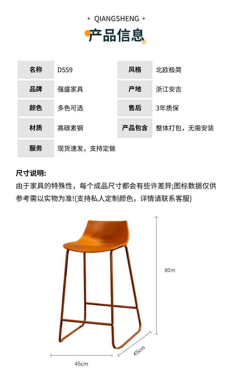 北欧现代极简吧台椅跨境家用休闲椅酒吧高脚凳咖啡厅铁艺高脚椅子