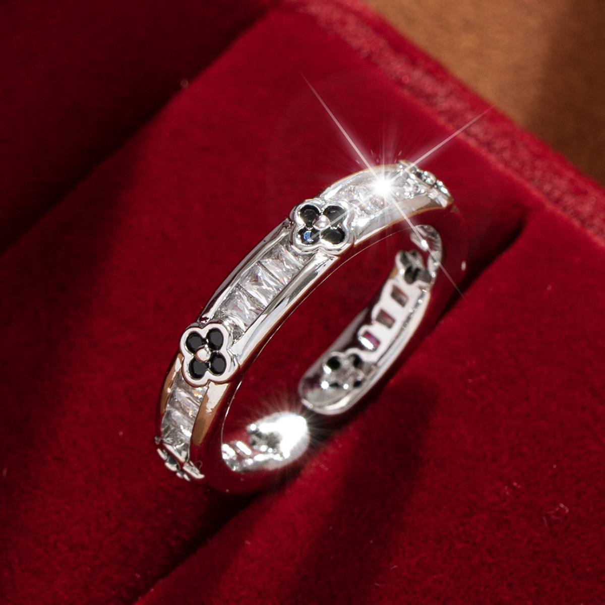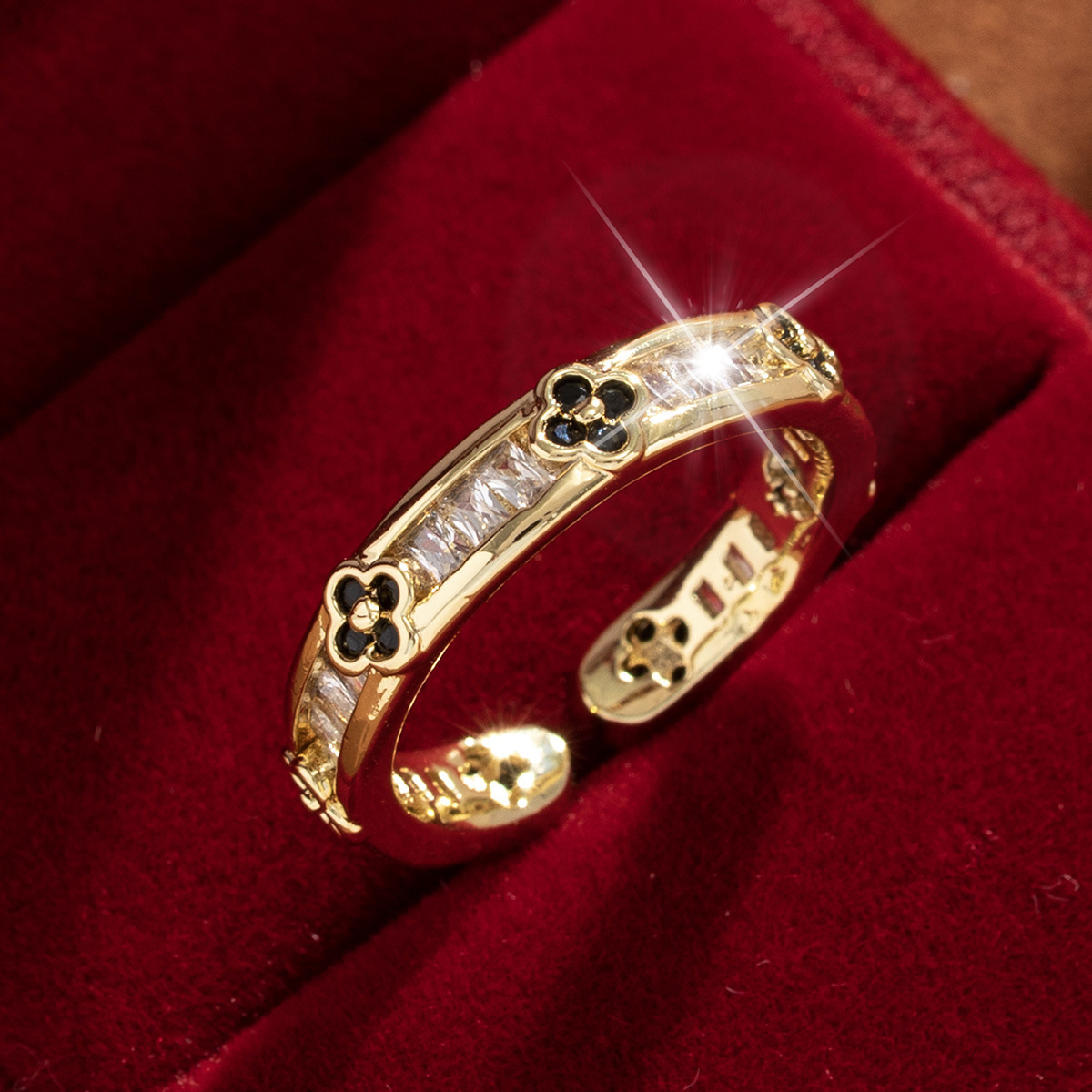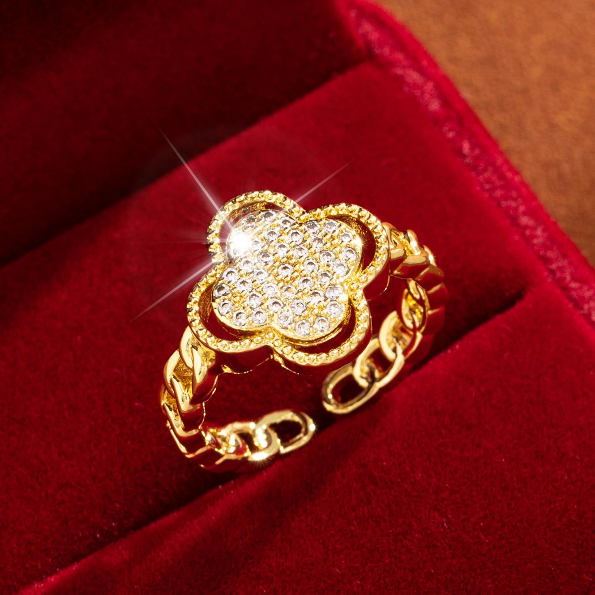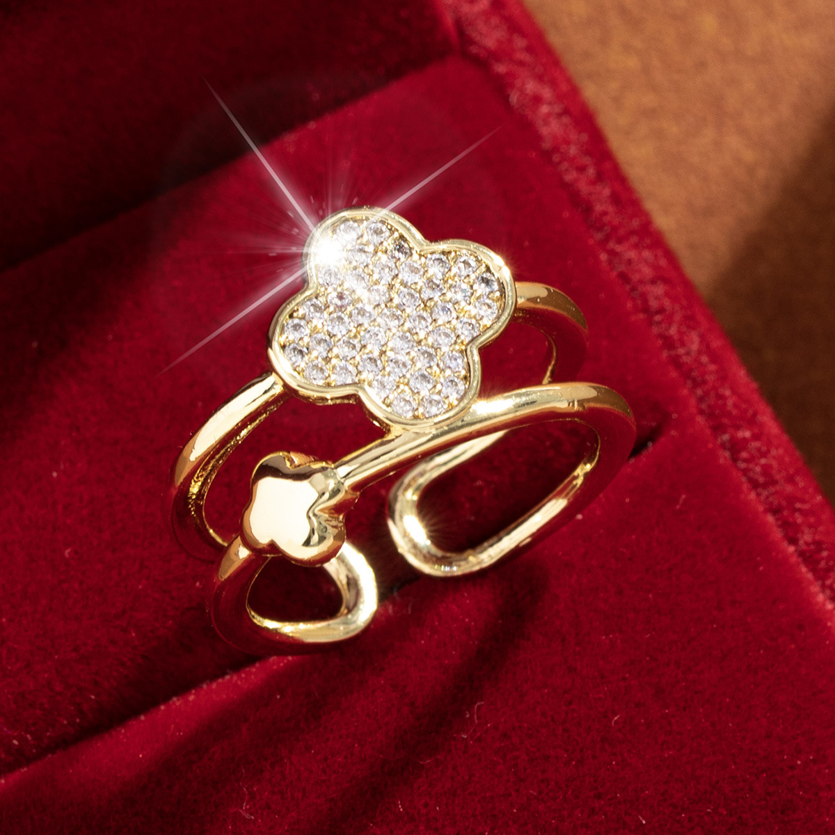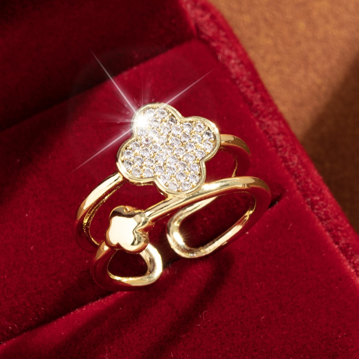 【定制】时尚奢华锆石四叶草戒指潮流感小众百搭ins开口气质指环