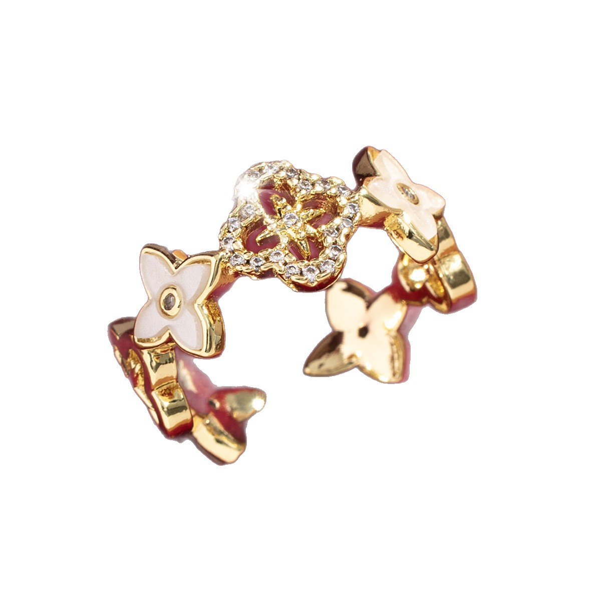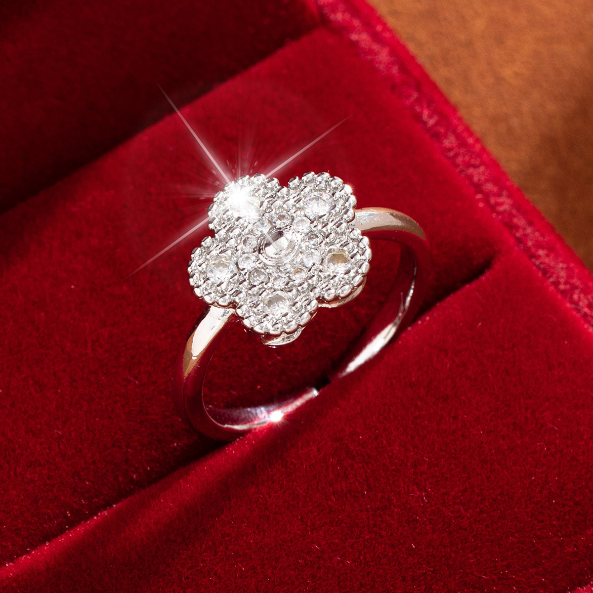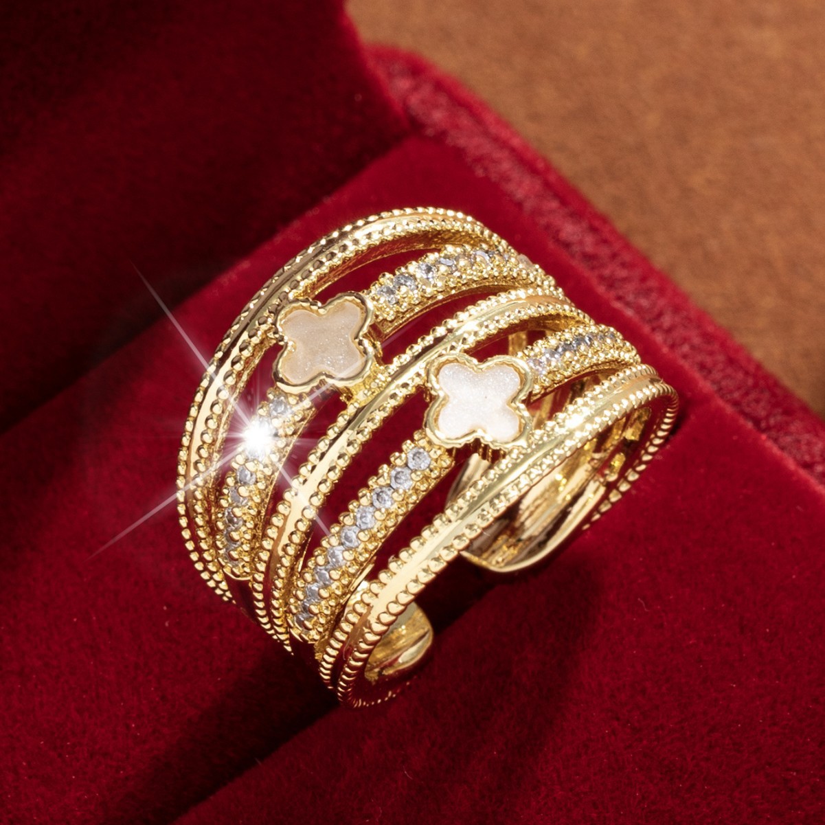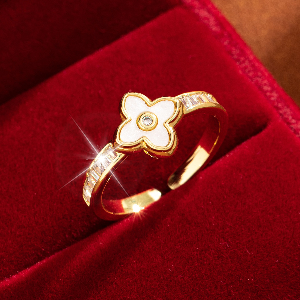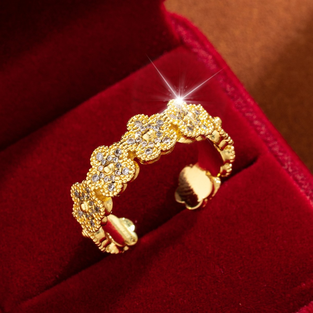 【定制】时尚奢华锆石四叶草戒指潮流感小众百搭ins开口气质指环