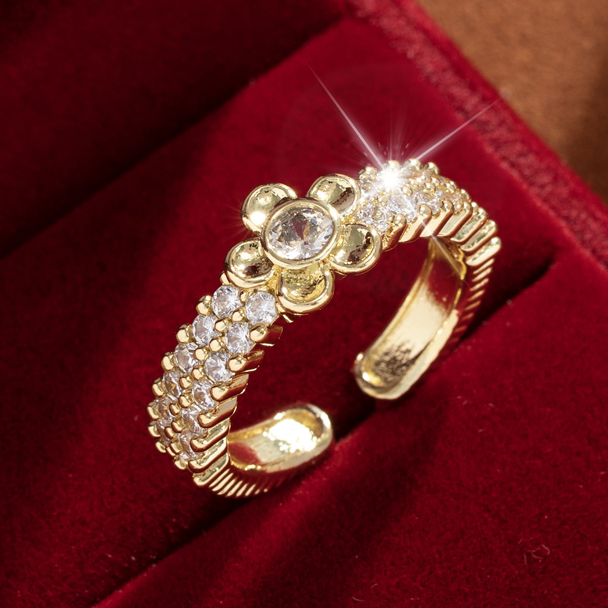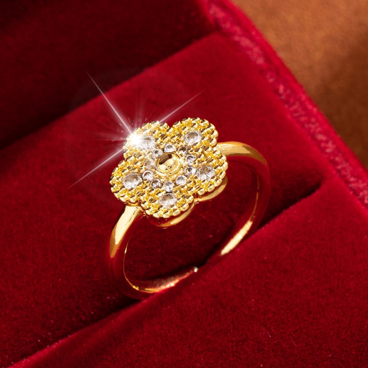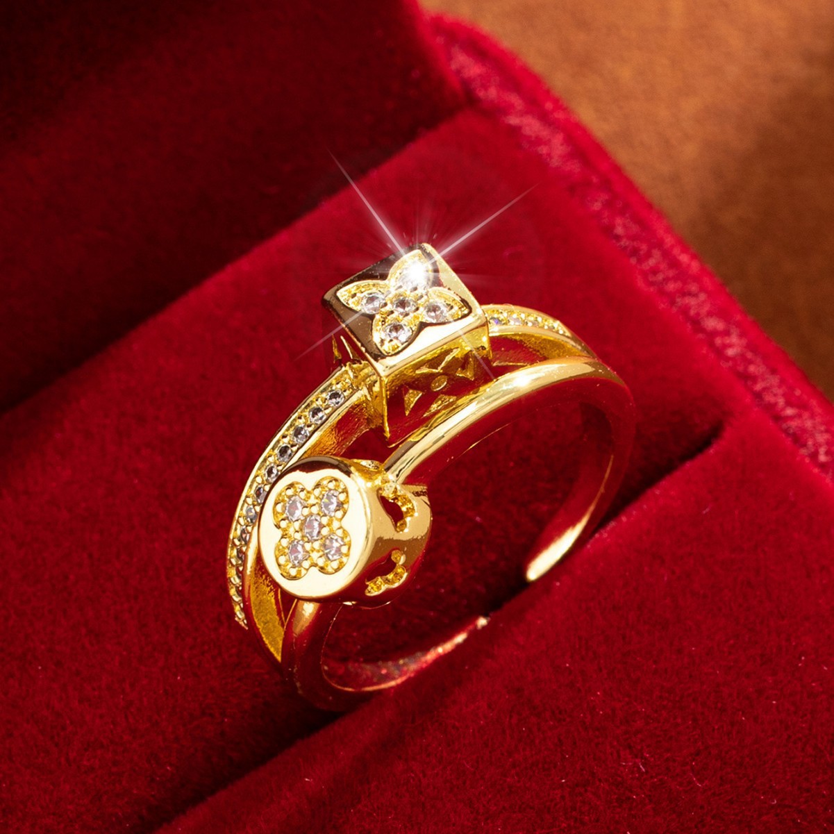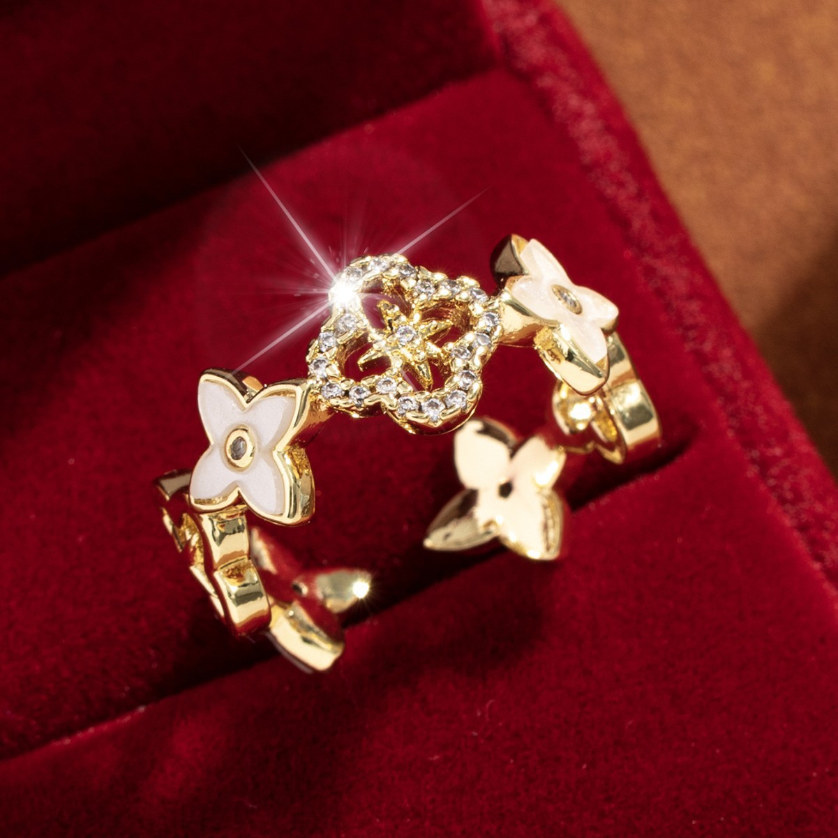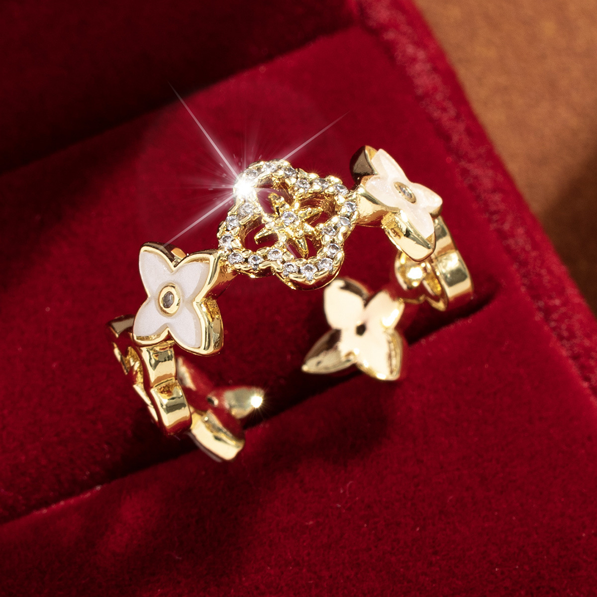 【定制】时尚奢华锆石四叶草戒指潮流感小众百搭ins开口气质指环