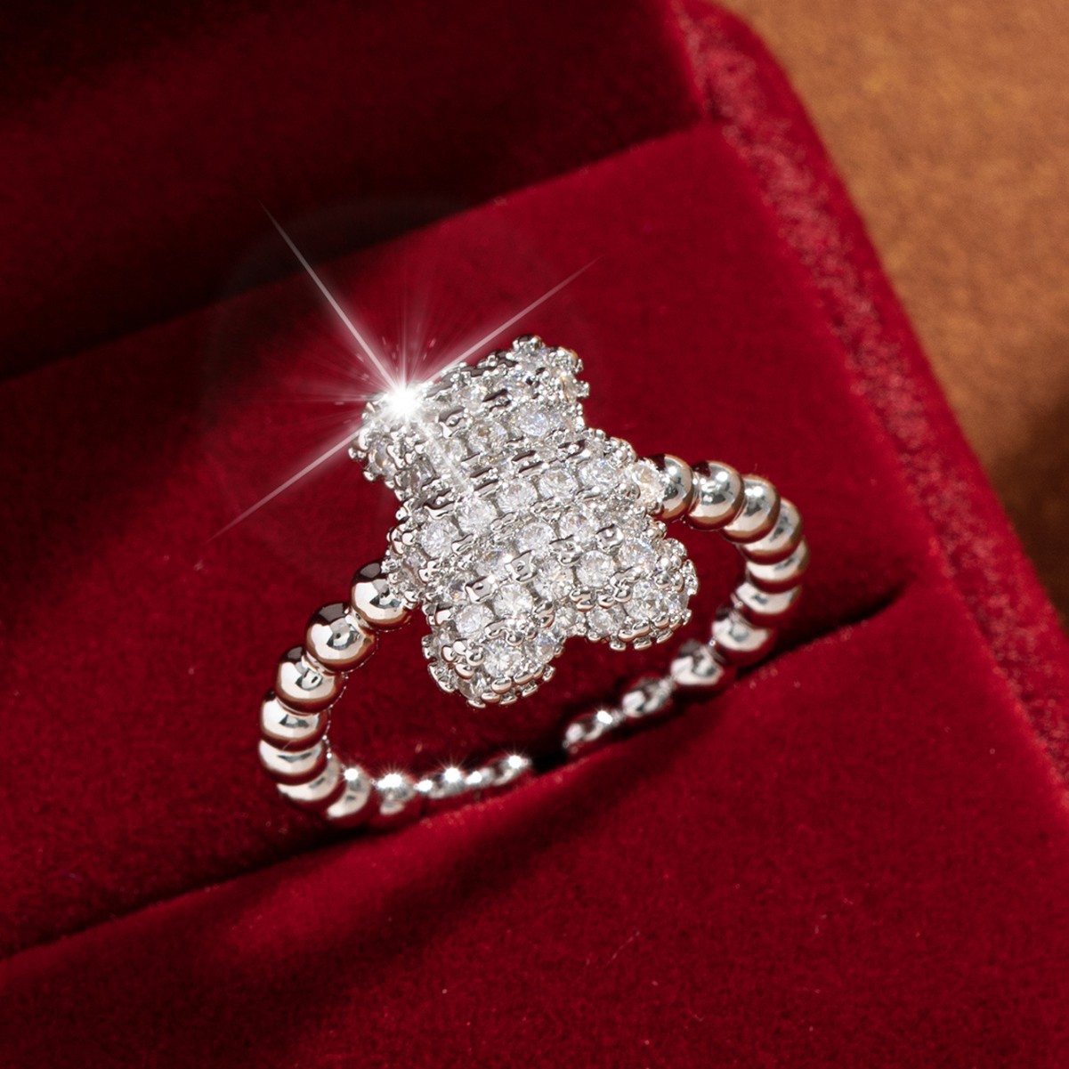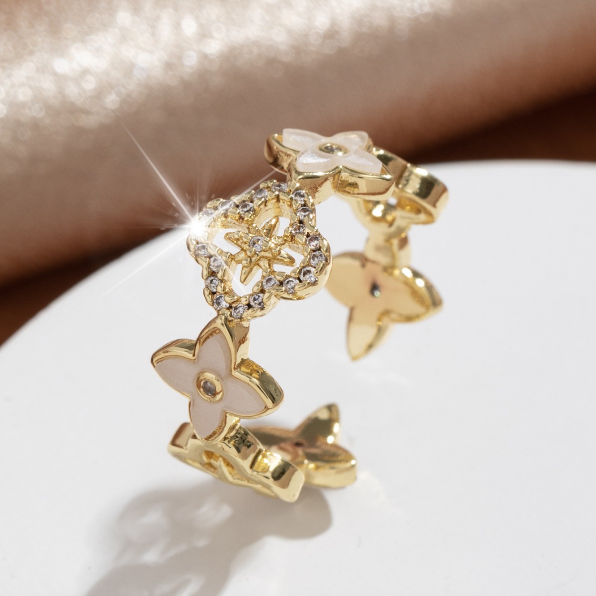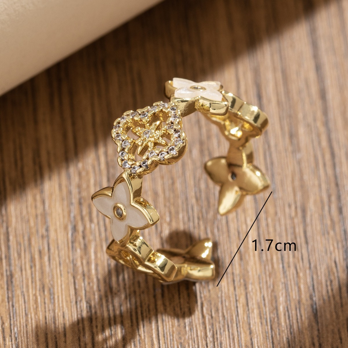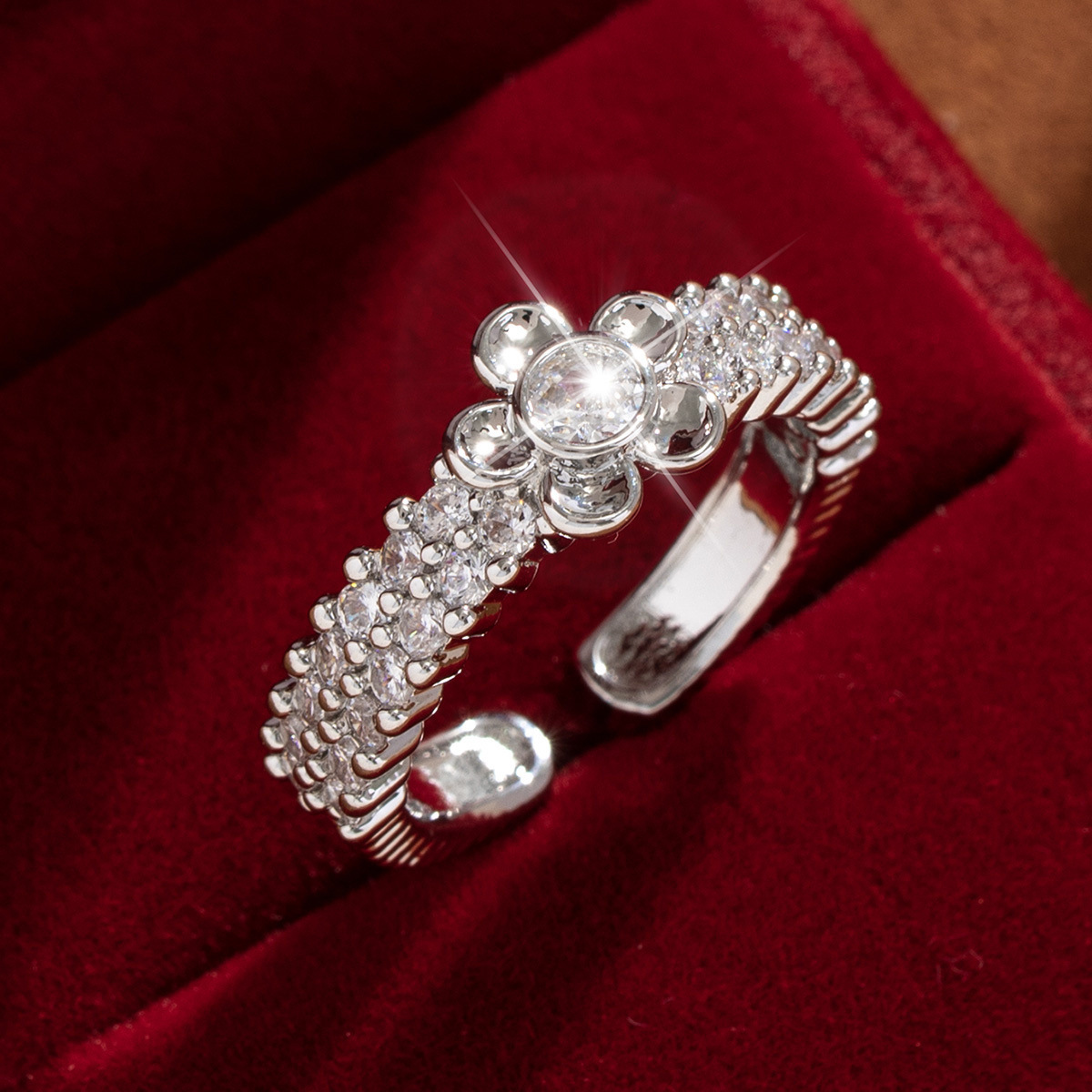 【定制】时尚奢华锆石四叶草戒指潮流感小众百搭ins开口气质指环