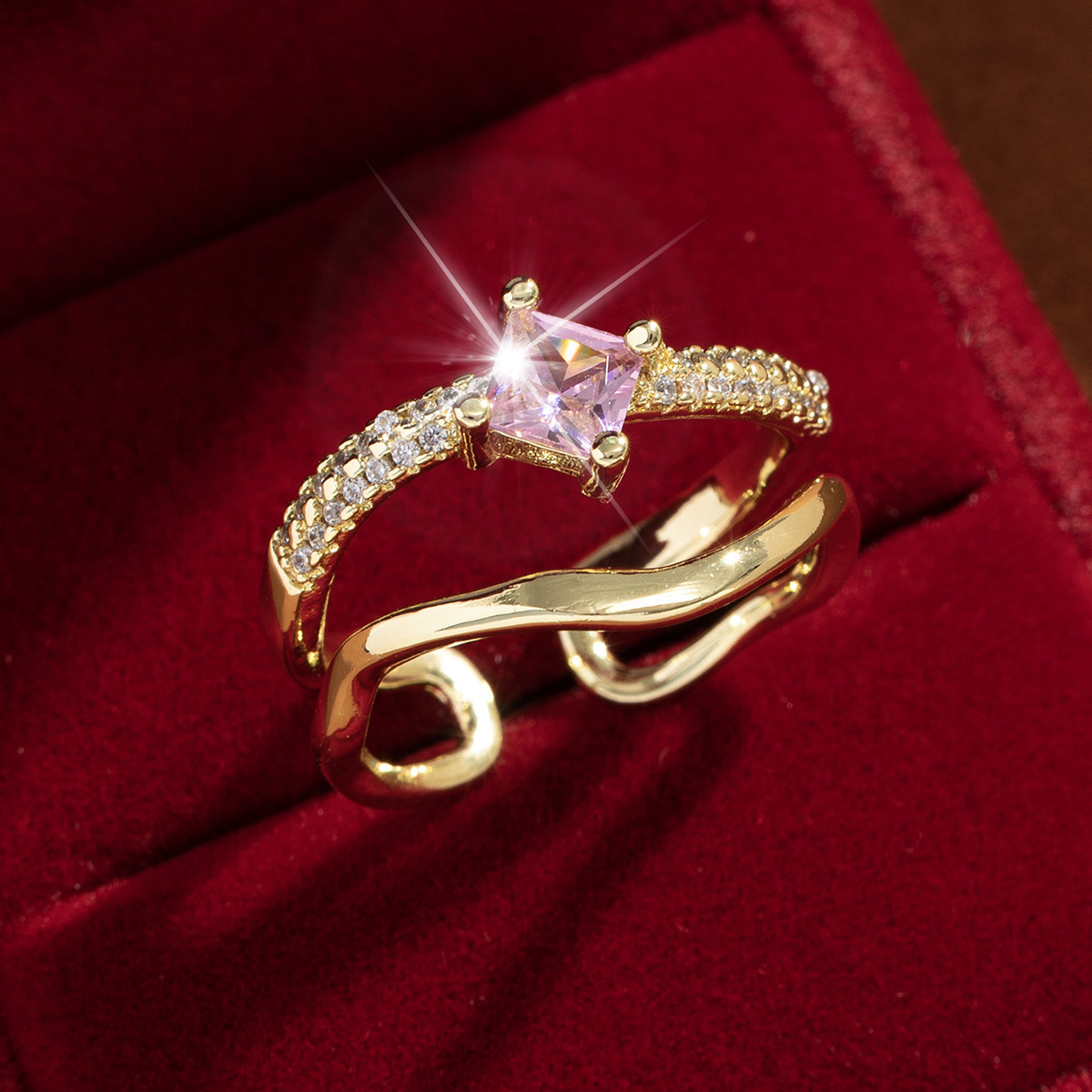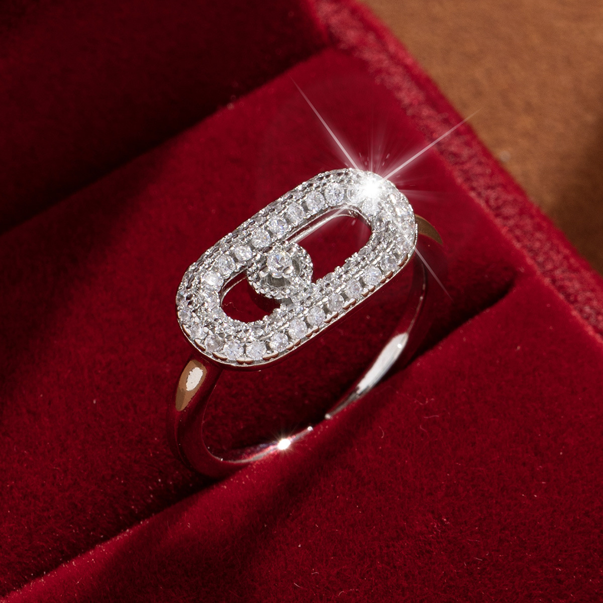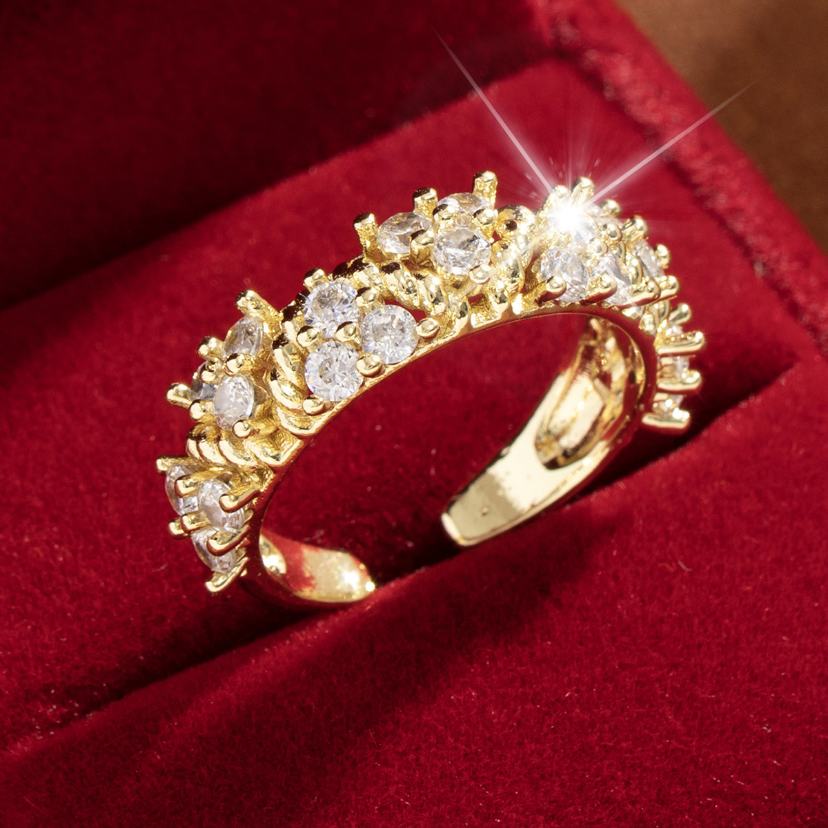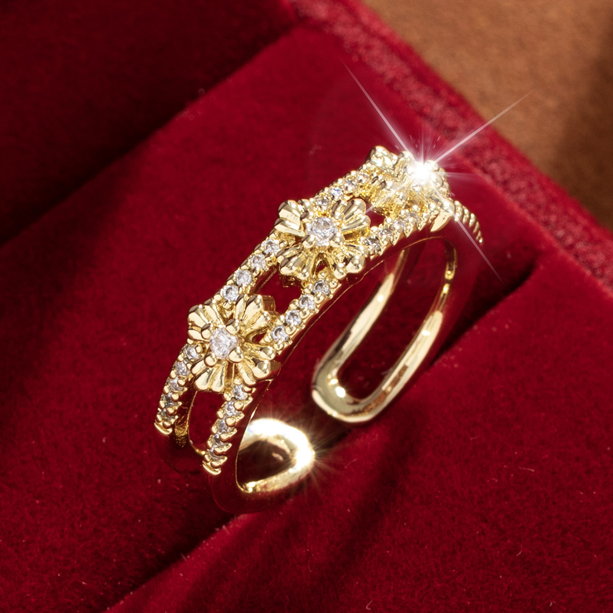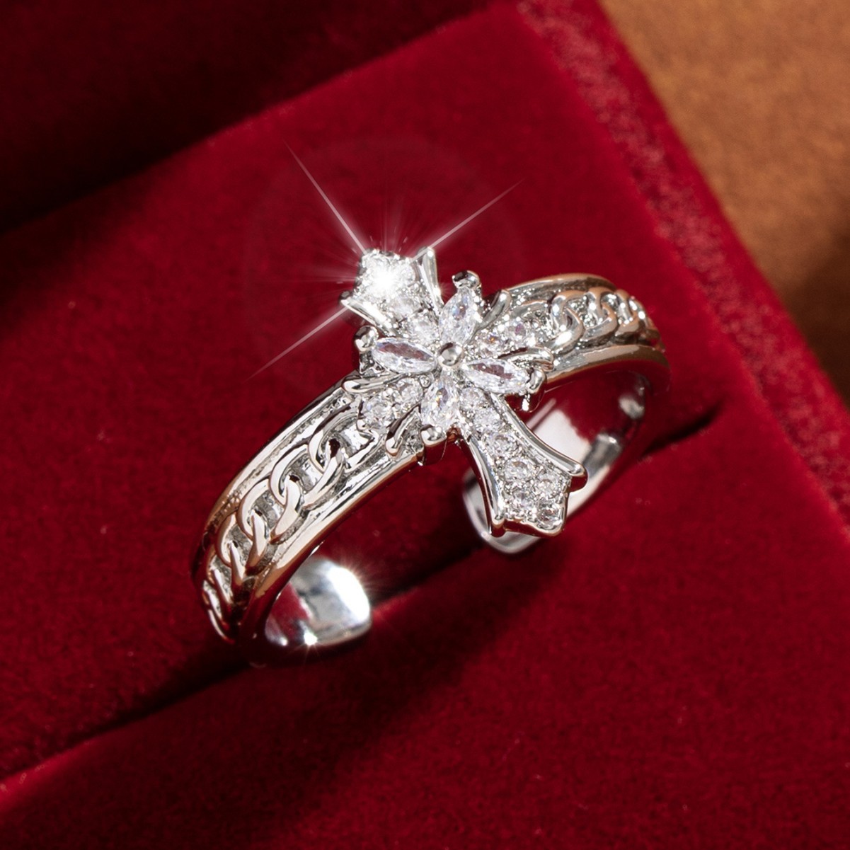 【定制】时尚奢华锆石四叶草戒指潮流感小众百搭ins开口气质指环