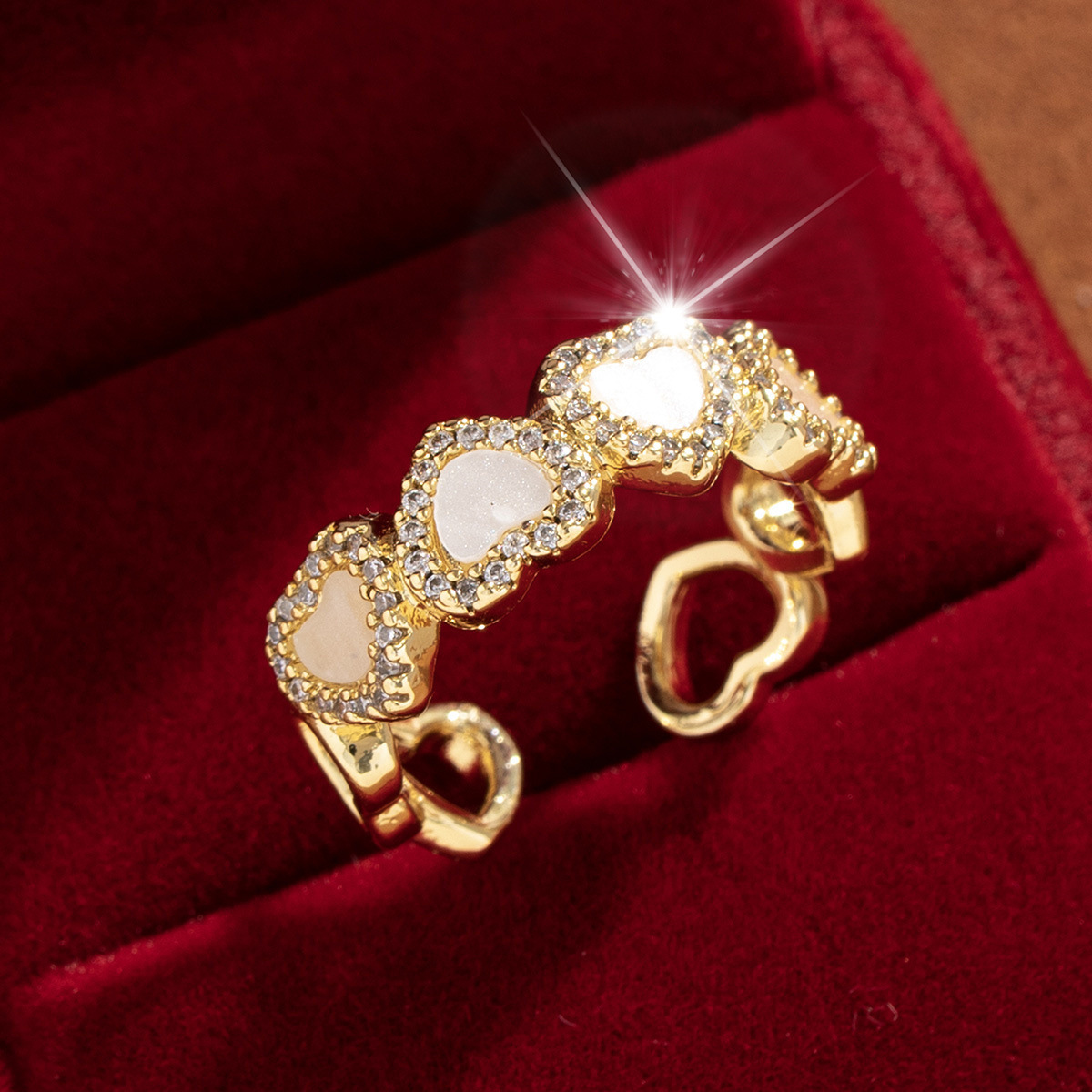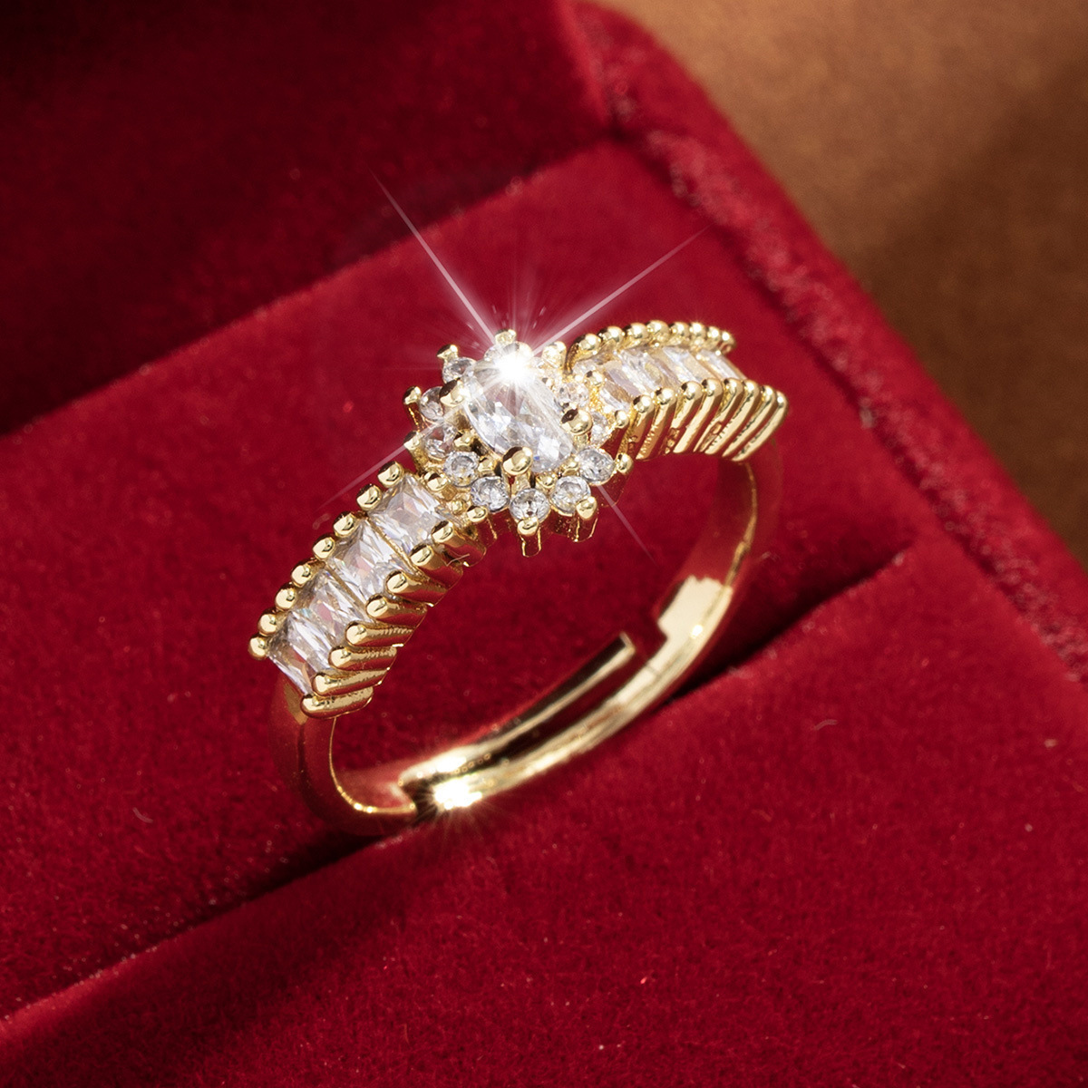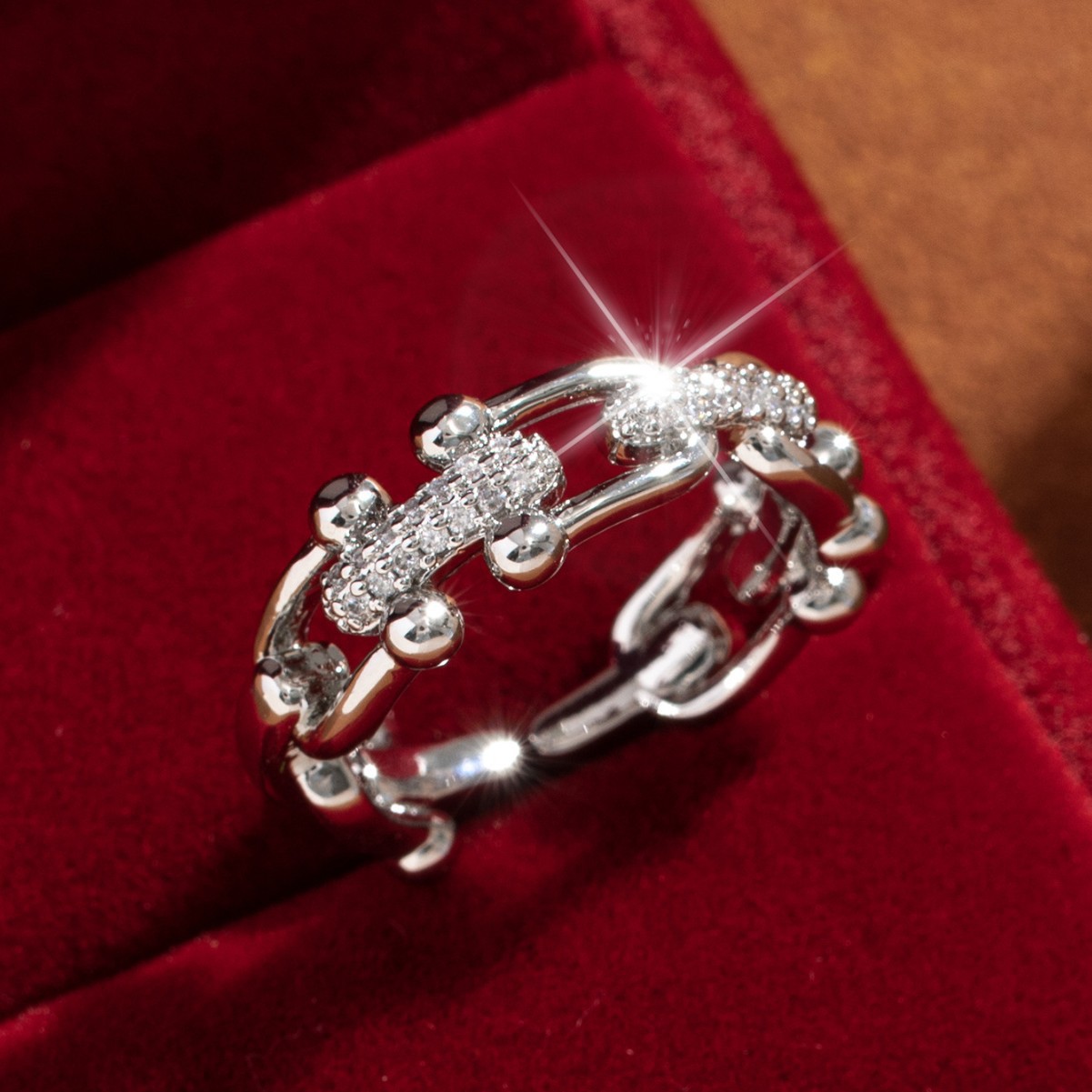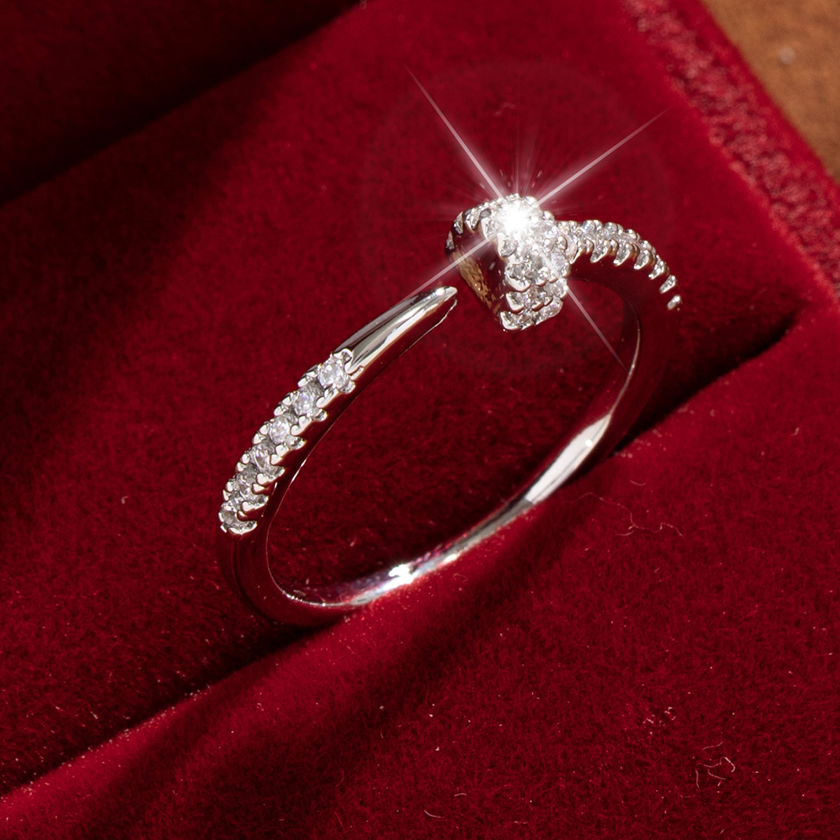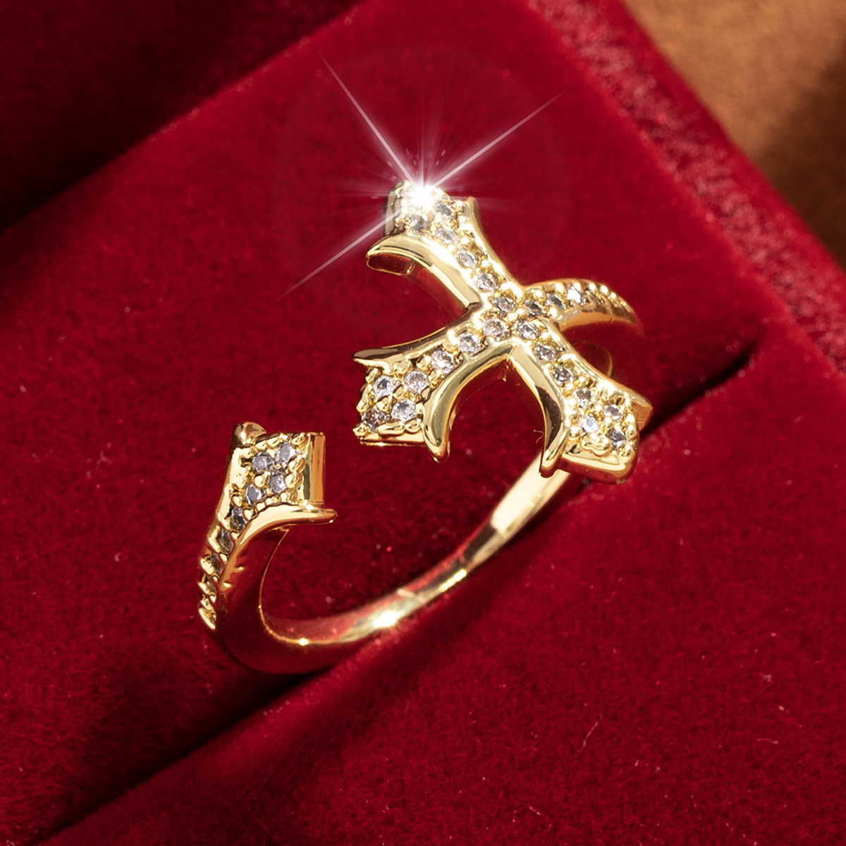 【定制】时尚奢华锆石四叶草戒指潮流感小众百搭ins开口气质指环