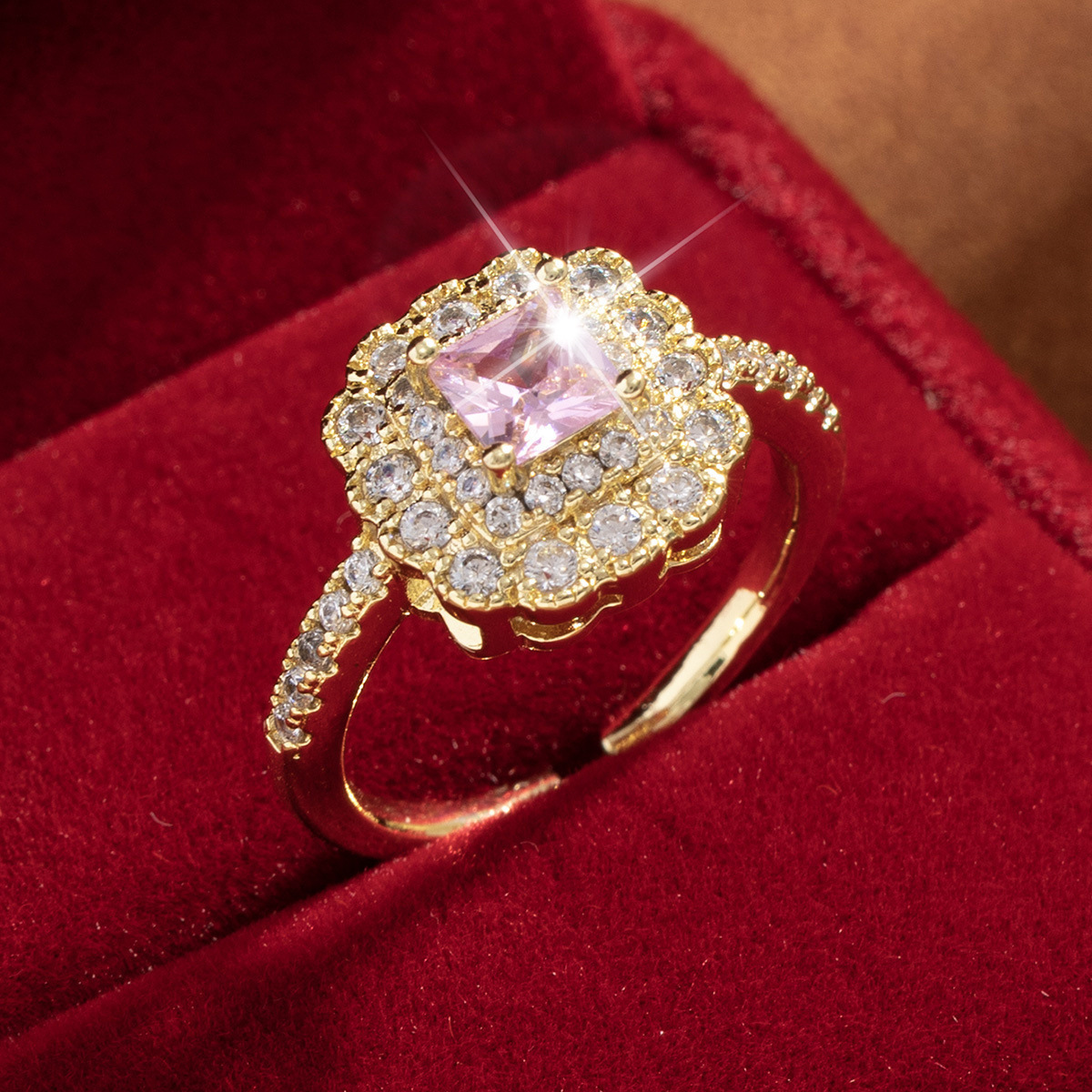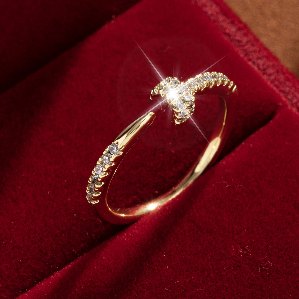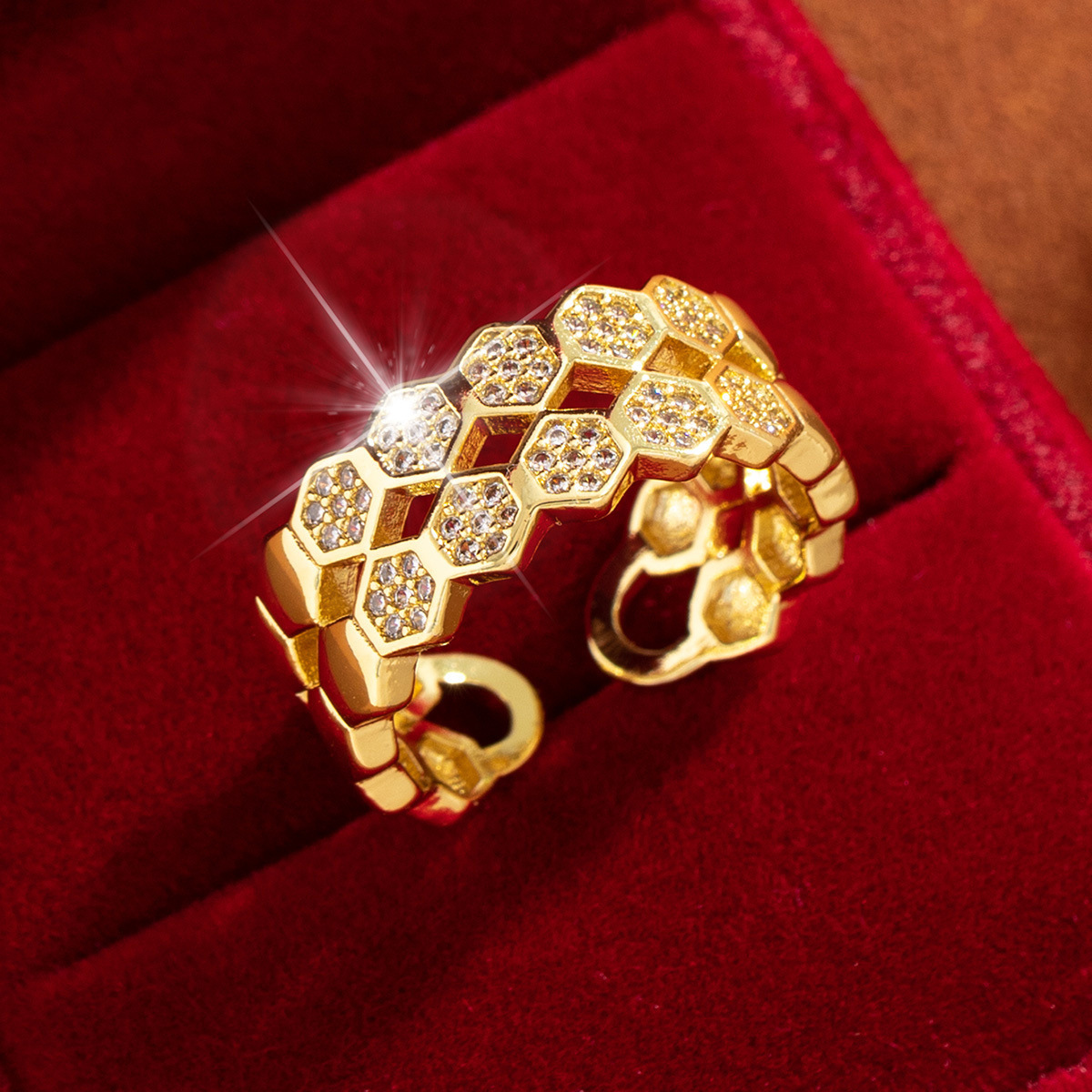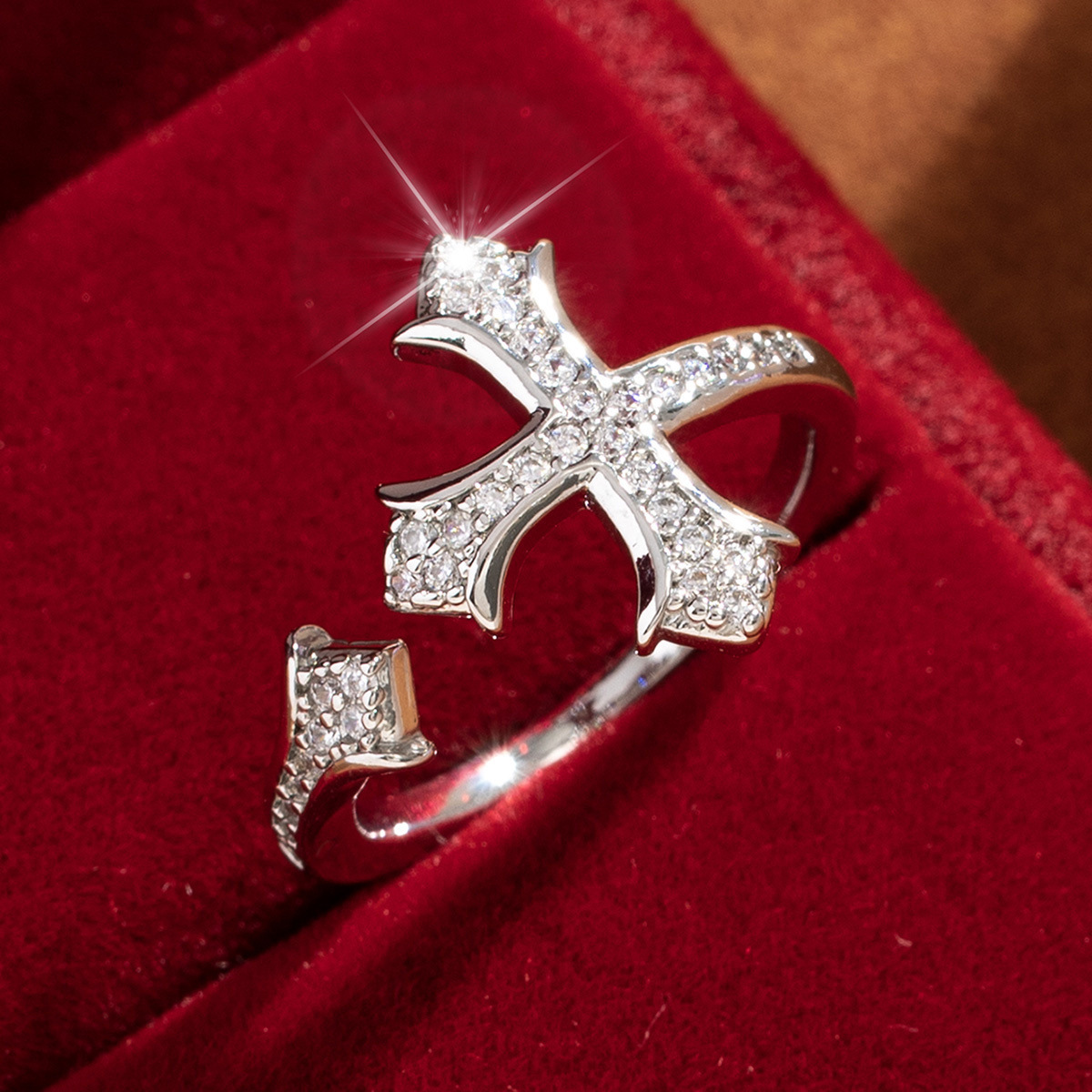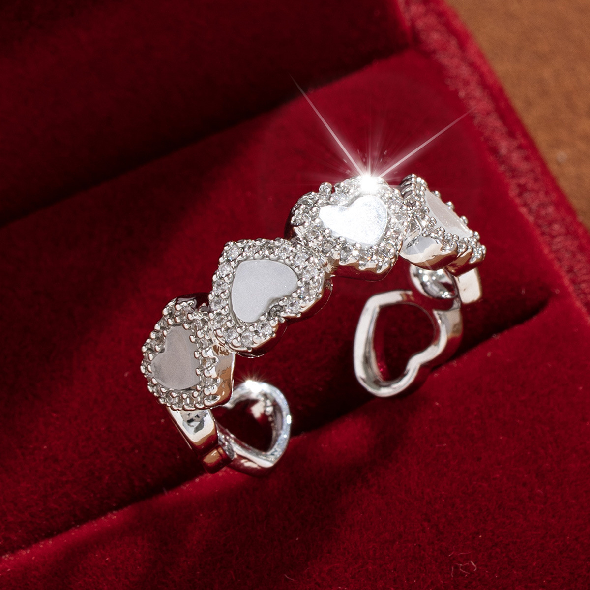 【定制】时尚奢华锆石四叶草戒指潮流感小众百搭ins开口气质指环
