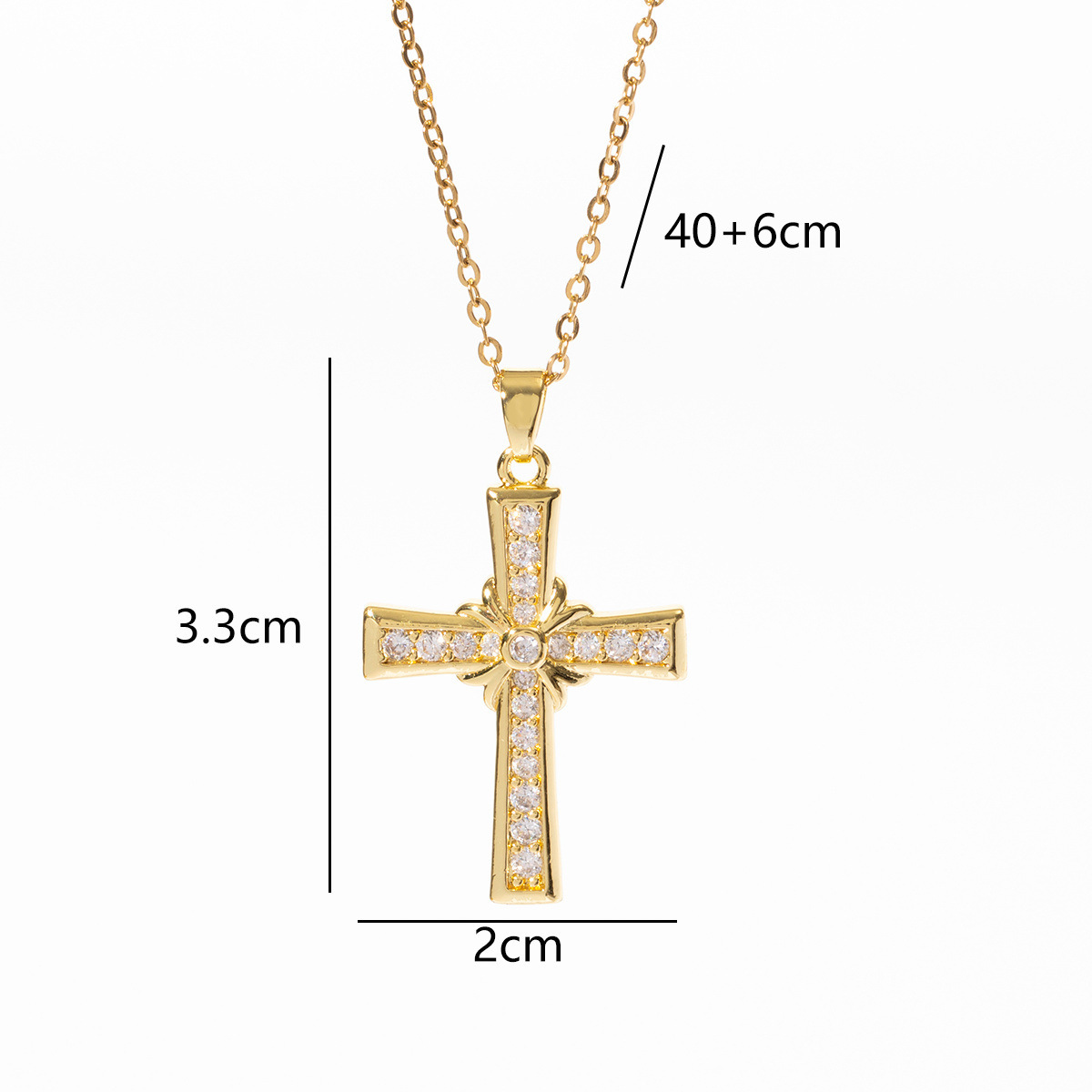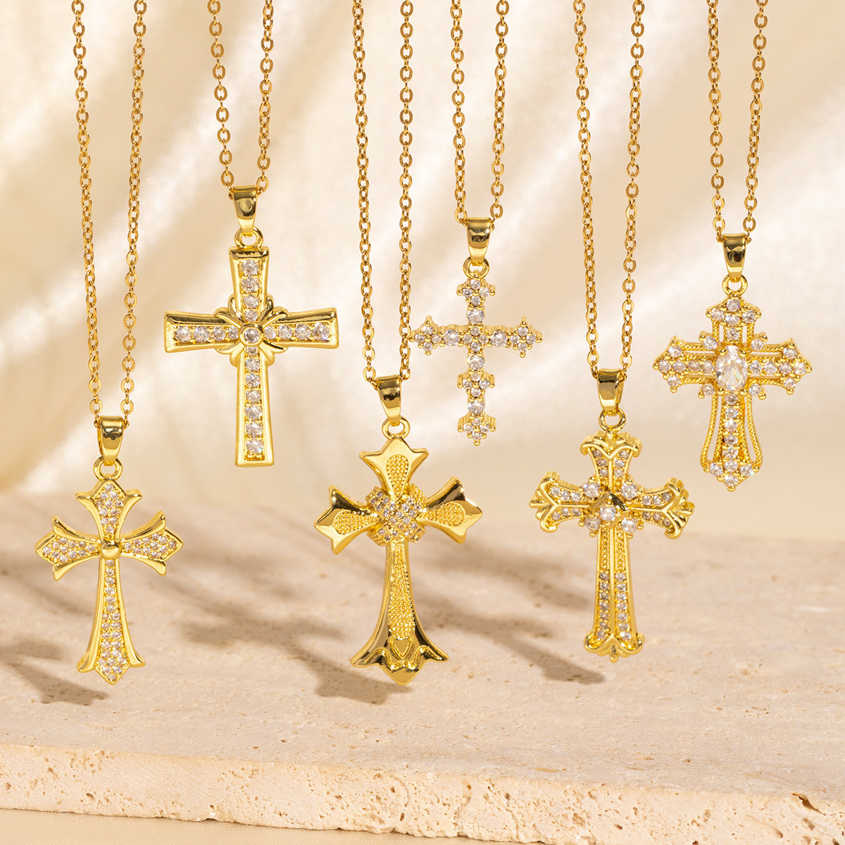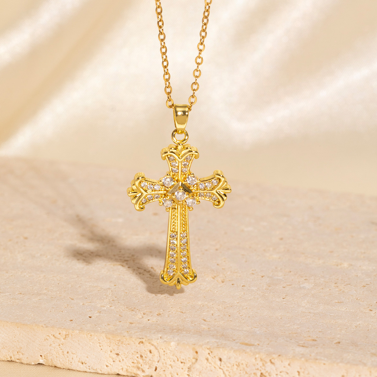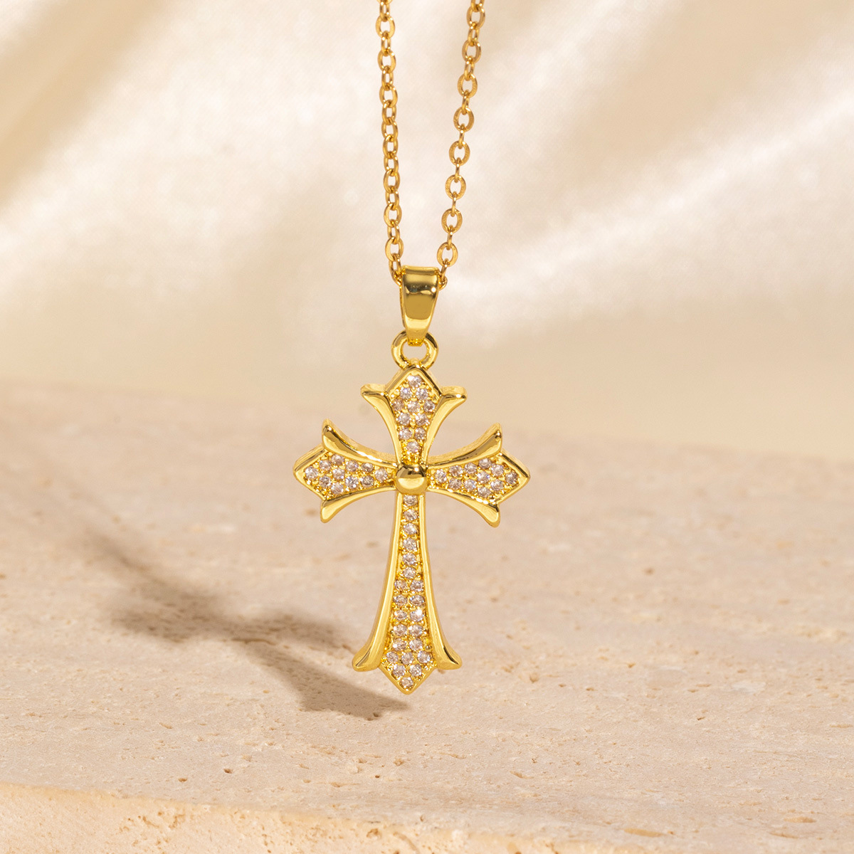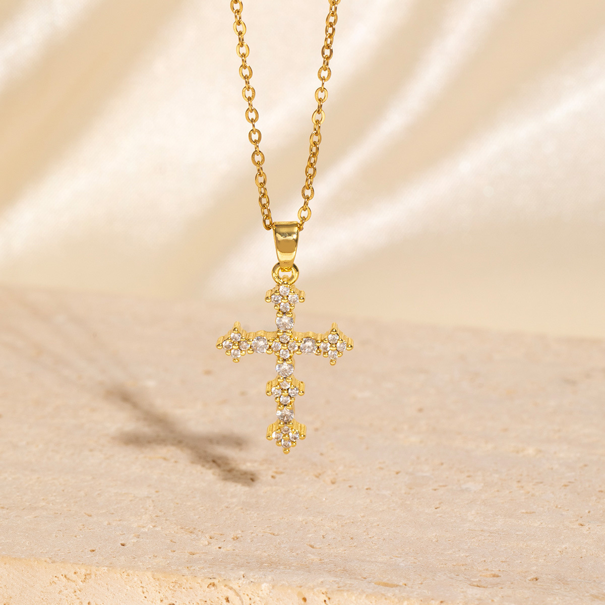 【定制】欧美跨境热卖十字架简约时尚钛钢项链女镶嵌彩色锆石吊坠
