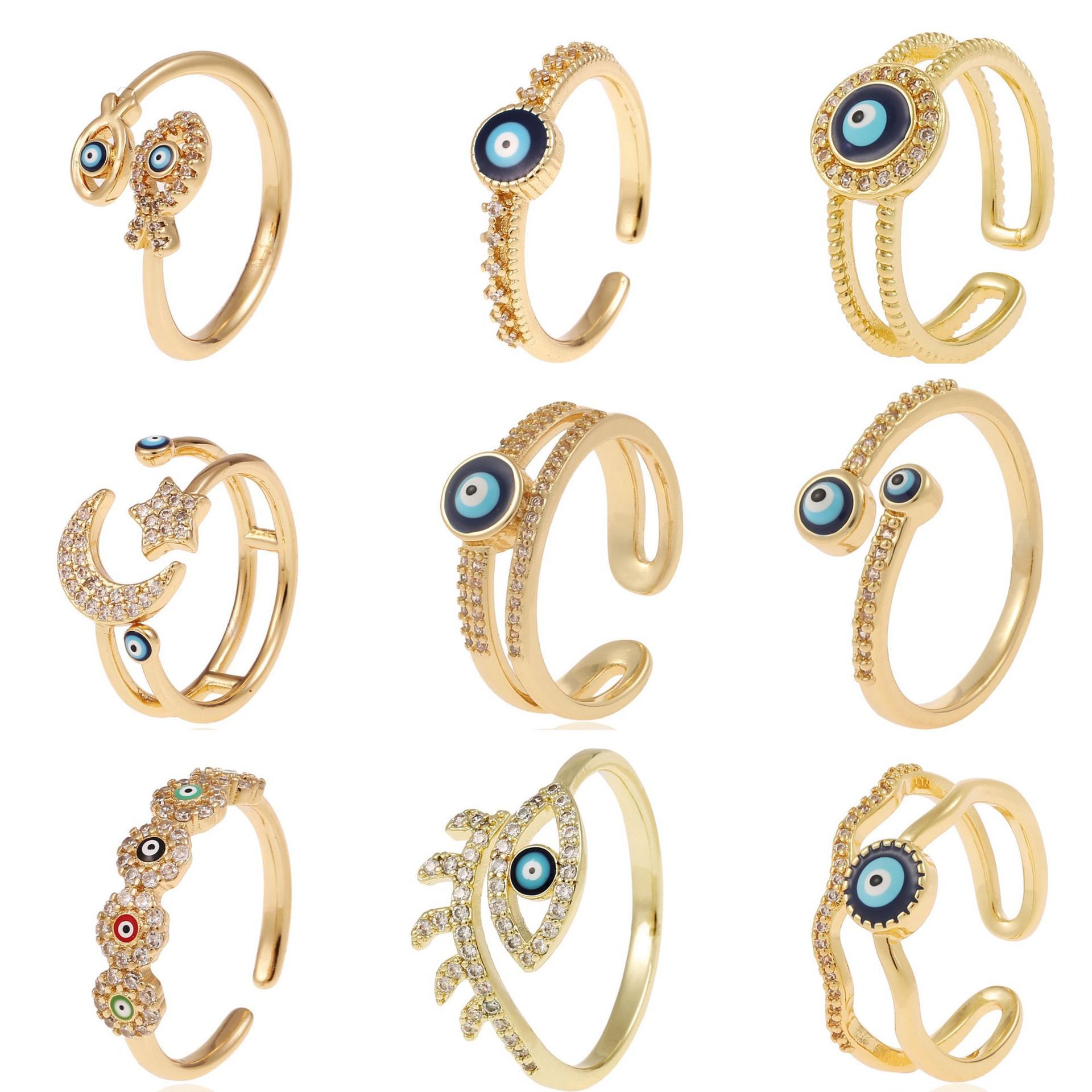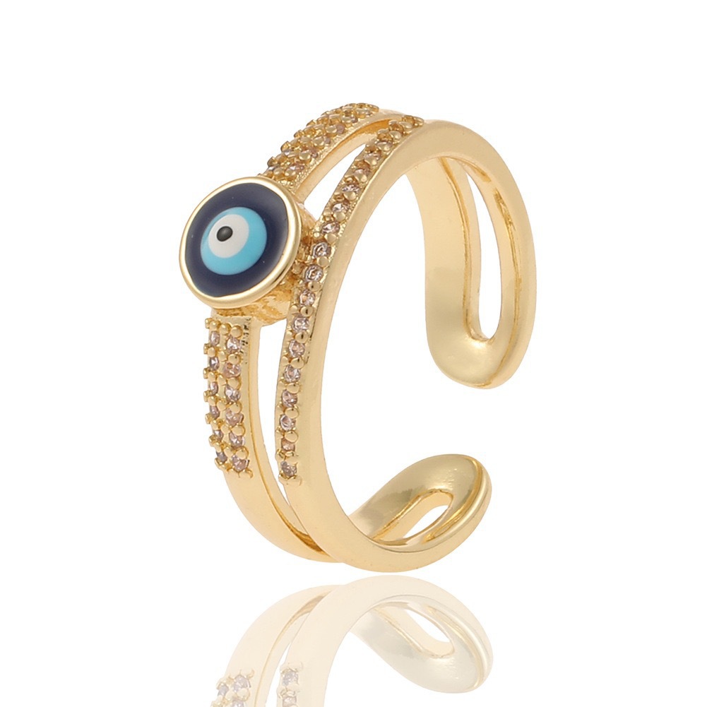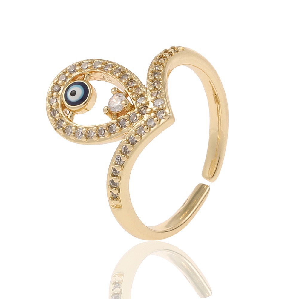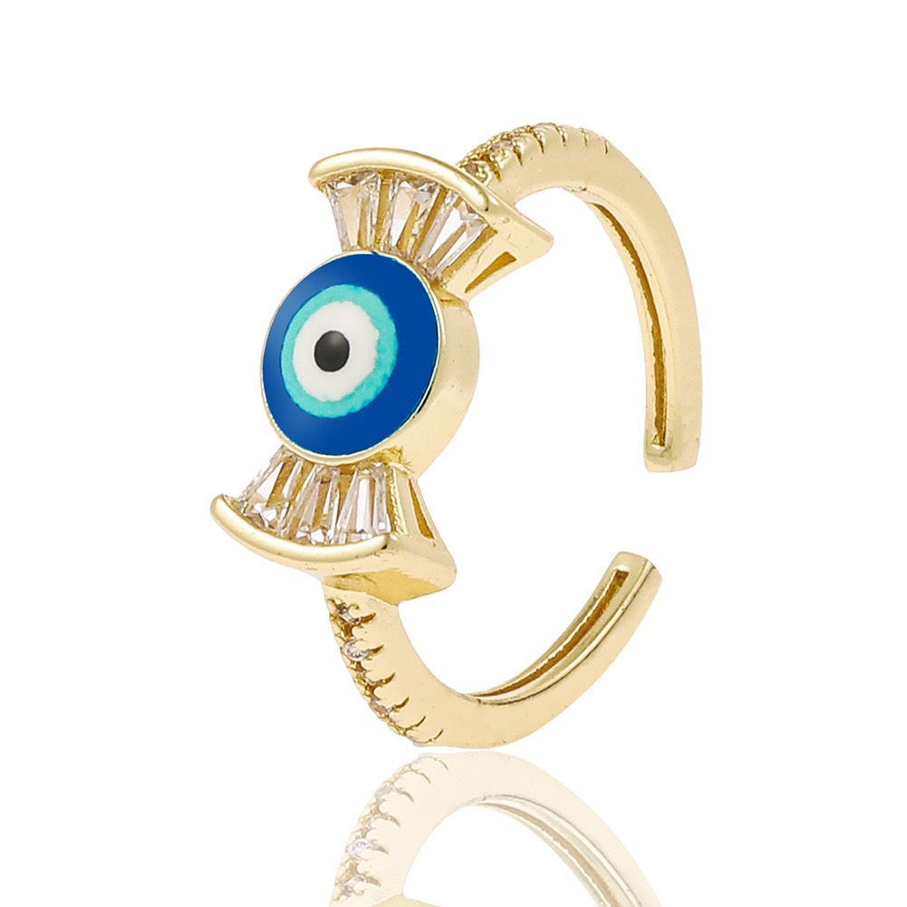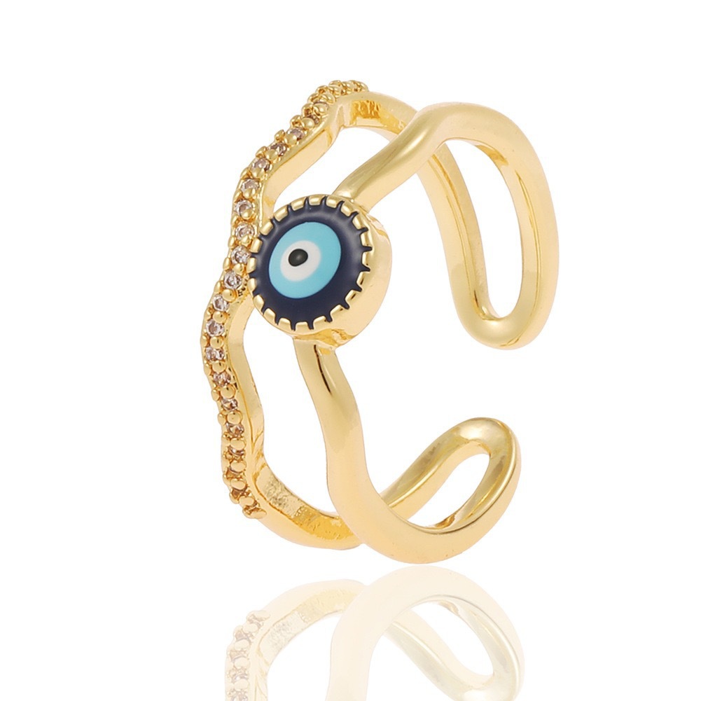 【定制】欧美爆款小众设计感铜镀18K金锆石滴油恶魔之眼几何开口