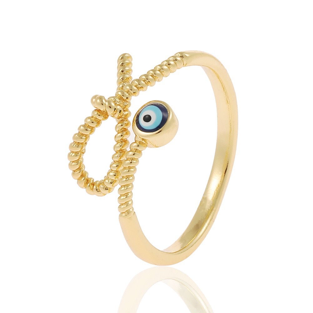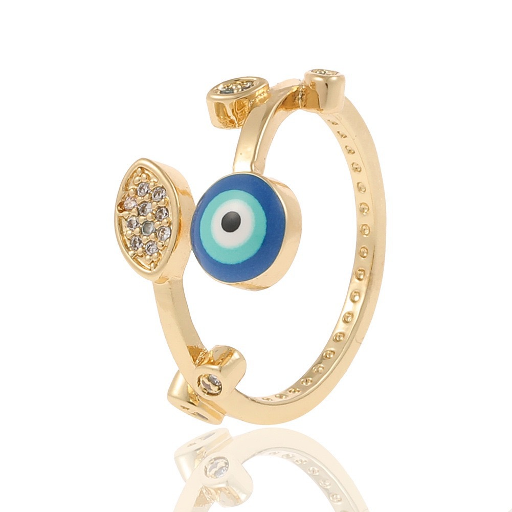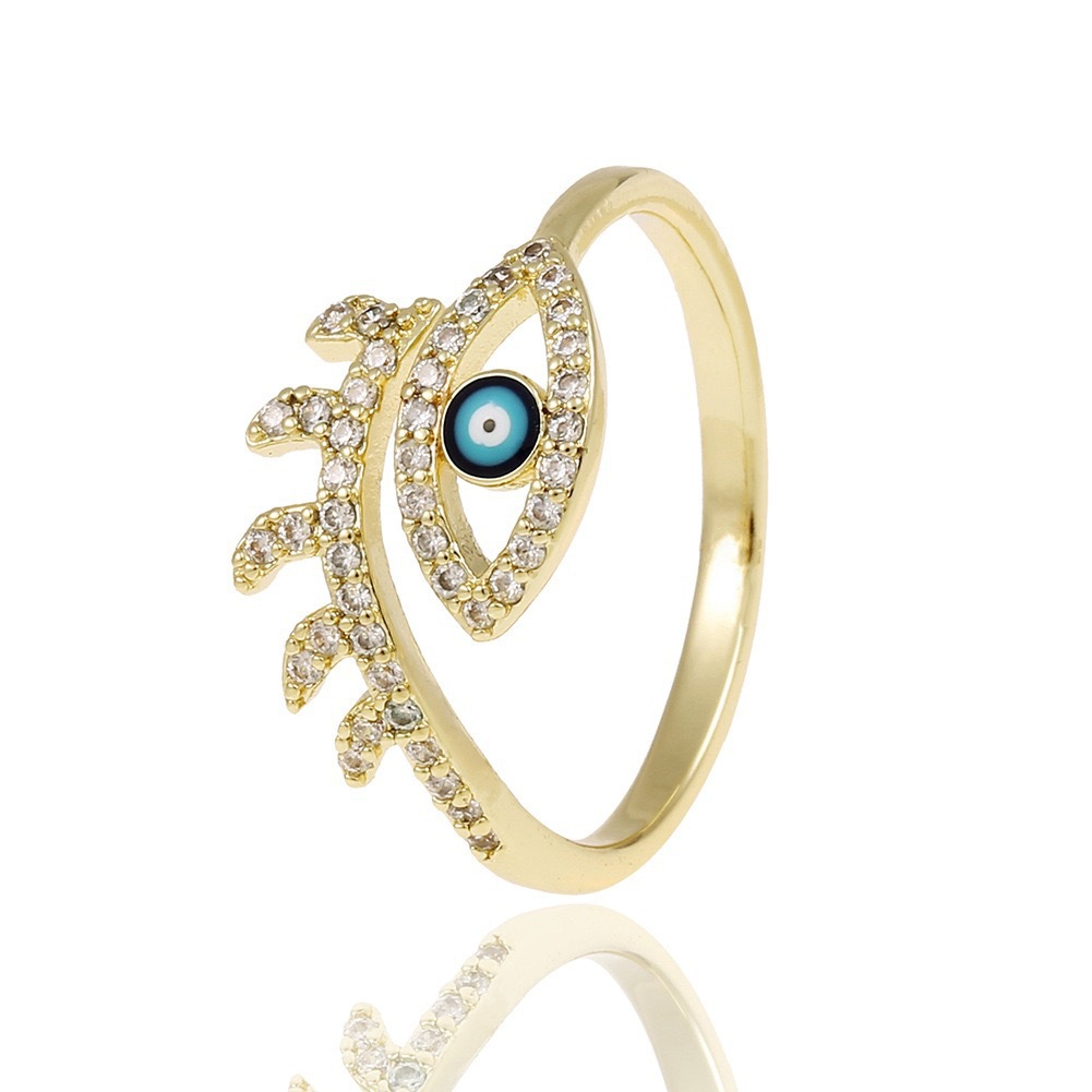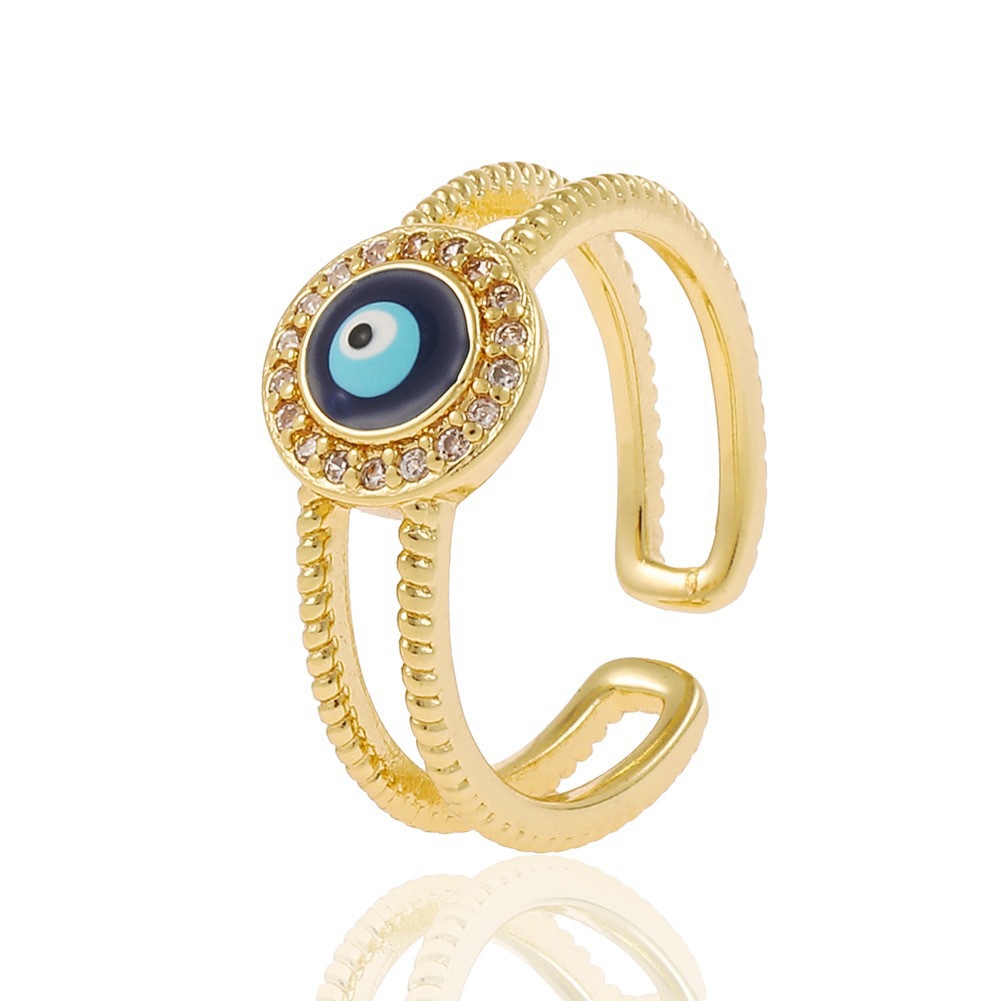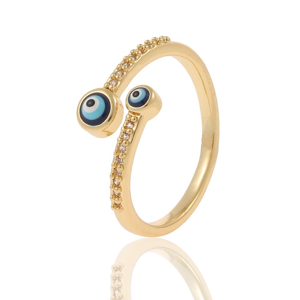 【定制】欧美爆款小众设计感铜镀18K金锆石滴油恶魔之眼几何开口