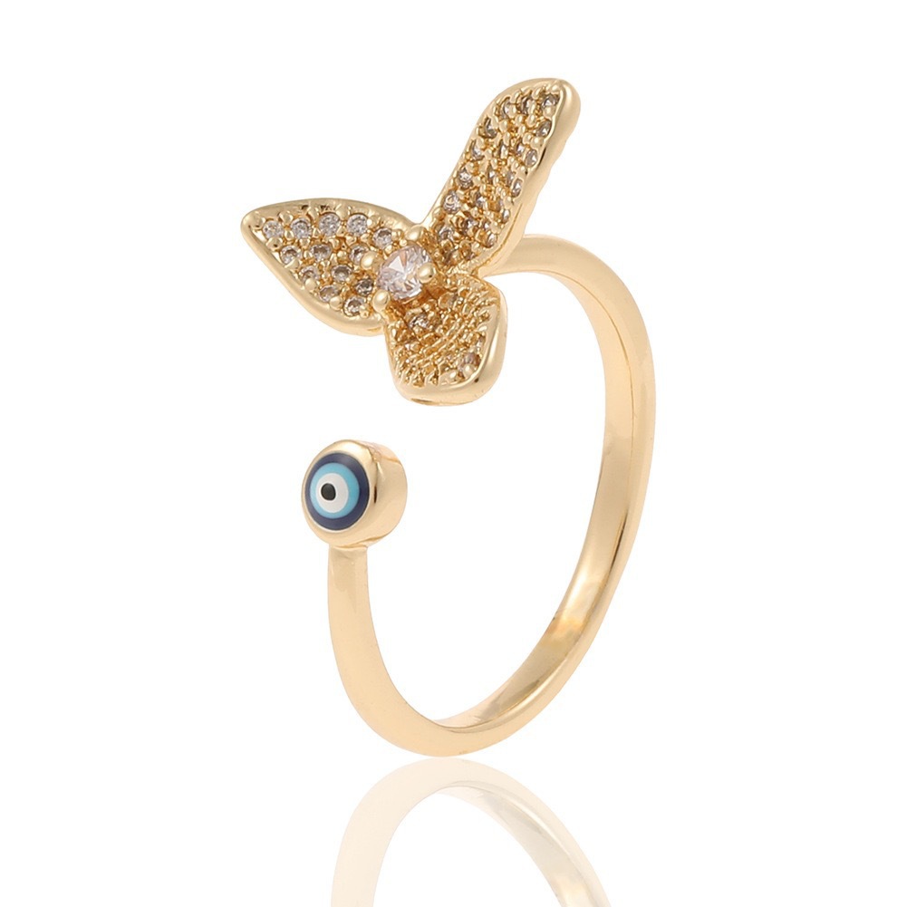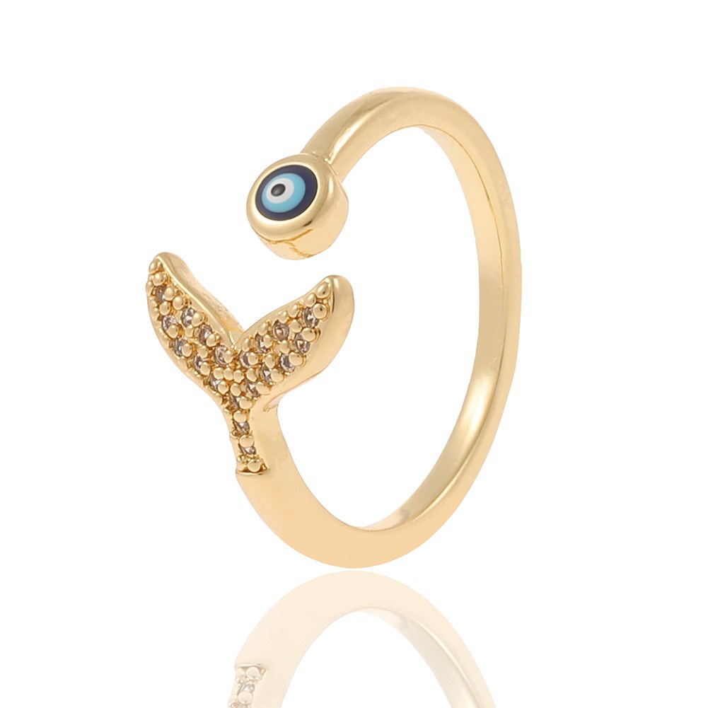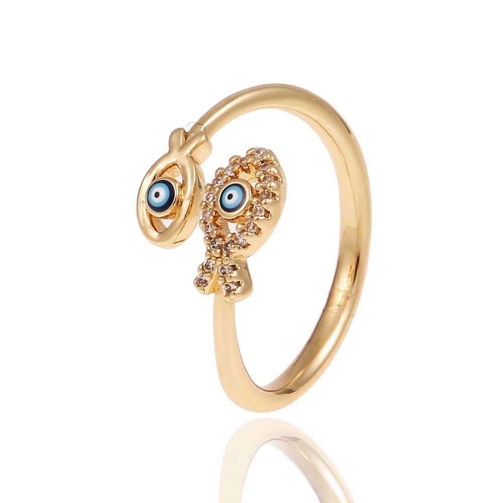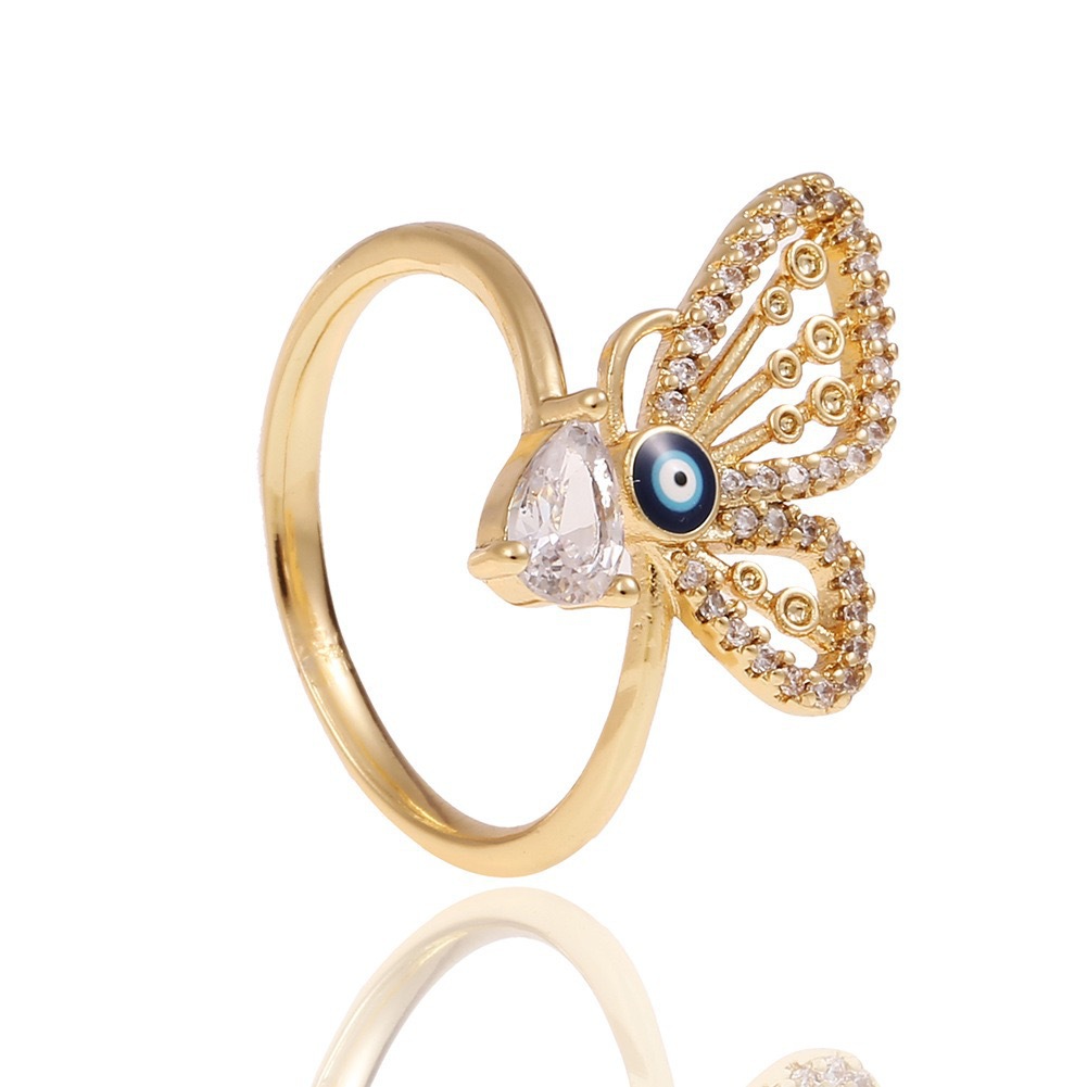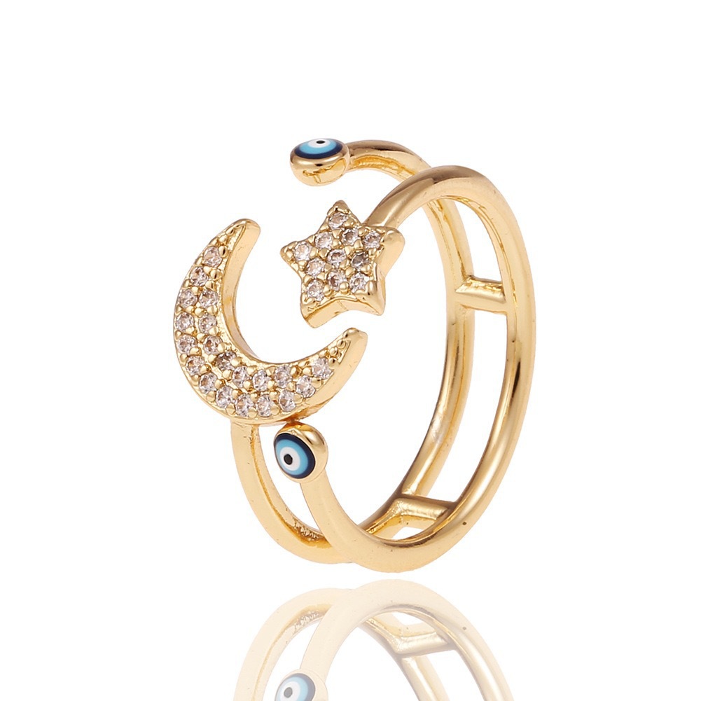 【定制】欧美爆款小众设计感铜镀18K金锆石滴油恶魔之眼几何开口