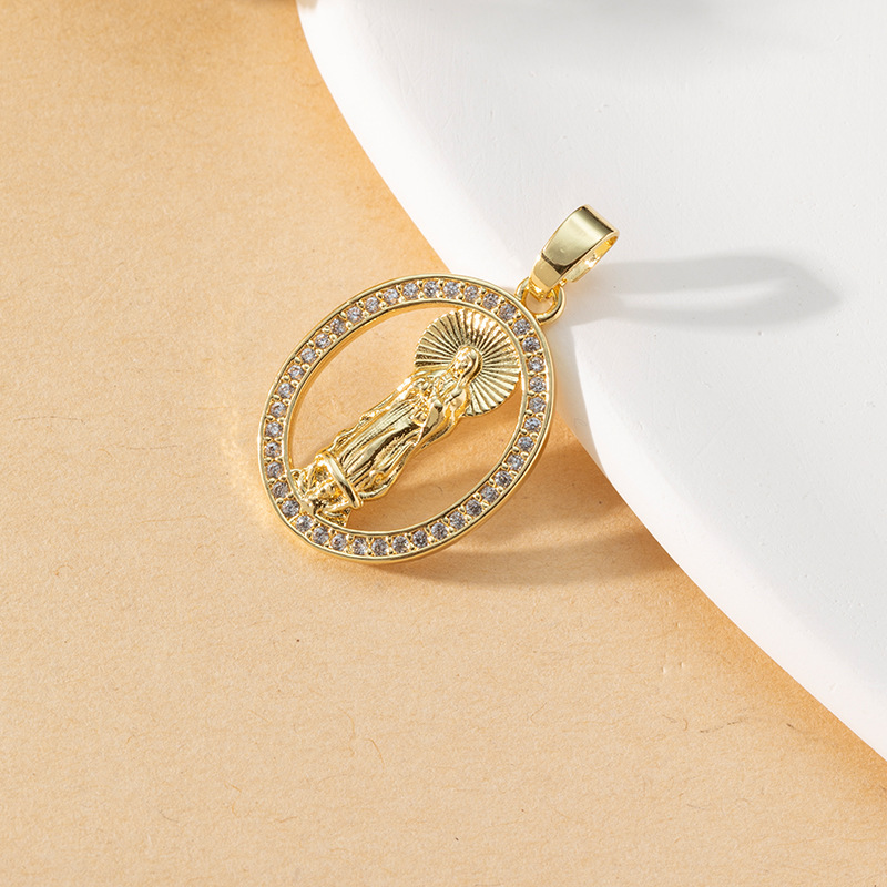 【定制】跨境新款铜锆石圣母玛利亚吊坠欧美时尚项链挂件diy饰品