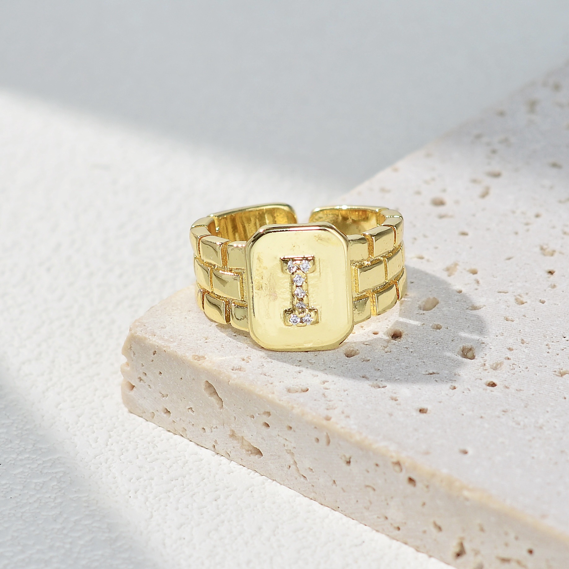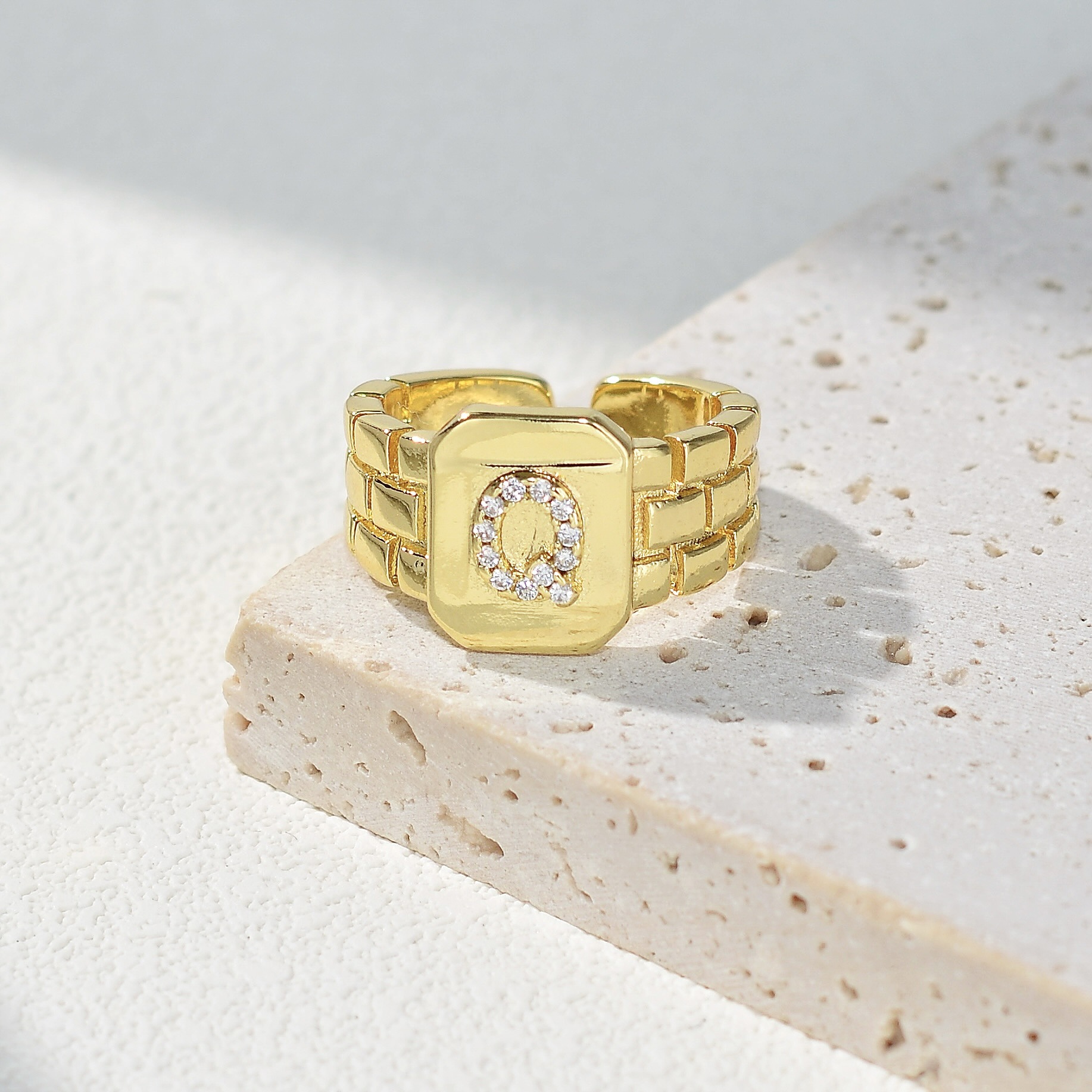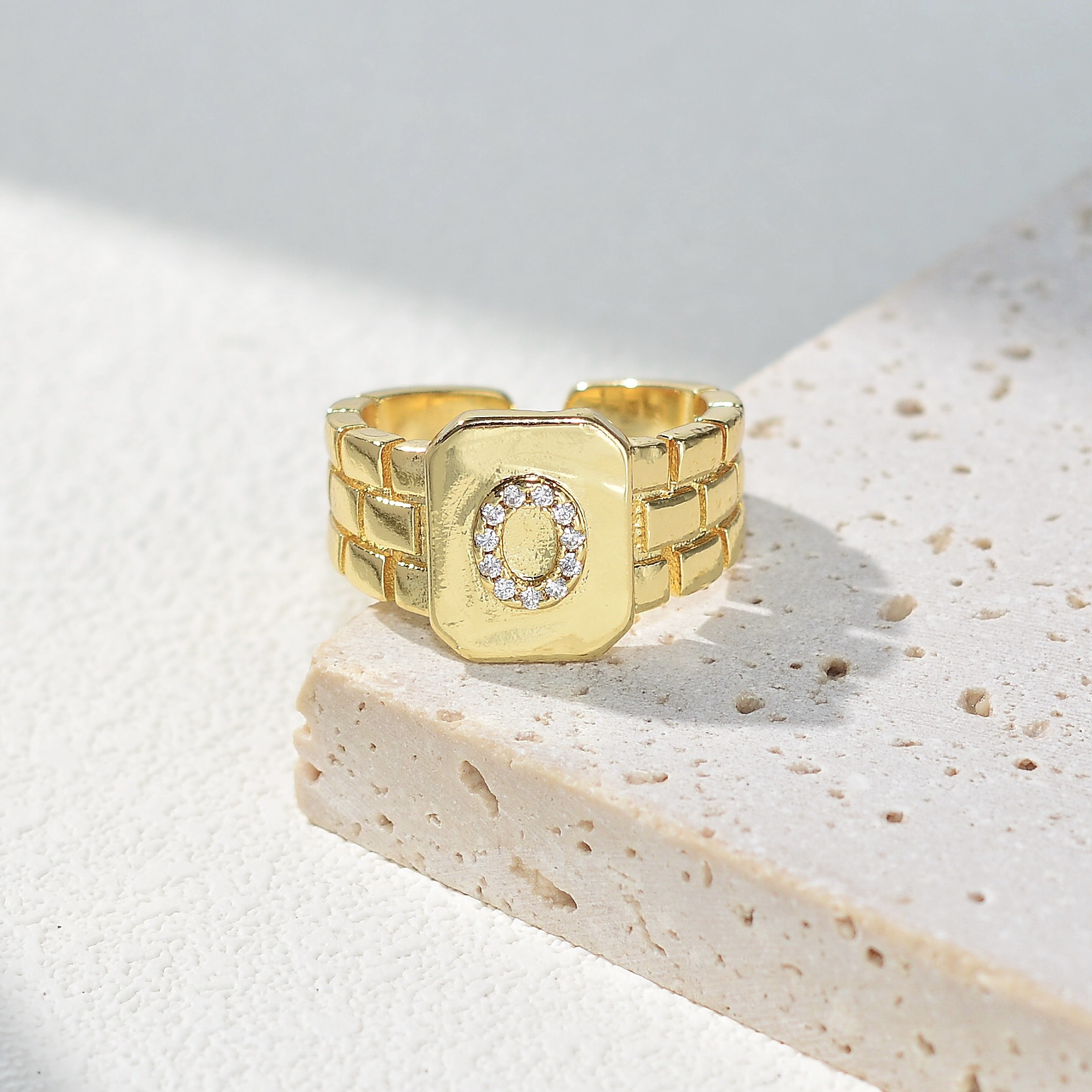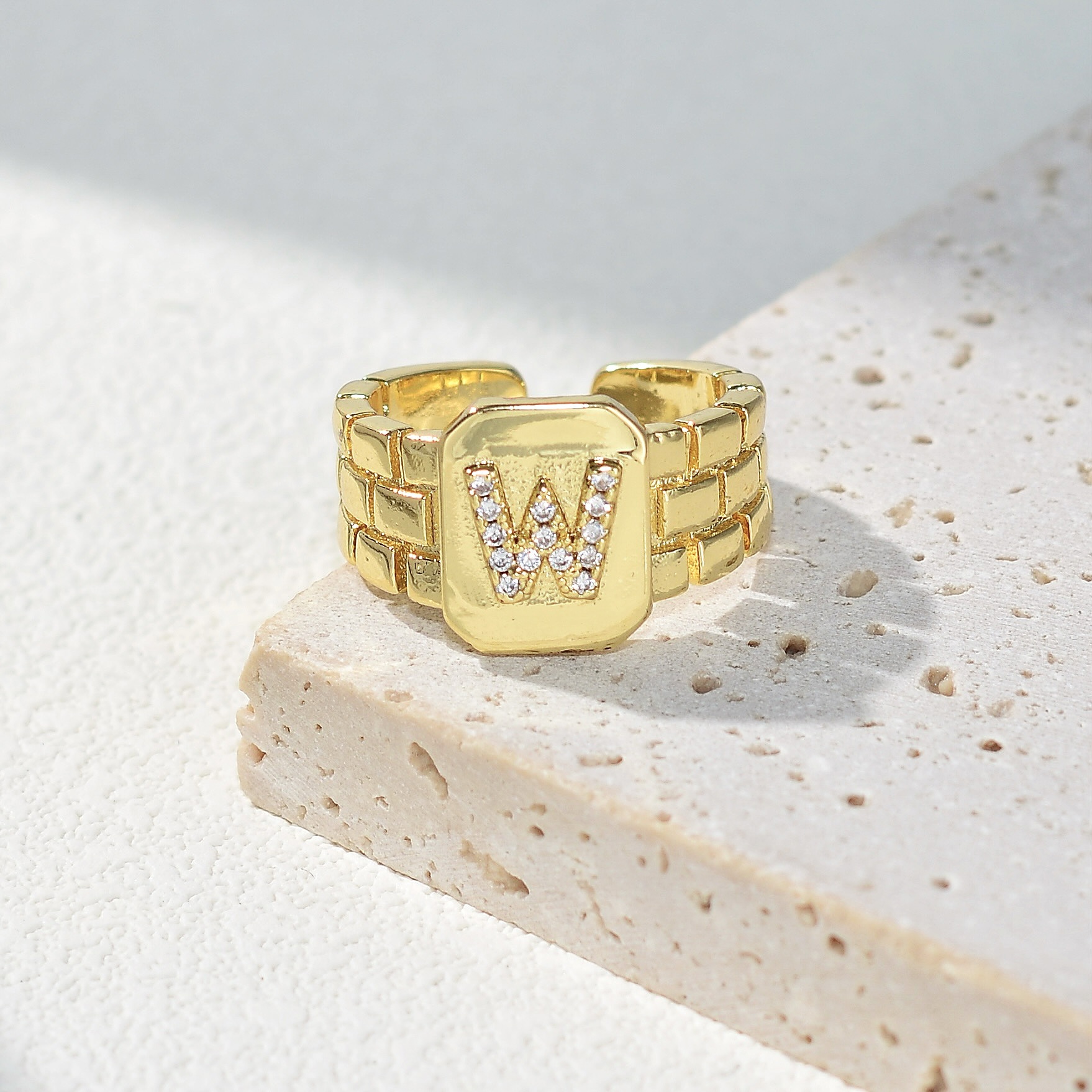 跨境欧美同款热卖戒指字母系列 镀真金饰品表带设计字母开口戒指