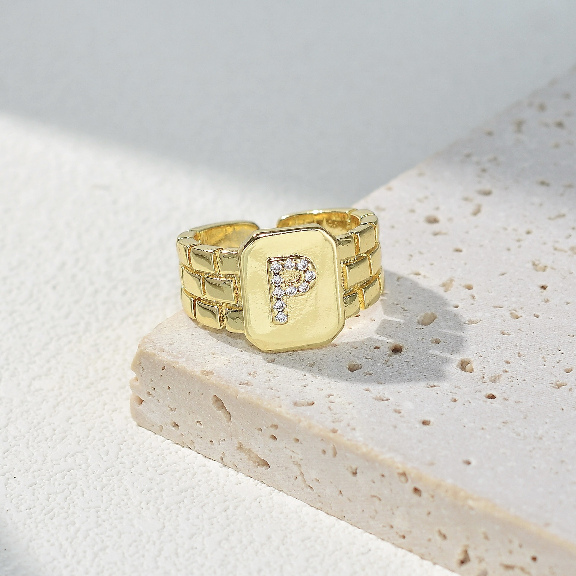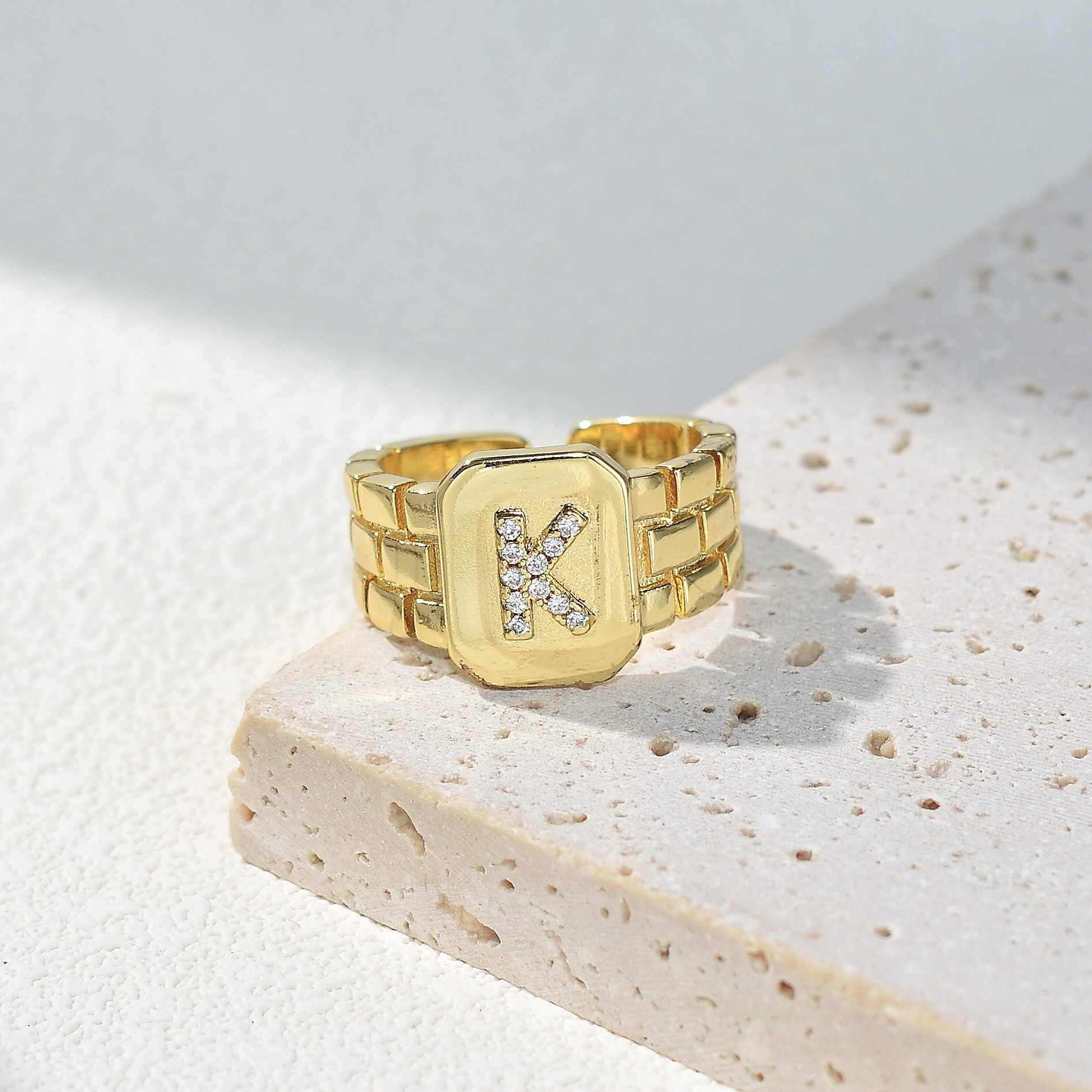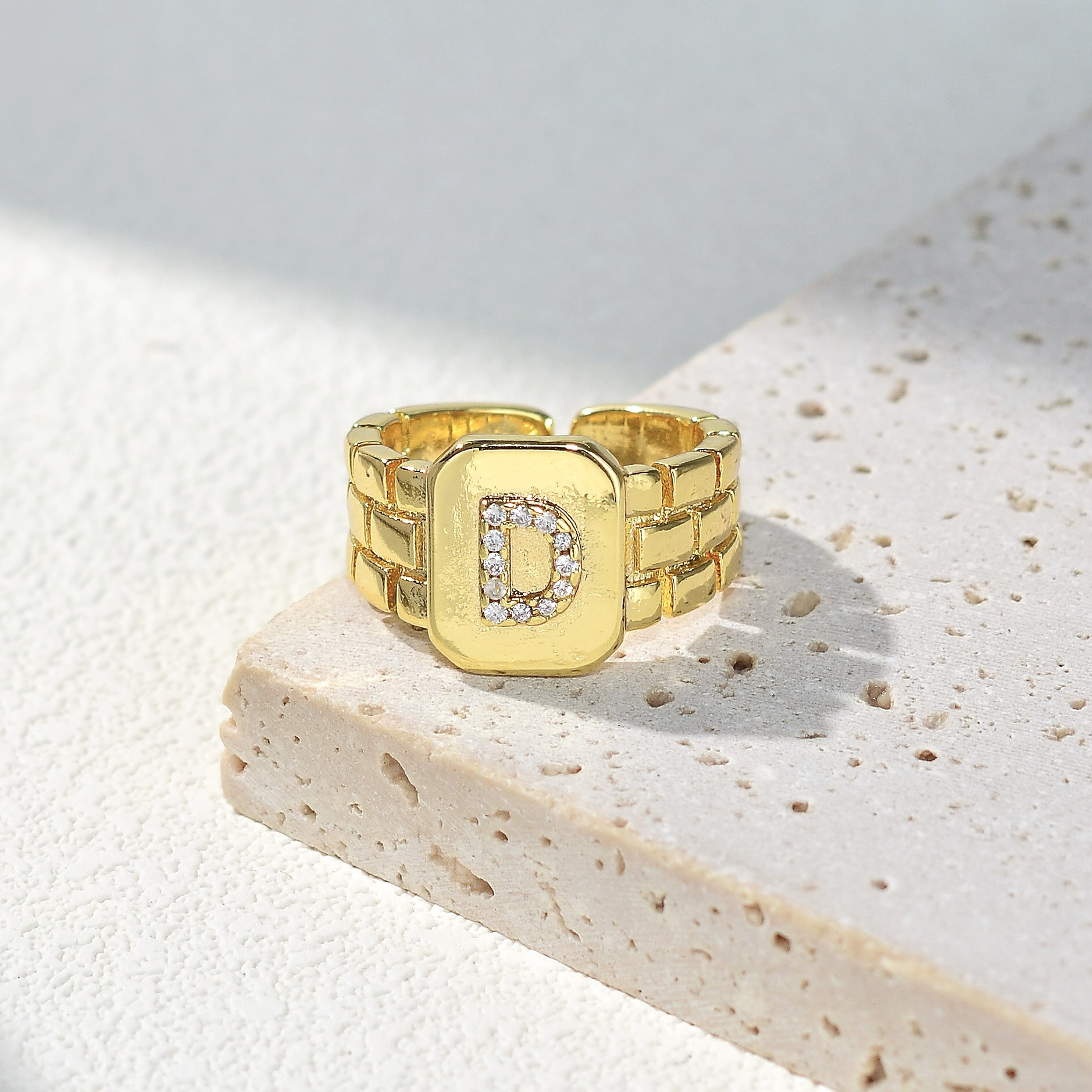 跨境欧美同款热卖戒指字母系列 镀真金饰品表带设计字母开口戒指