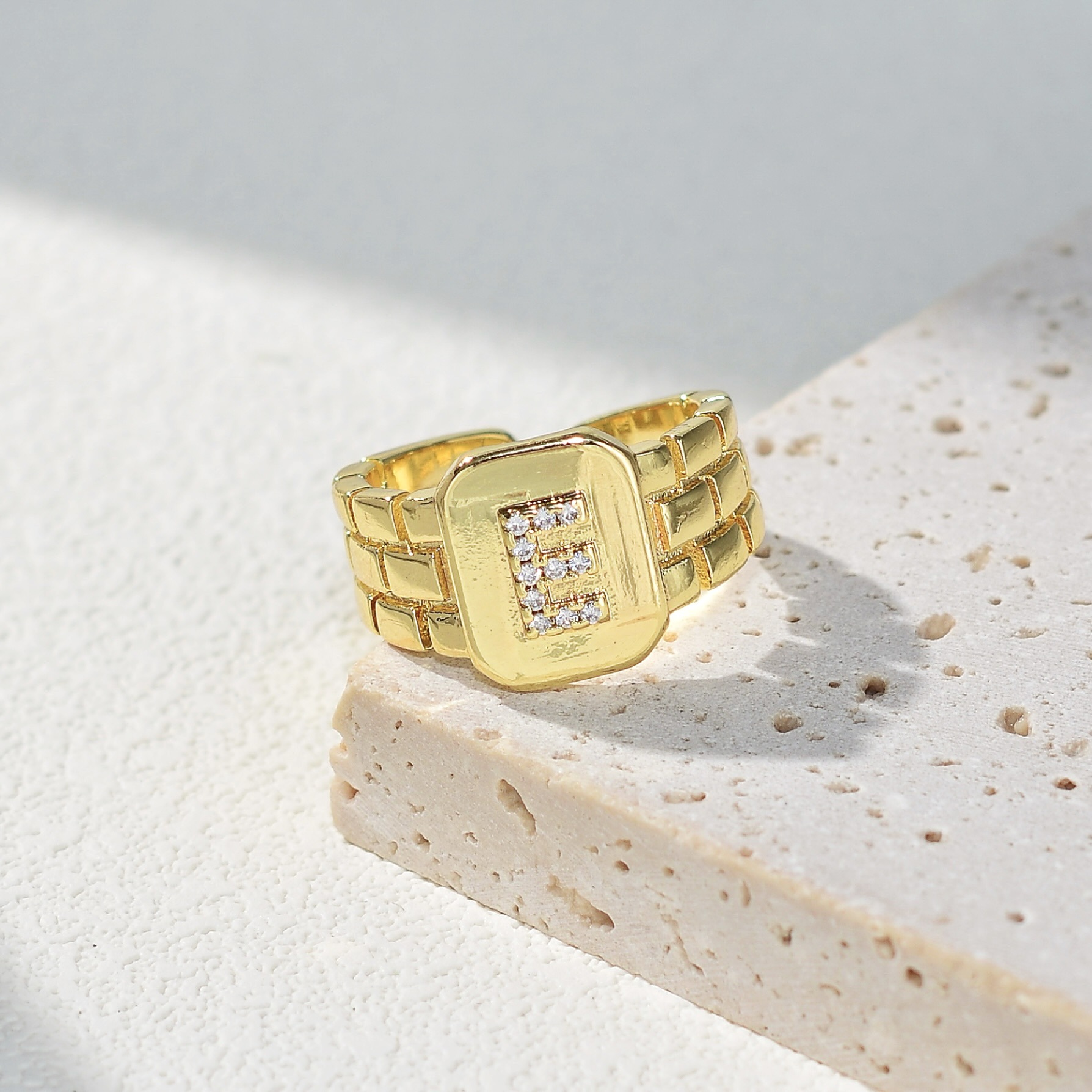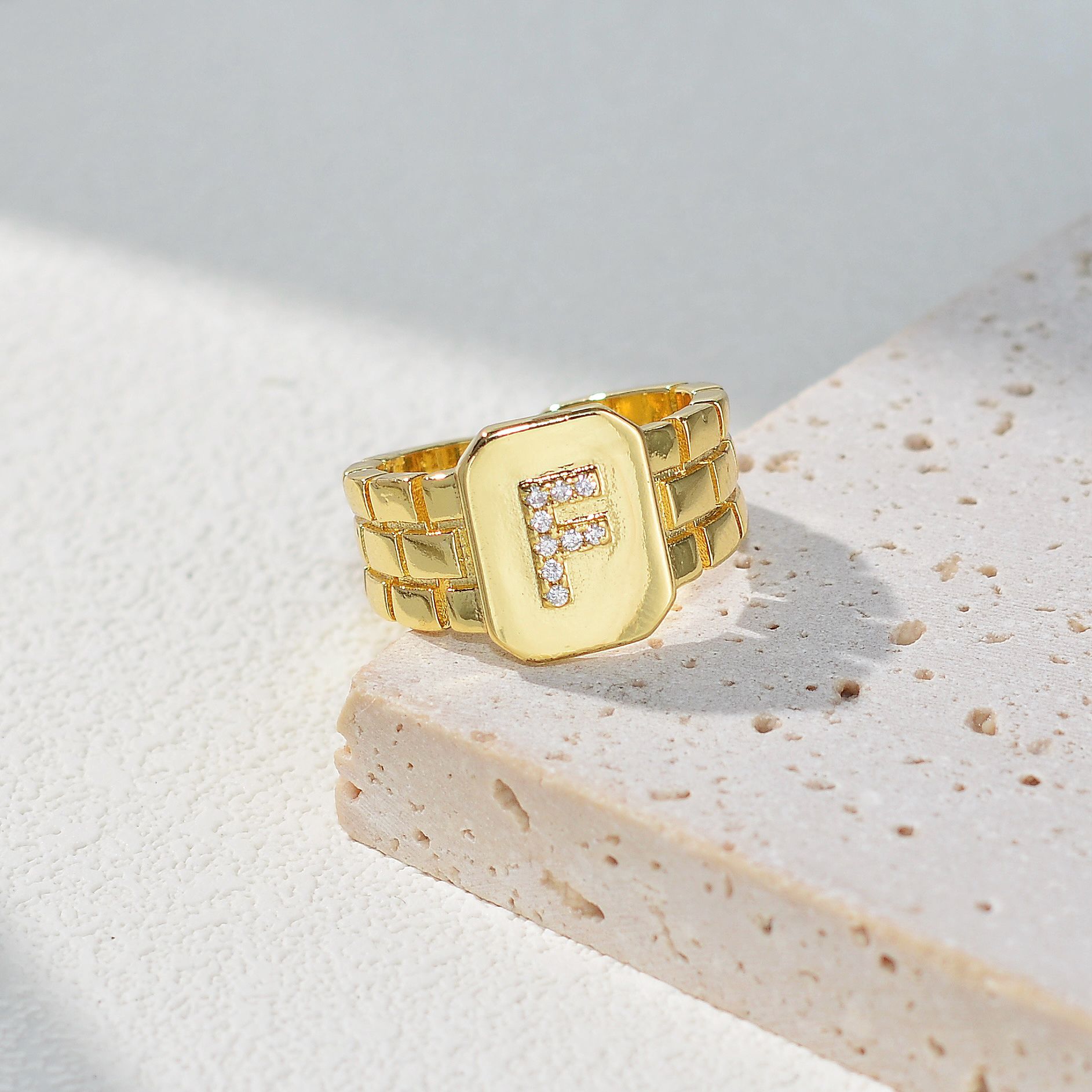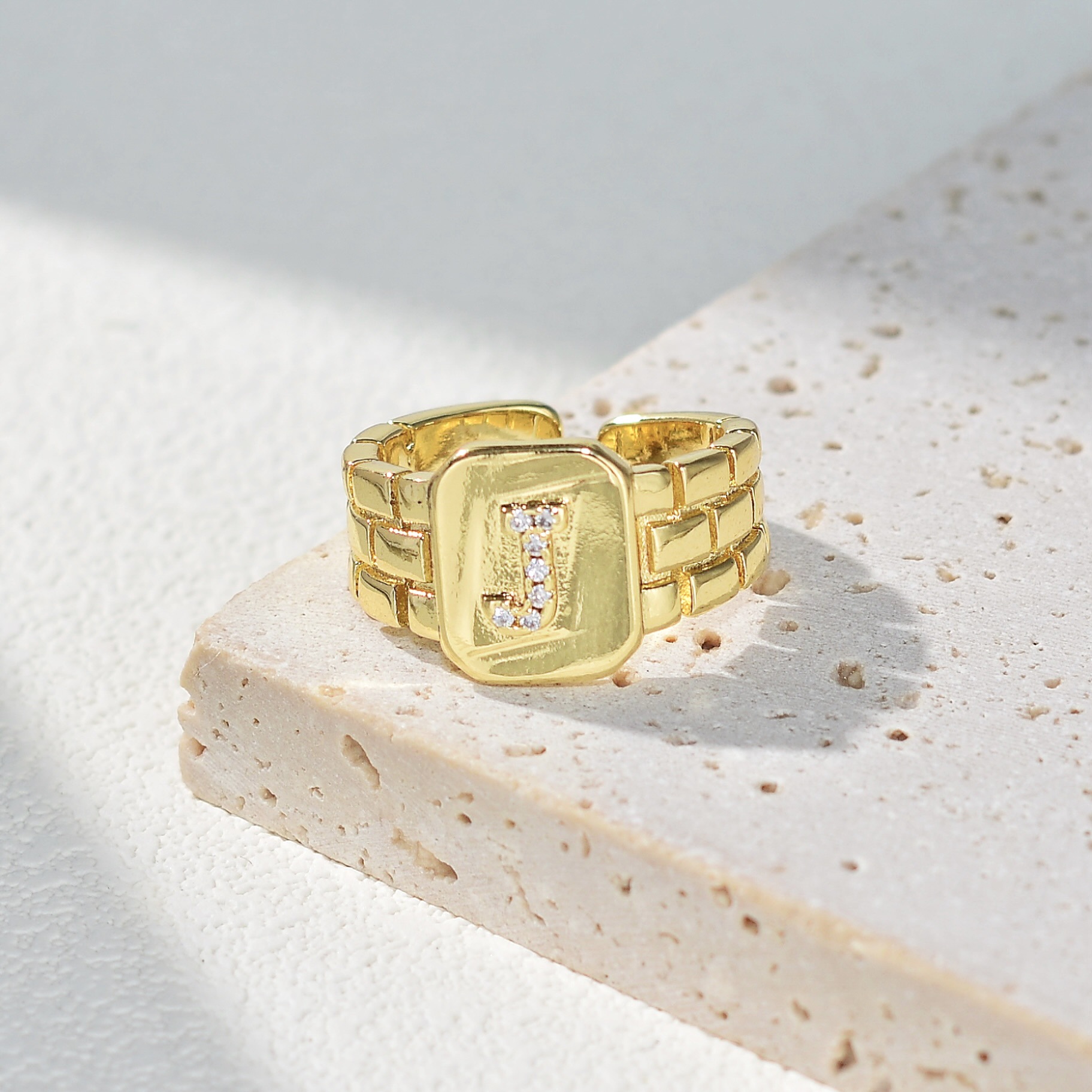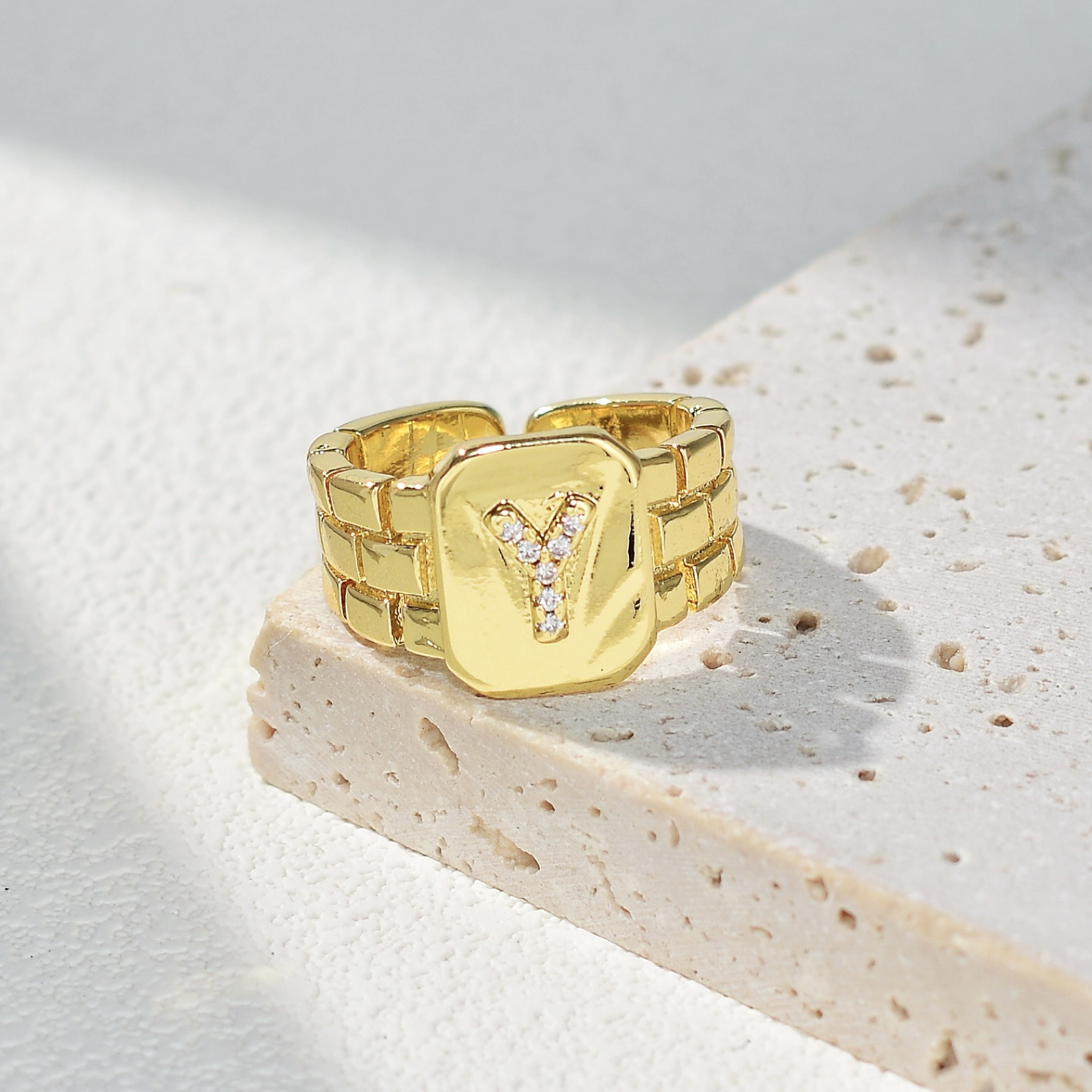 跨境欧美同款热卖戒指字母系列 镀真金饰品表带设计字母开口戒指