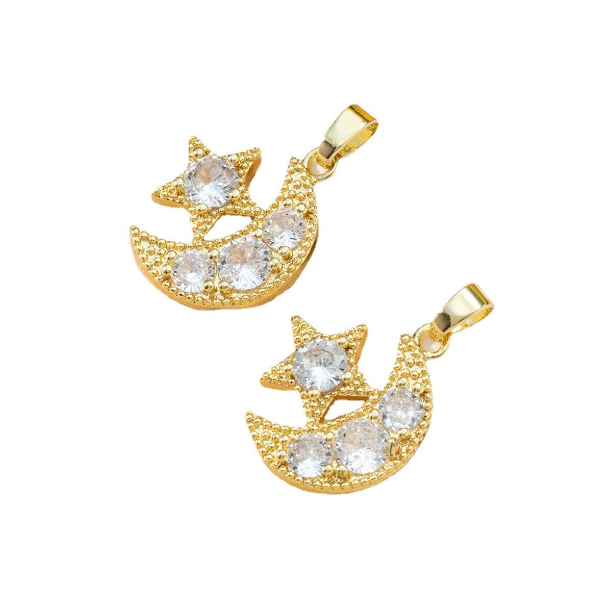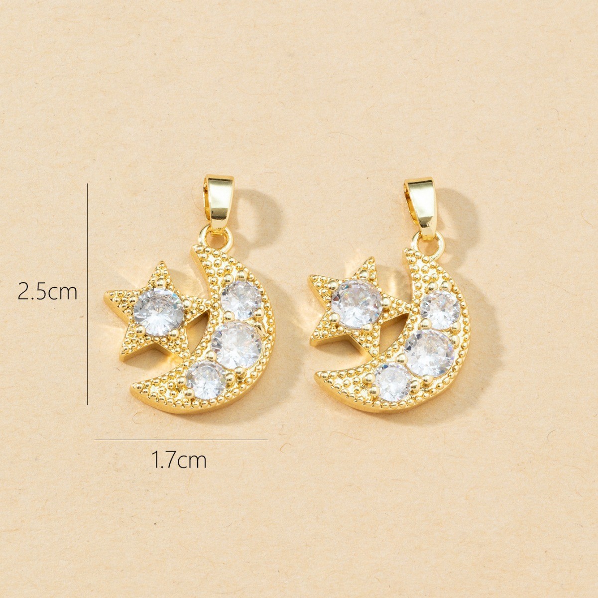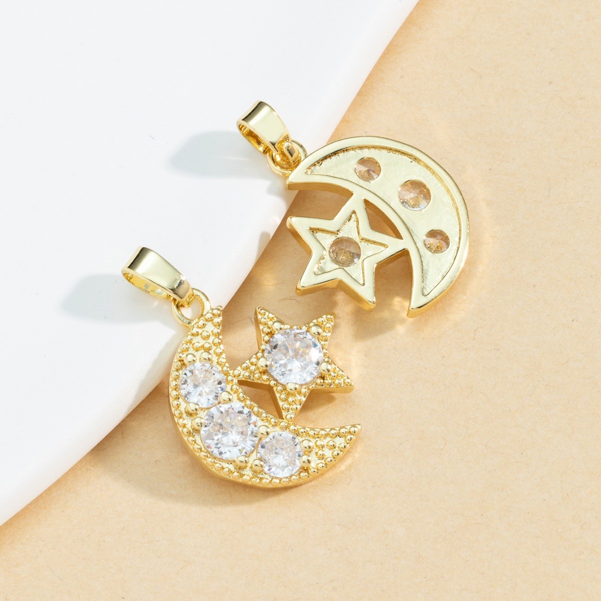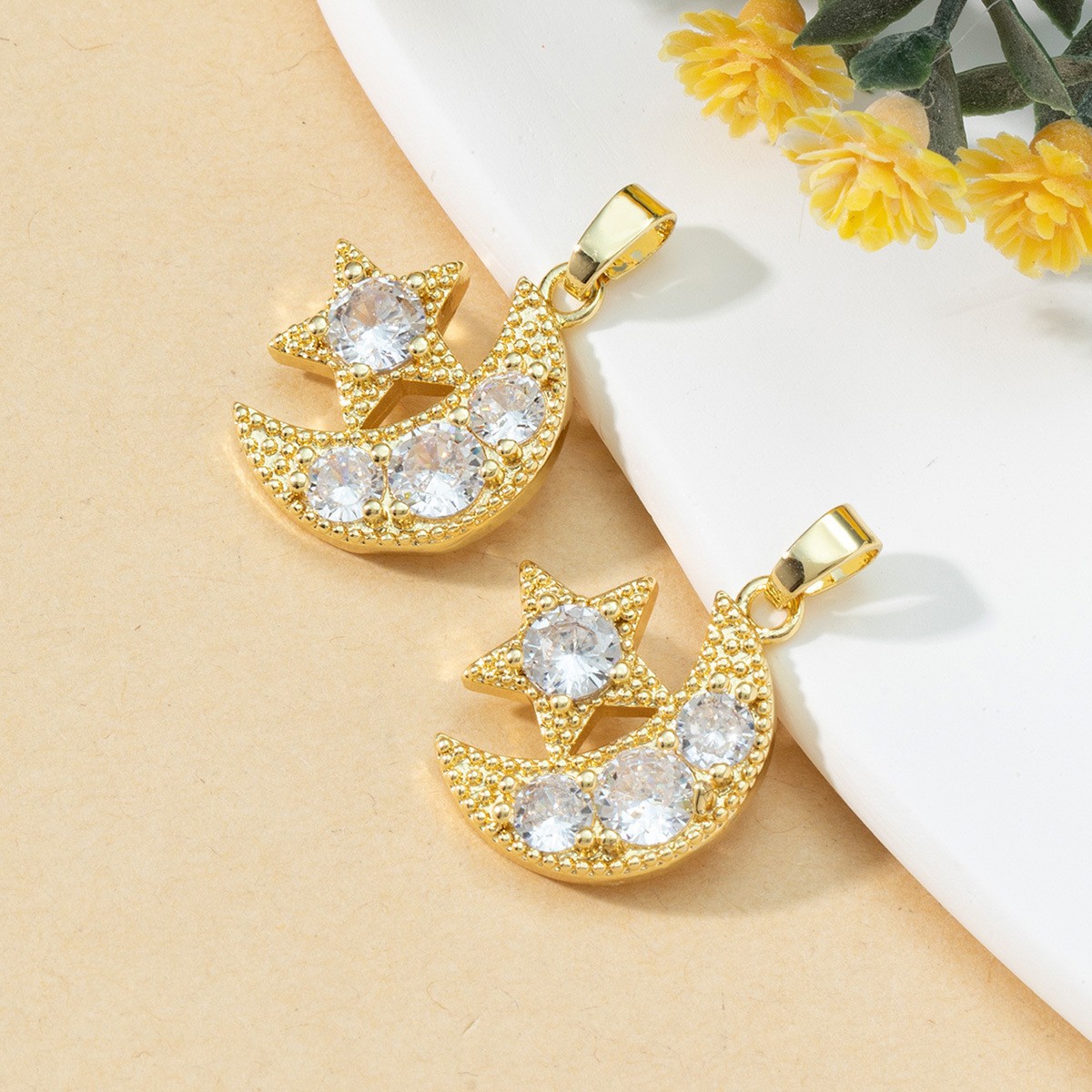 欧美电镀真金月亮项链 波西米亚锆石小众黄铜微镶铸造颈链女吊坠