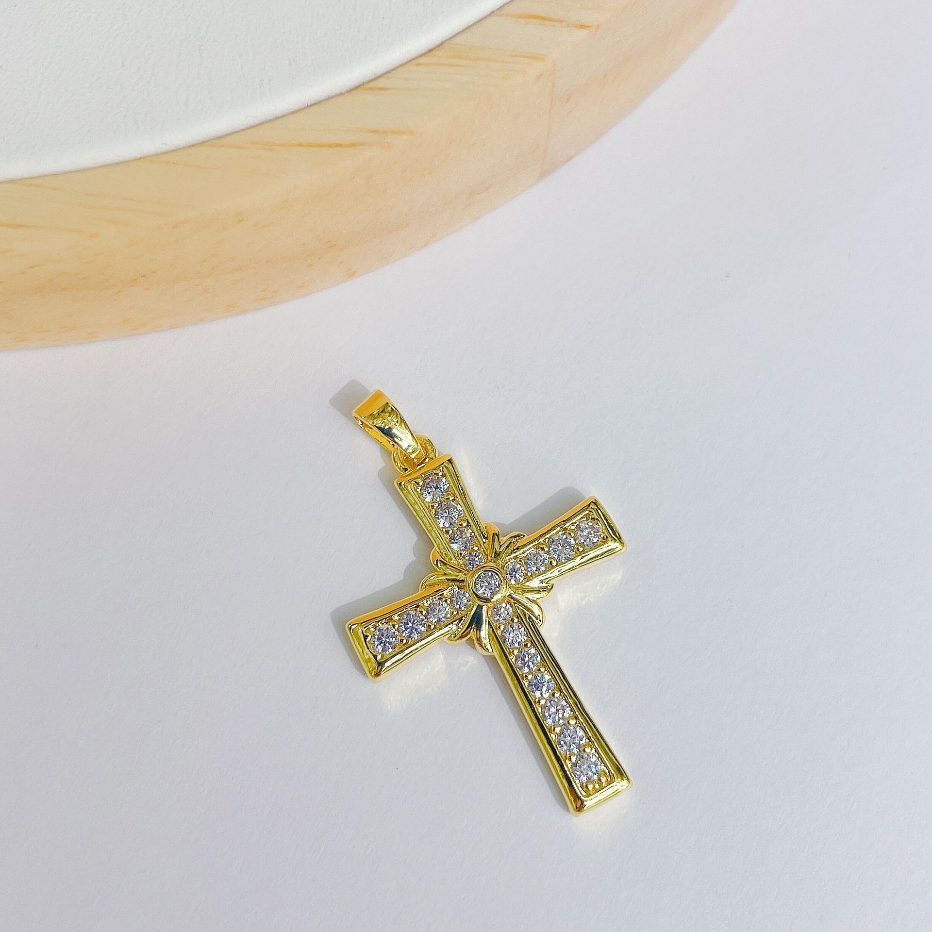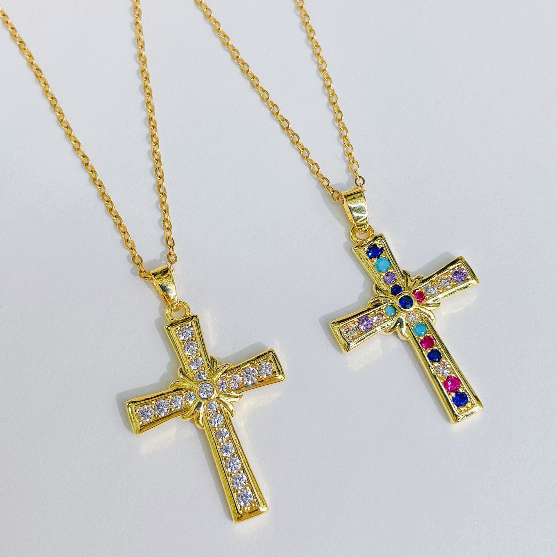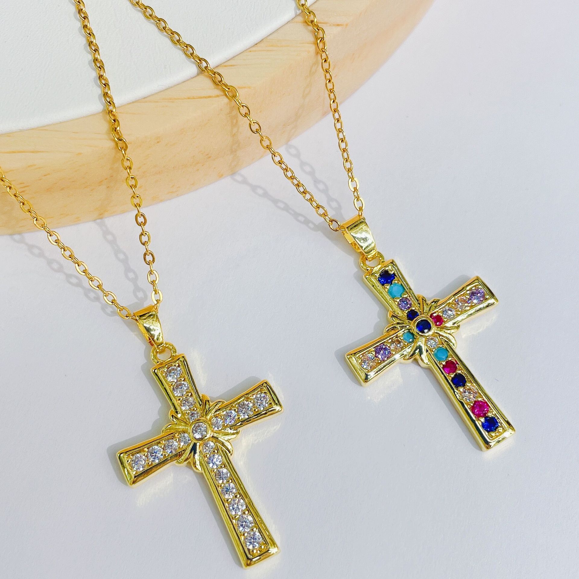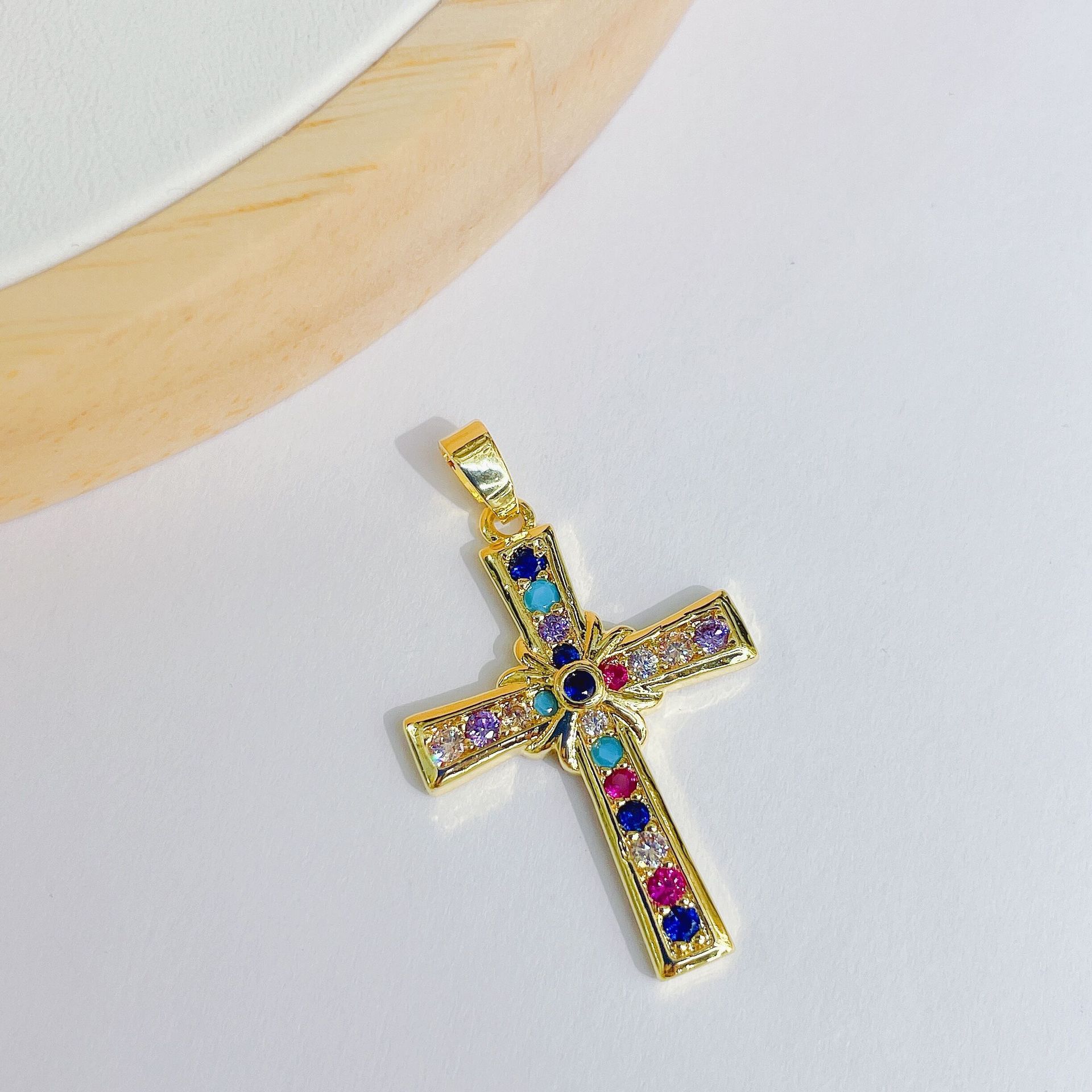 欧美简约小众百搭微镶彩色锆石铜十字架项链吊坠配件个性男女同款