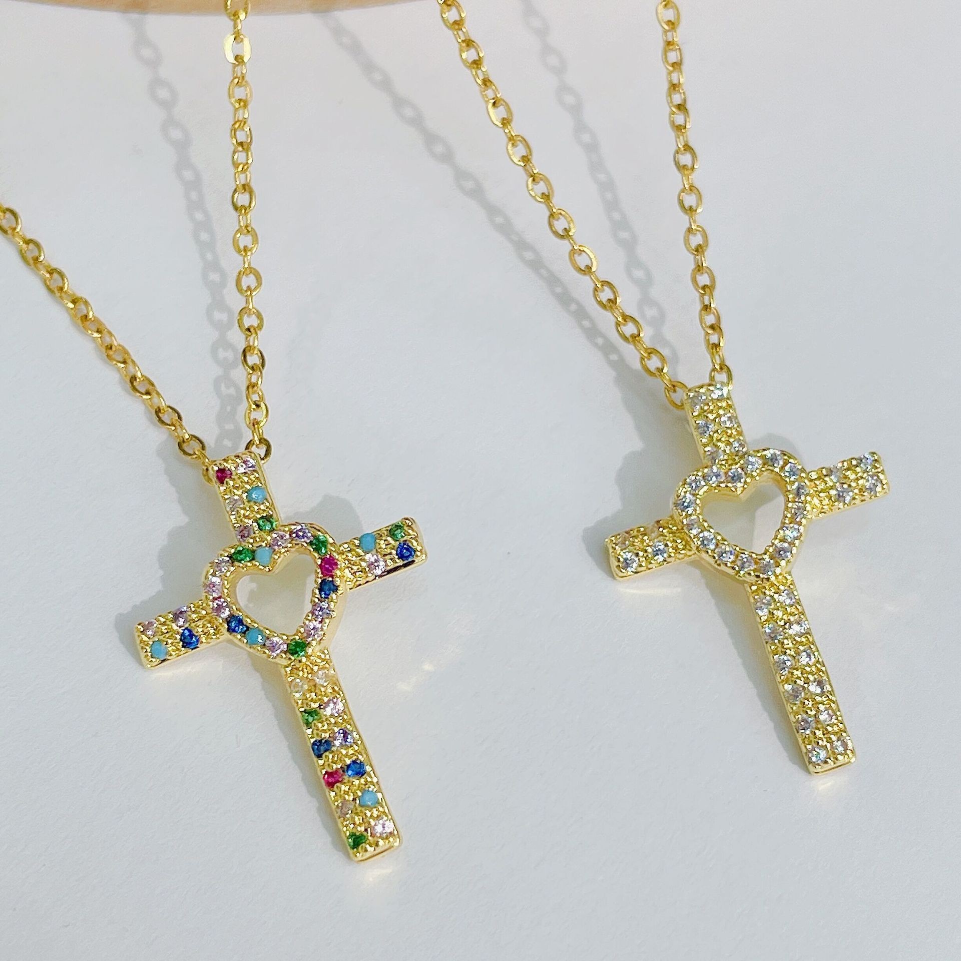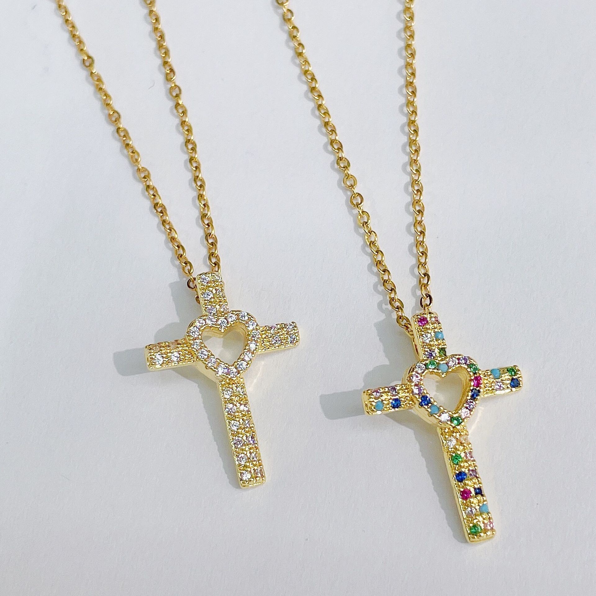 跨境复古朋克十字架项链个性锆石十字架吊坠欧美小众钛钢锁骨项链