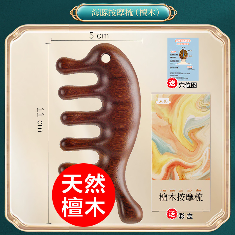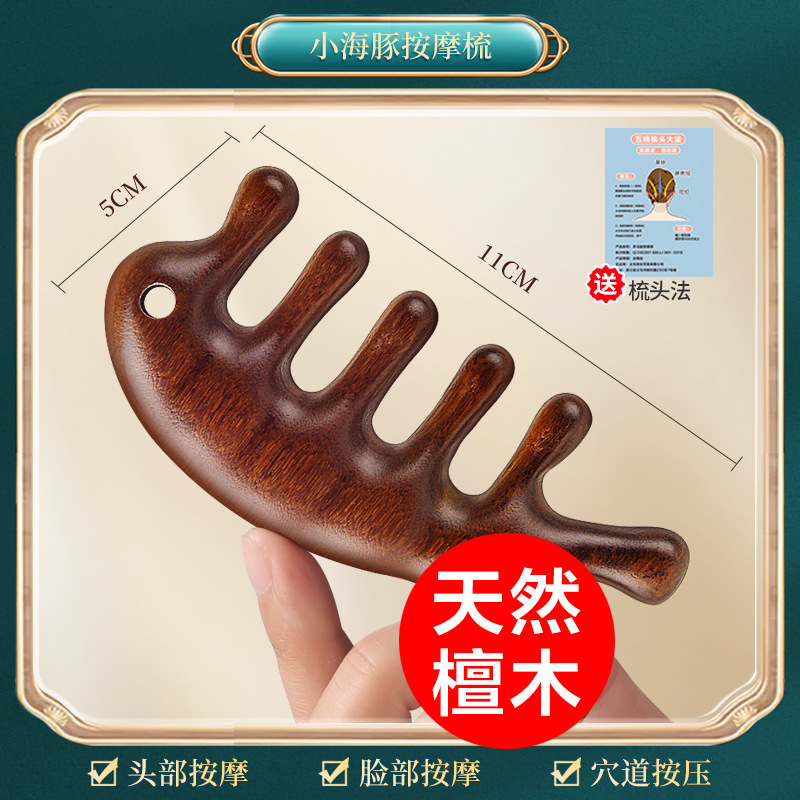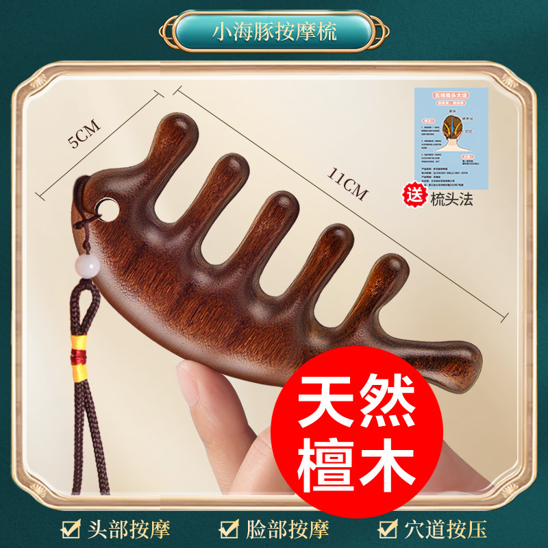 正品檀木按摩梳头部经络梳子头部按摩器皮刮鼻器海豚梳按摩梳木梳