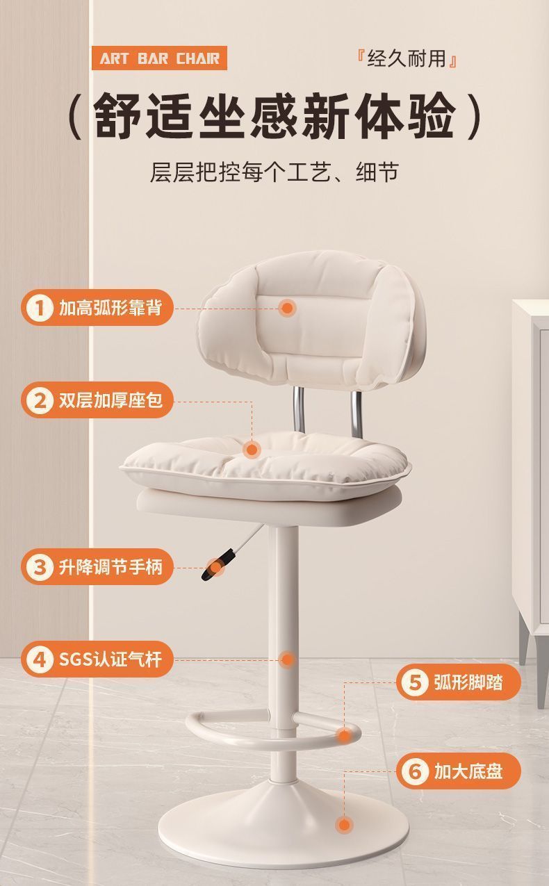 吧台椅现代简约高脚凳酒吧椅子家用升降靠背椅前台收银台岛台吧椅
