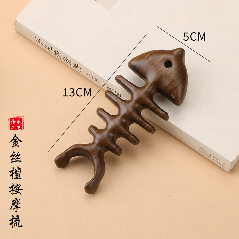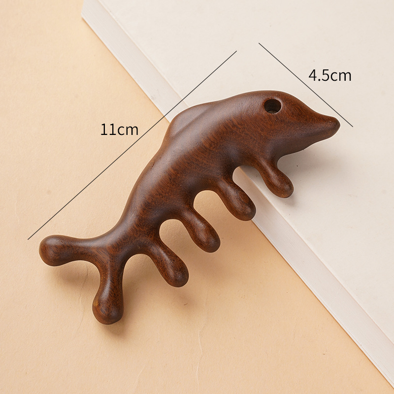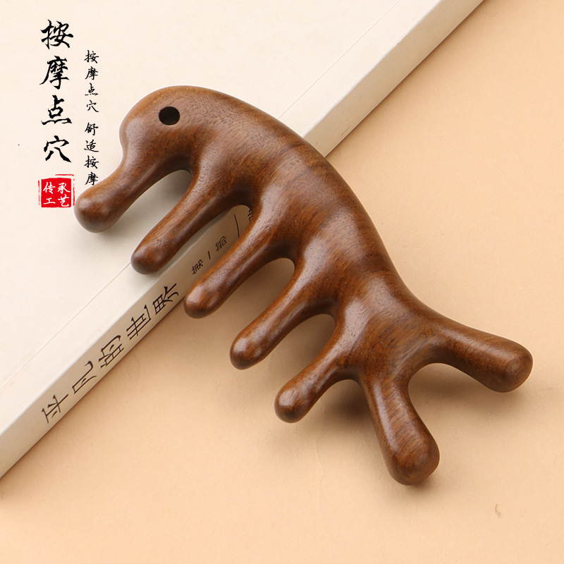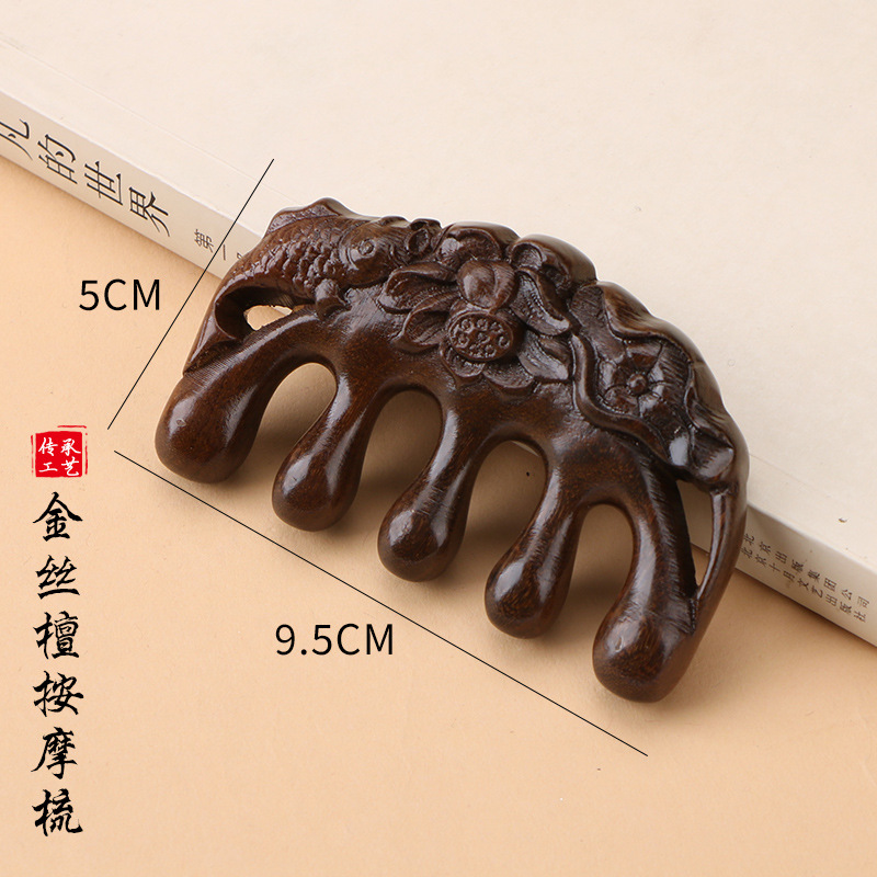金丝檀木梳子按摩梳五齿梳海豚多功能圆头经络梳檀木按摩梳子刻字