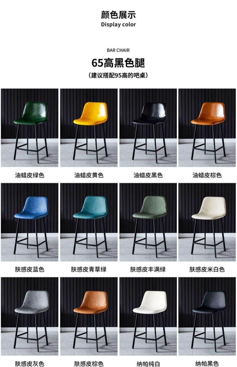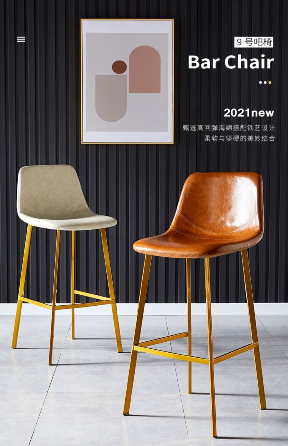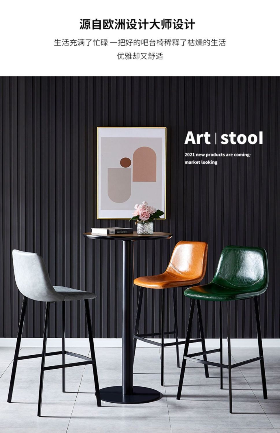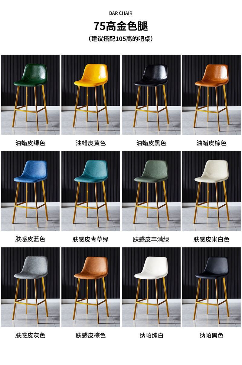 意式极简轻奢吧台椅酒店前台椅高级感家用高脚凳靠背高脚椅酒吧椅
