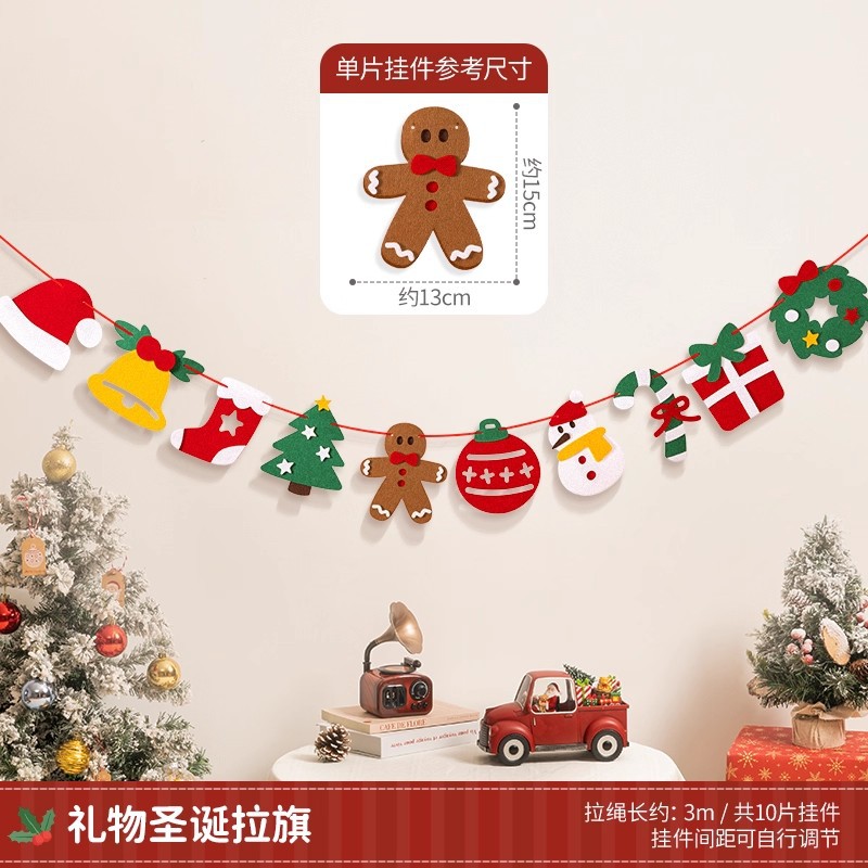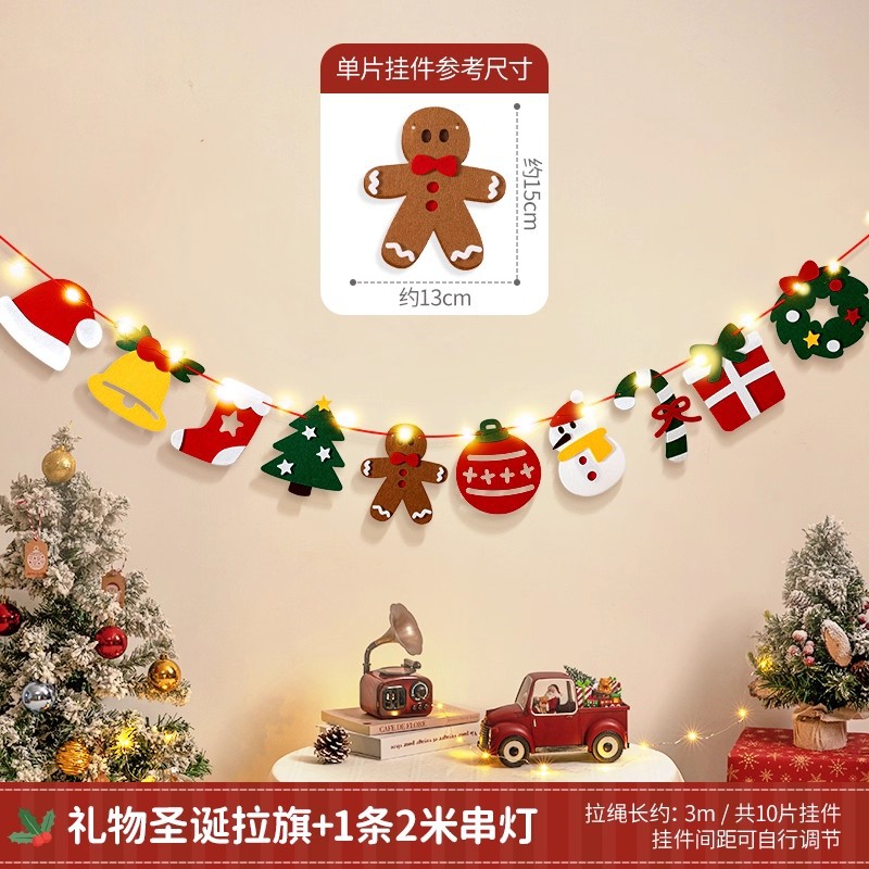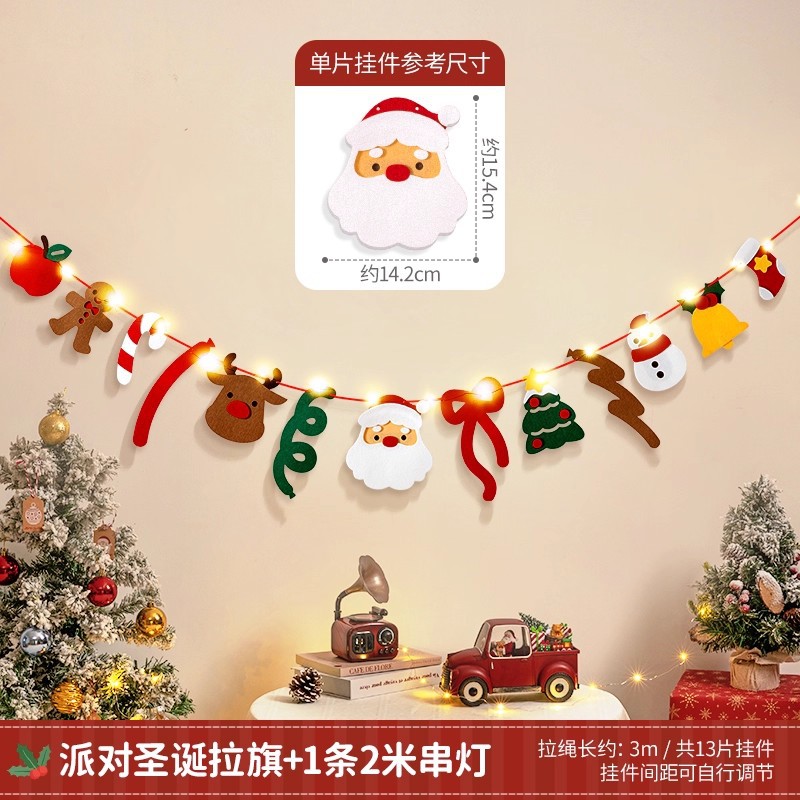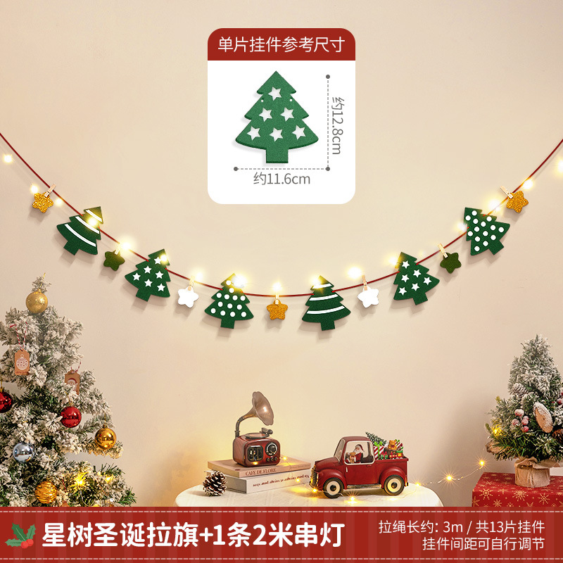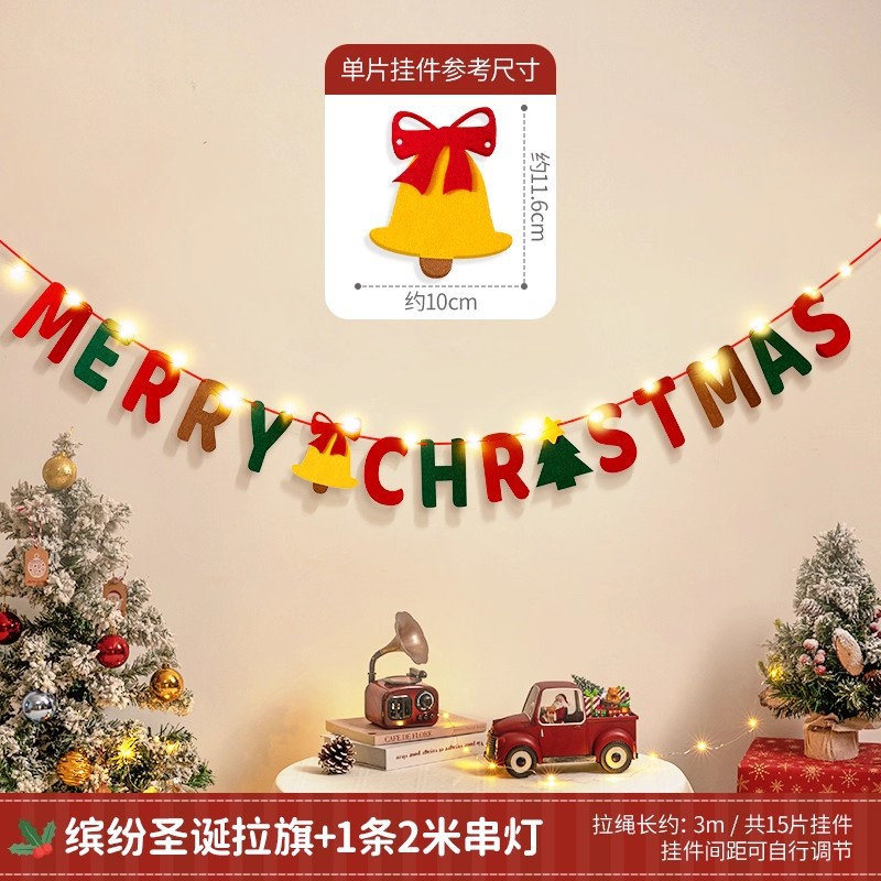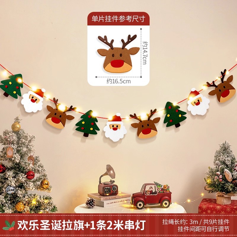 跨境圣诞节拉旗装饰品氛围灯场景布置拍摄道具拉花挂件挂饰吊饰树