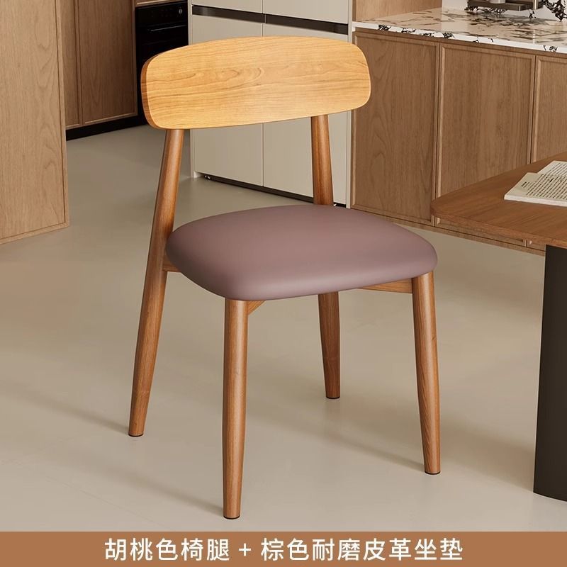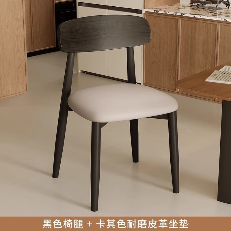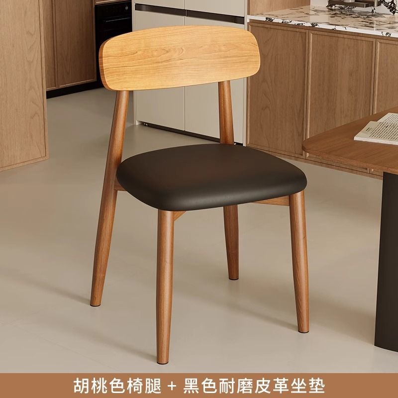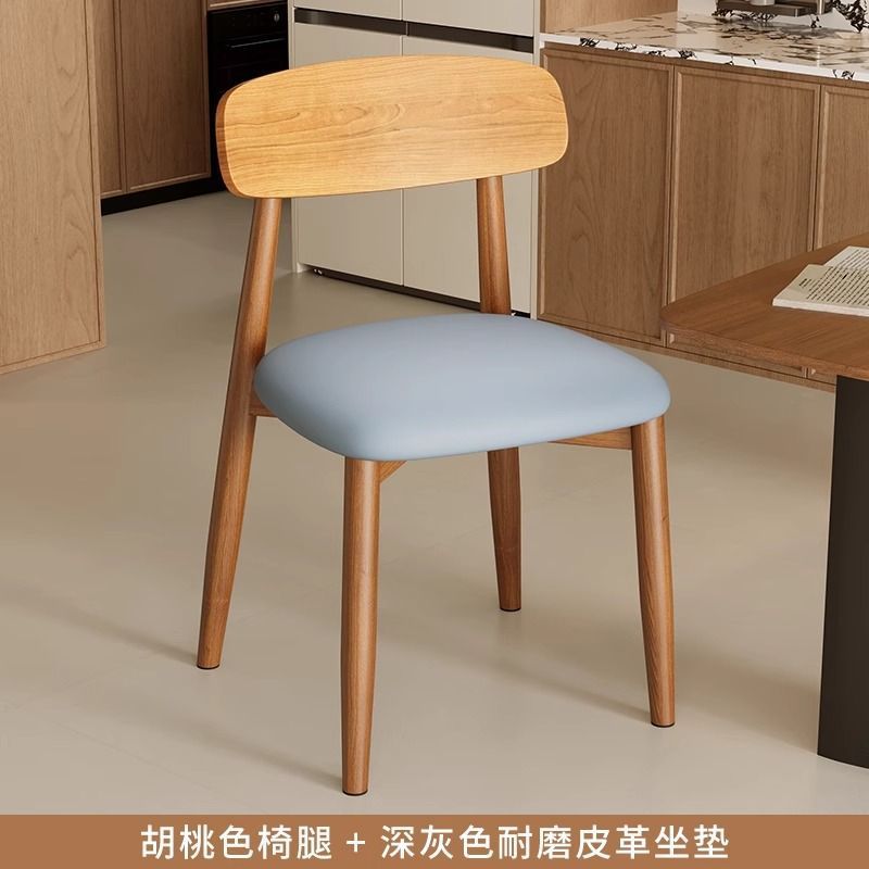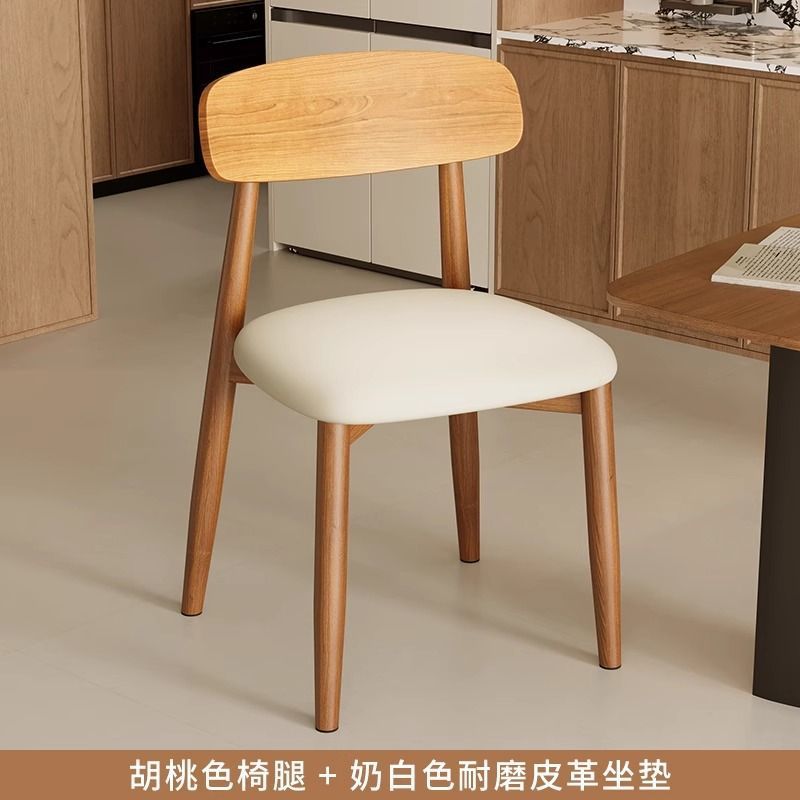 仿实木餐椅家用餐桌椅子靠背软包茶椅凳子出租房简约中古风书桌椅