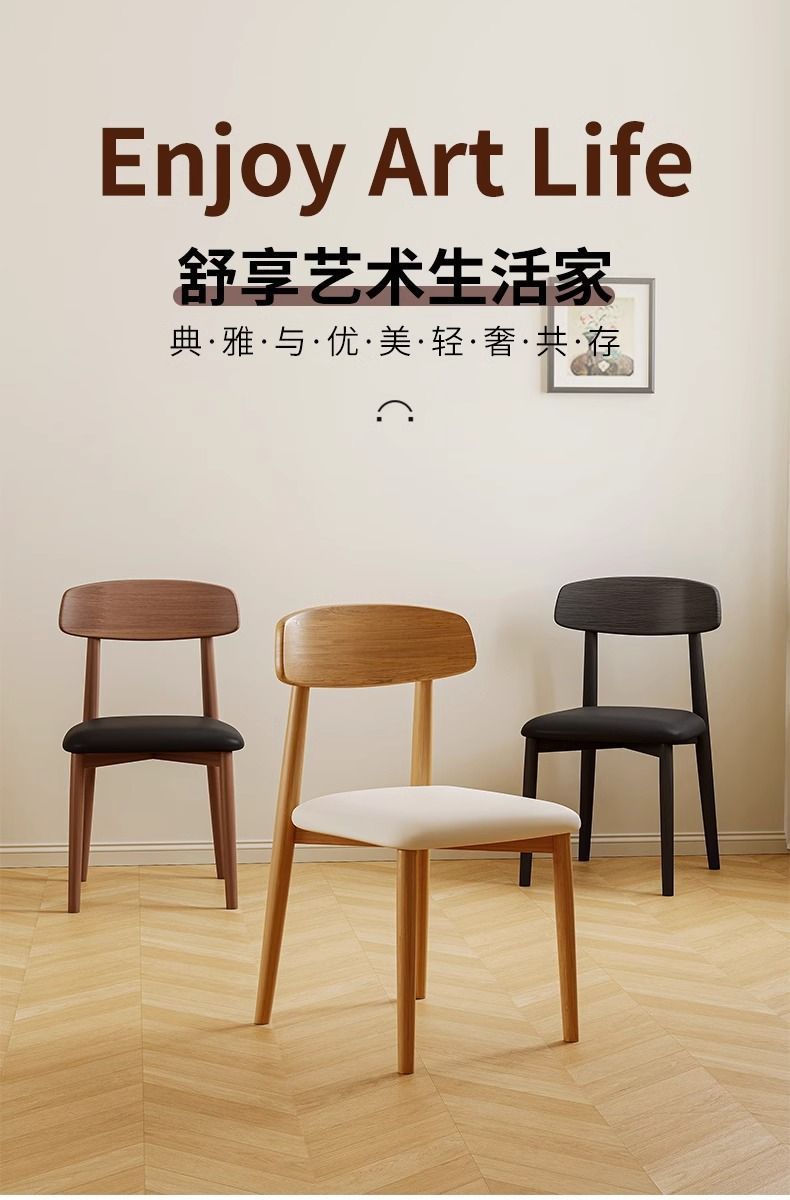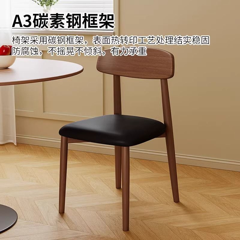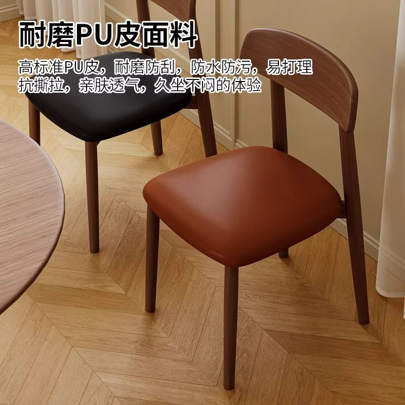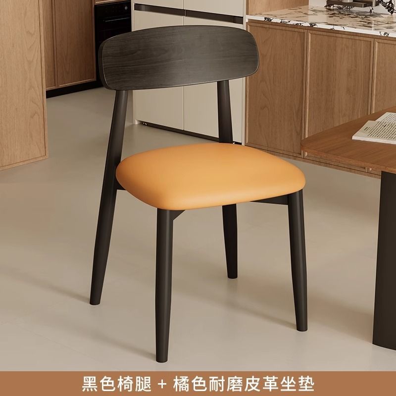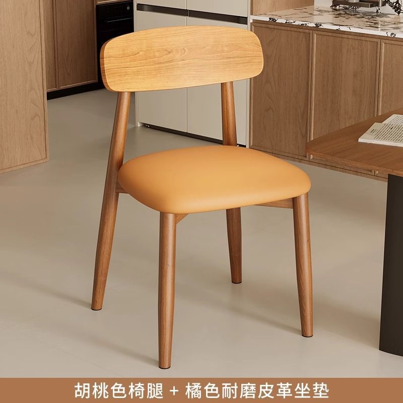 仿实木餐椅家用餐桌椅子靠背软包茶椅凳子出租房简约中古风书桌椅