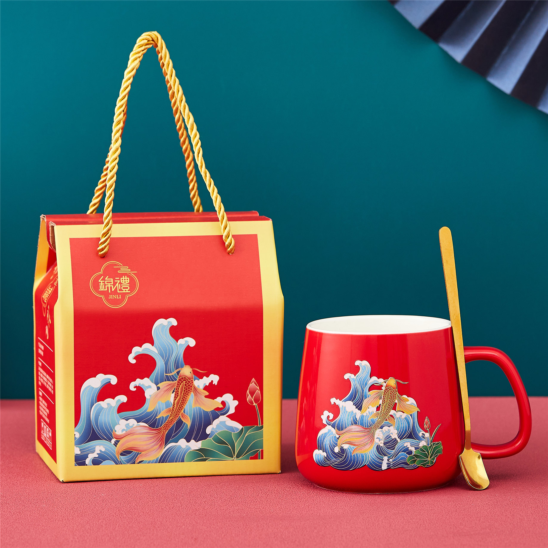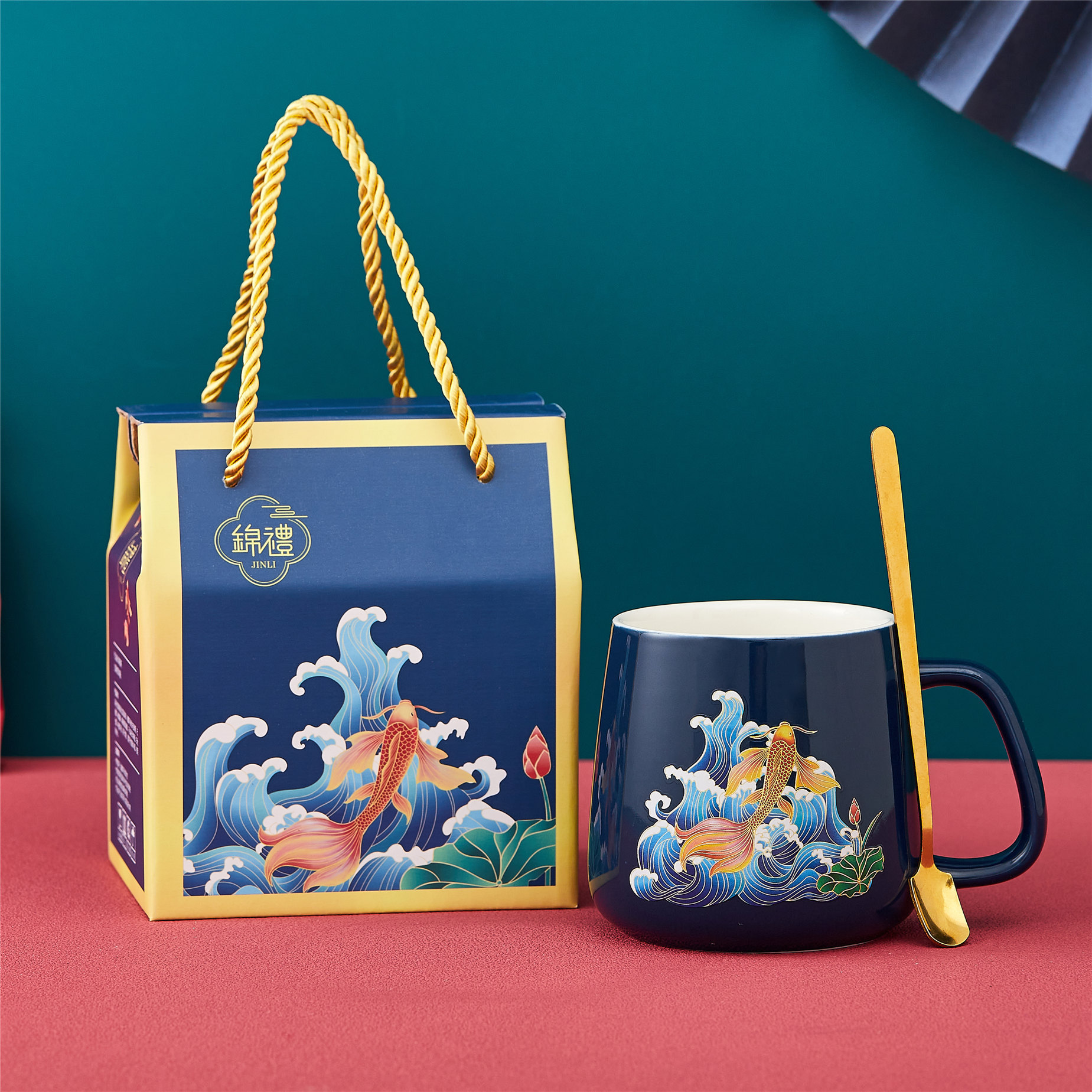 咖啡杯国潮风小礼品礼盒装暖暖杯55度加热恒温杯陶瓷杯马克水杯子