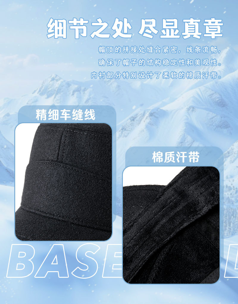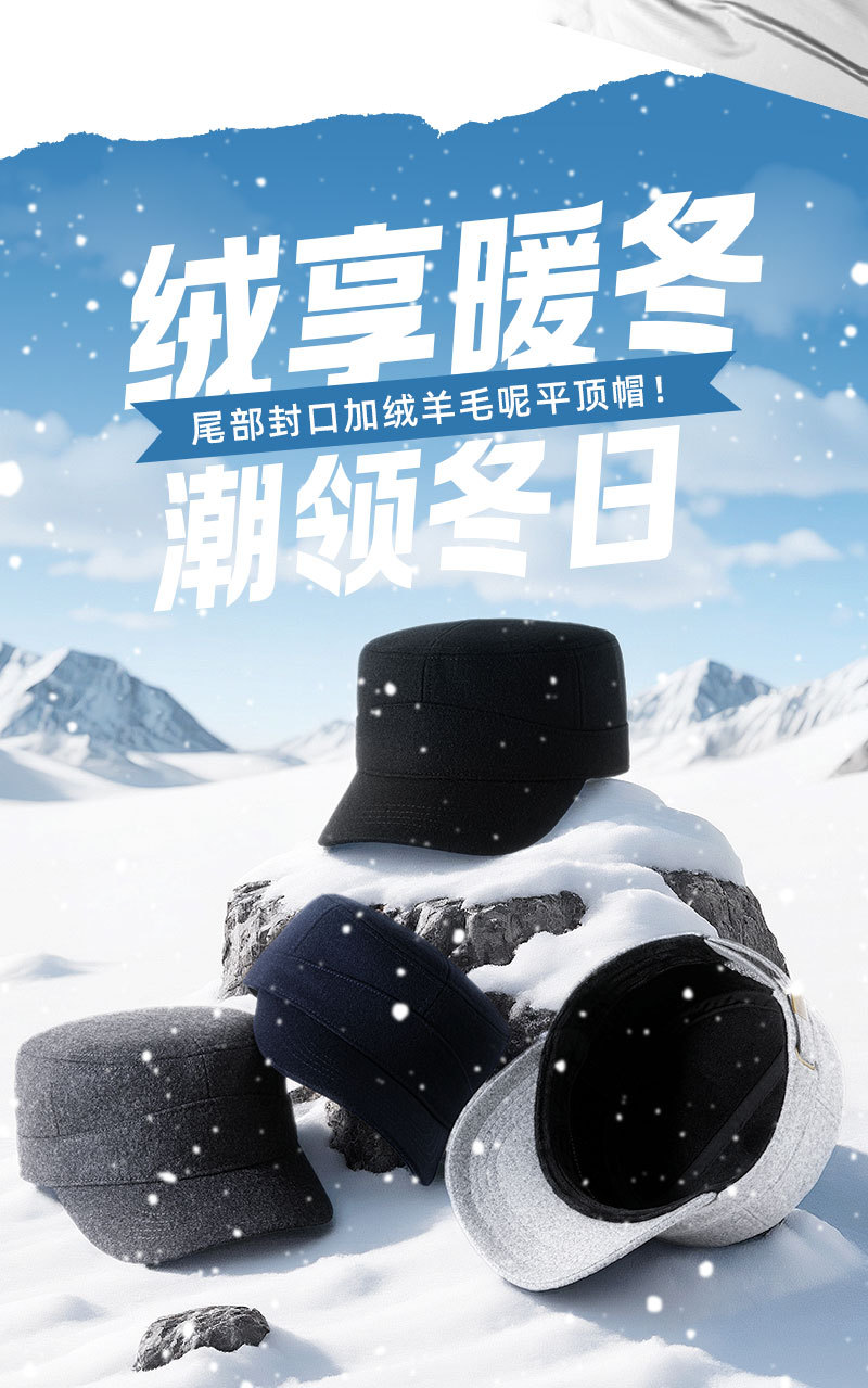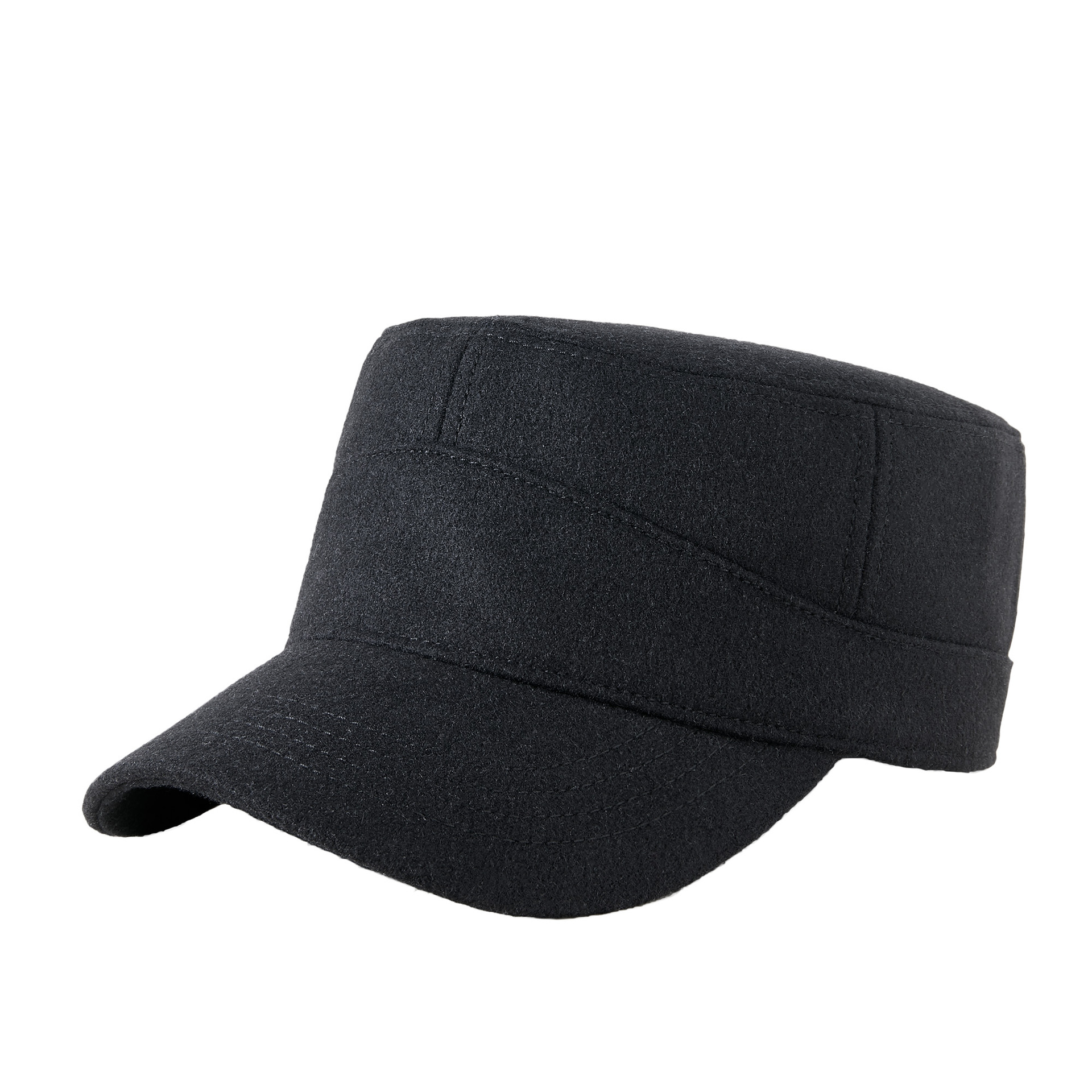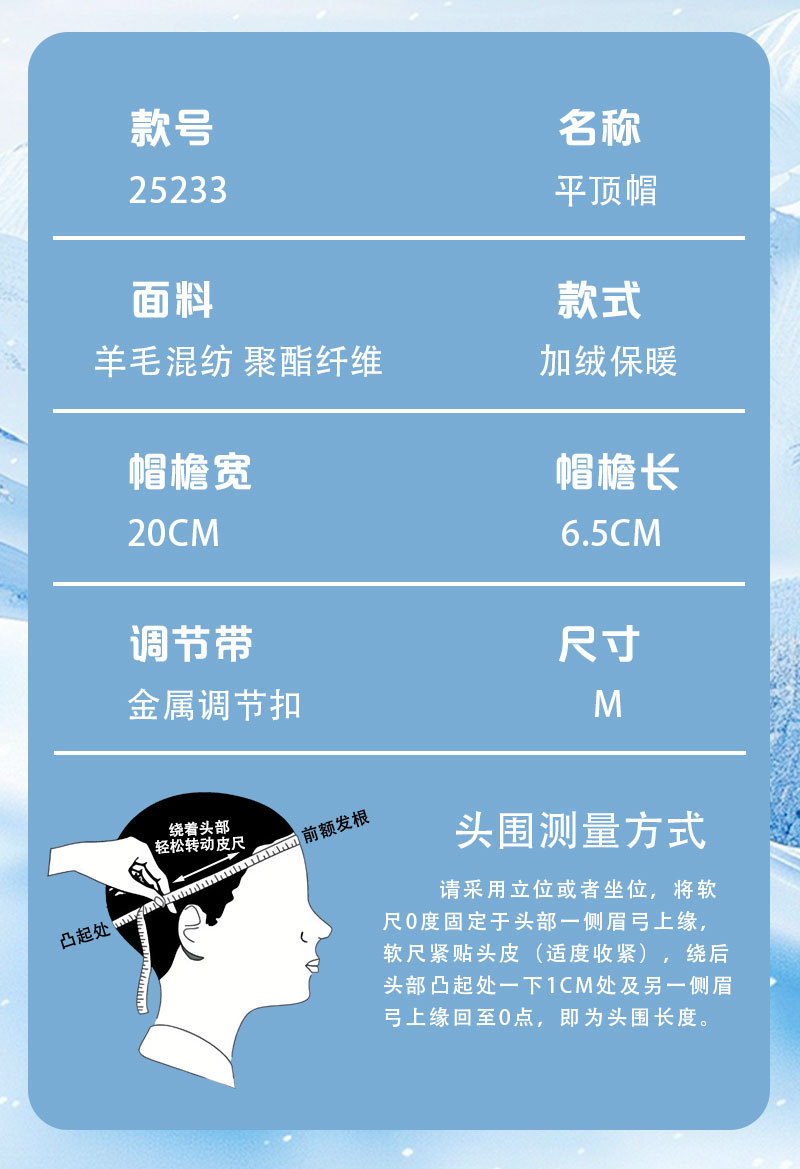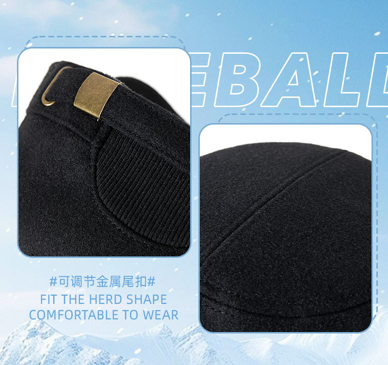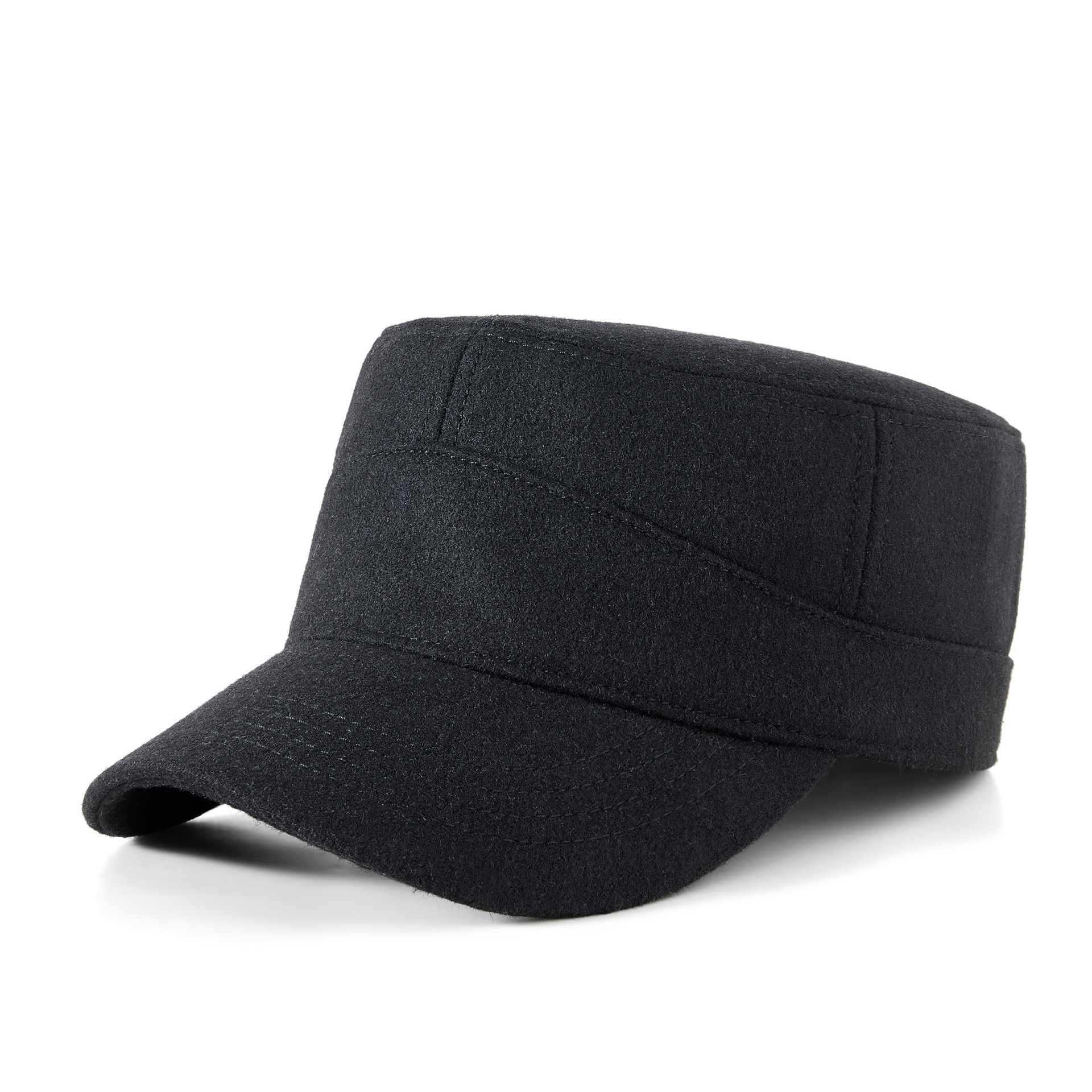 新款冬季羊毛呢帽子加绒加厚平顶帽男后封口中老年户外保暖鸭舌帽