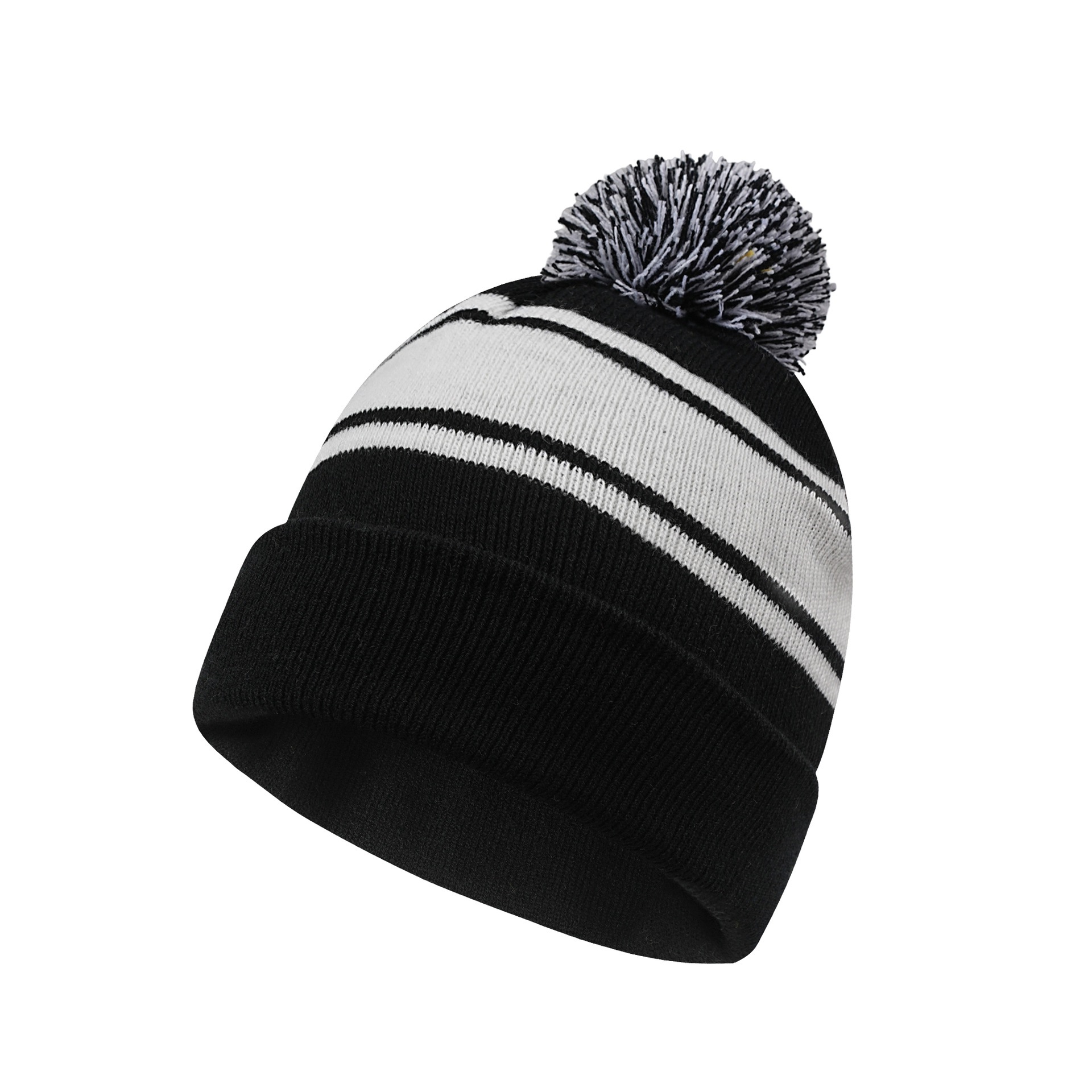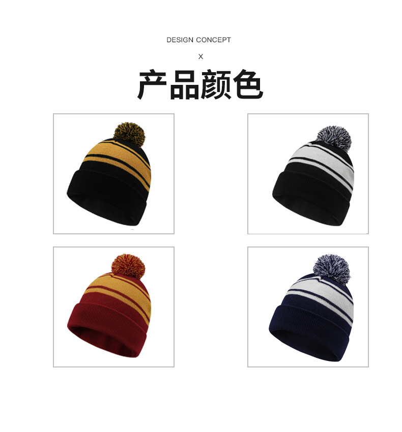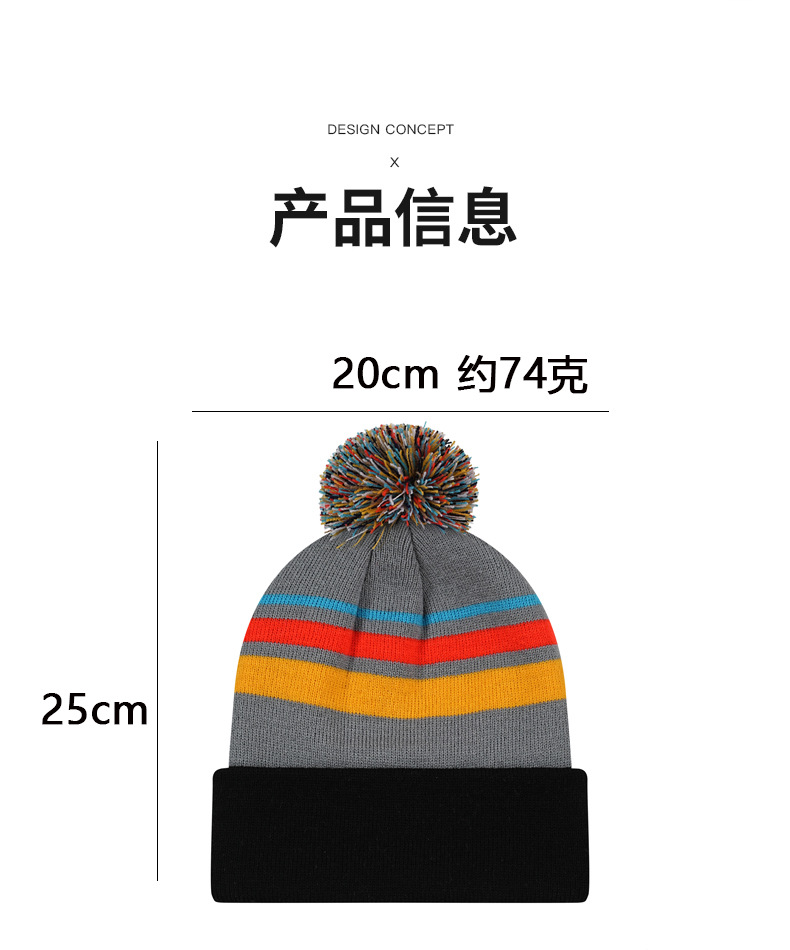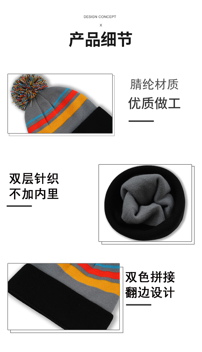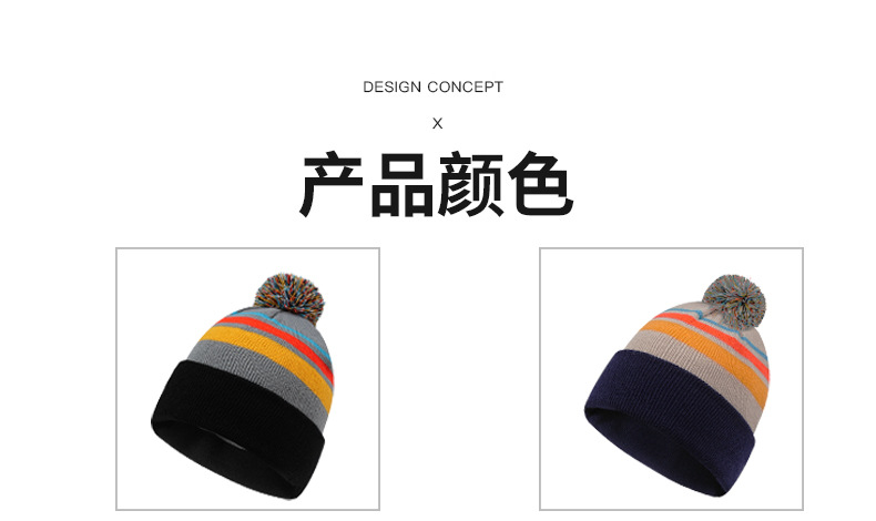 跨境彩色条纹针织帽子男户外滑雪提花毛线帽拼色护耳套头毛球冷帽