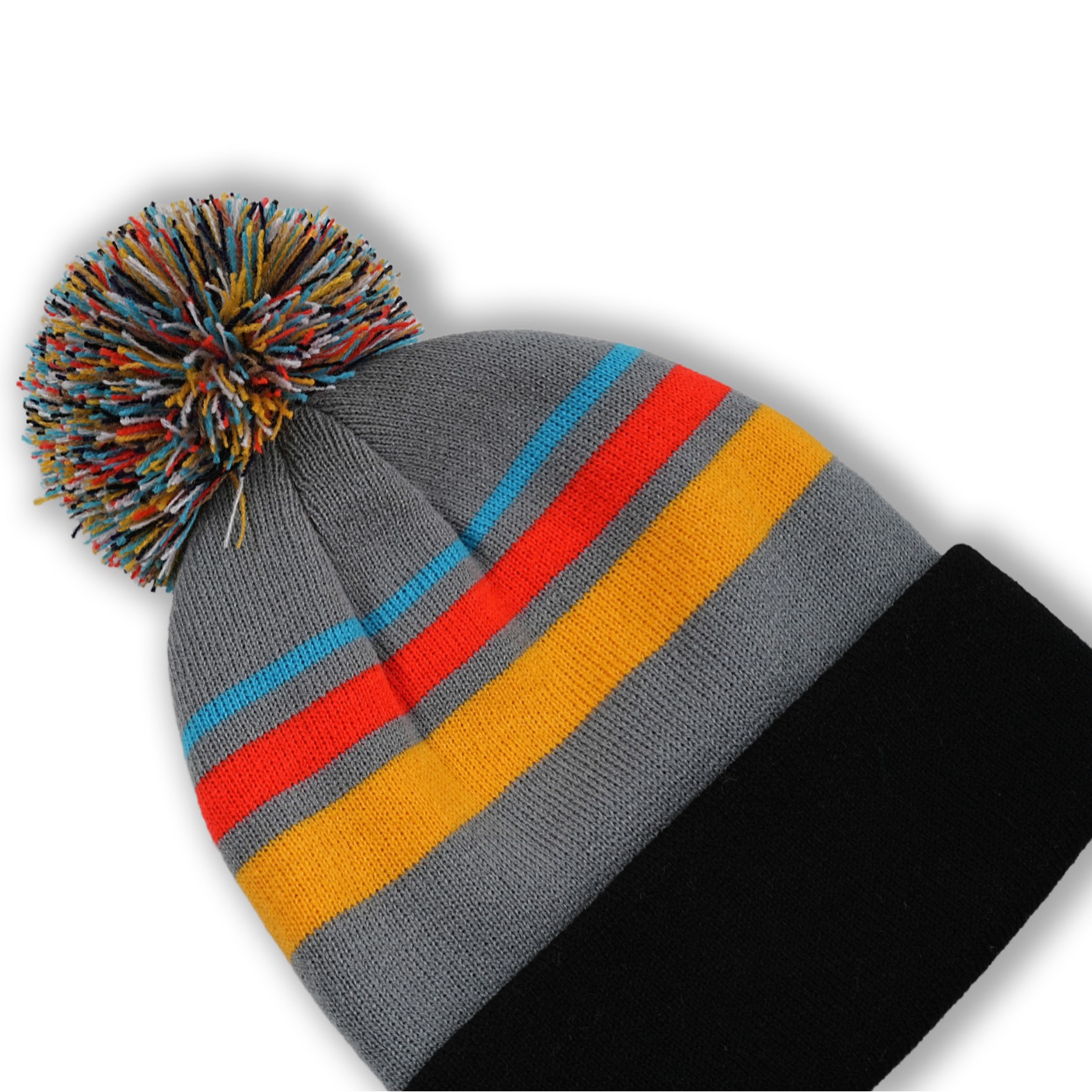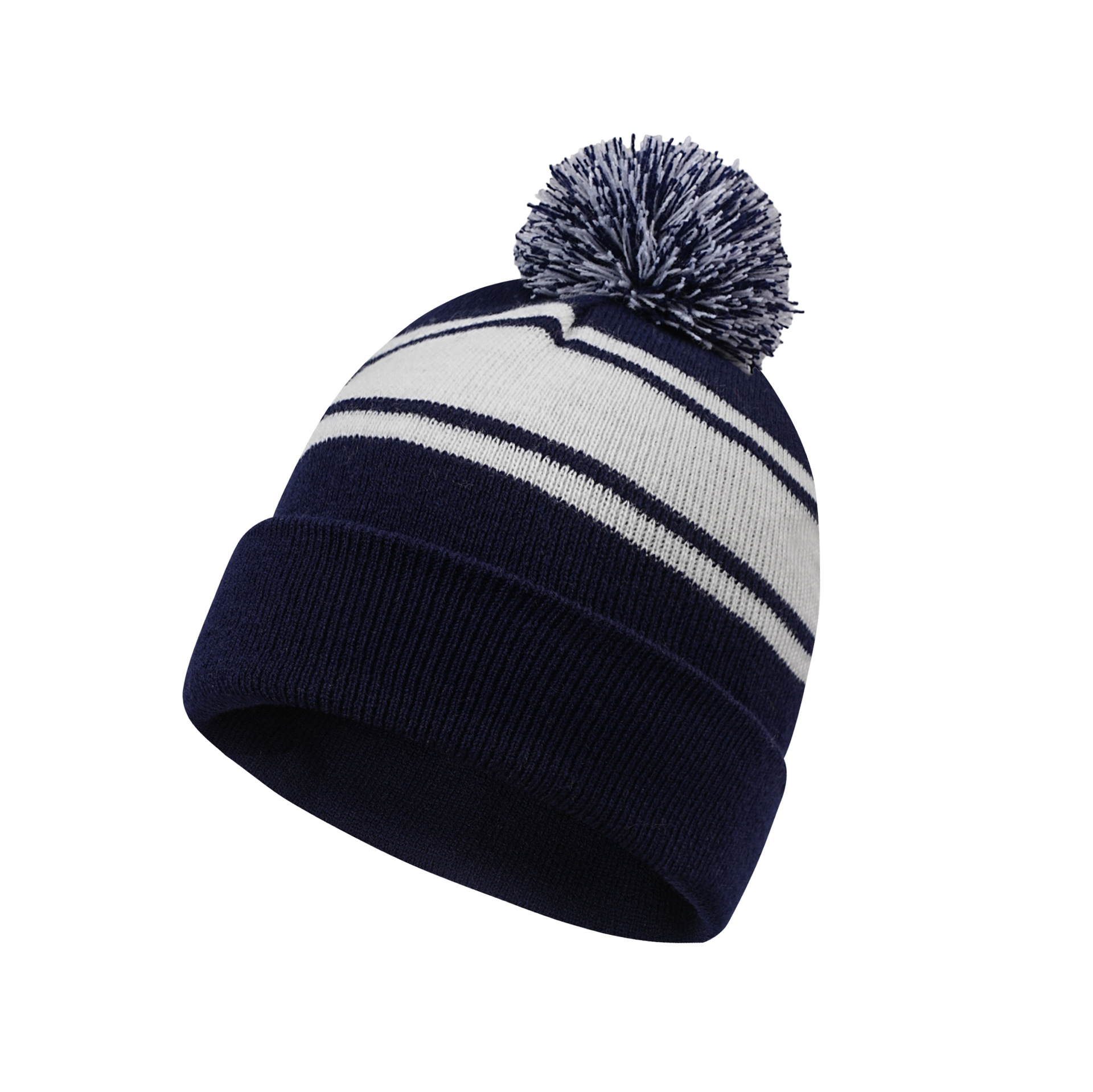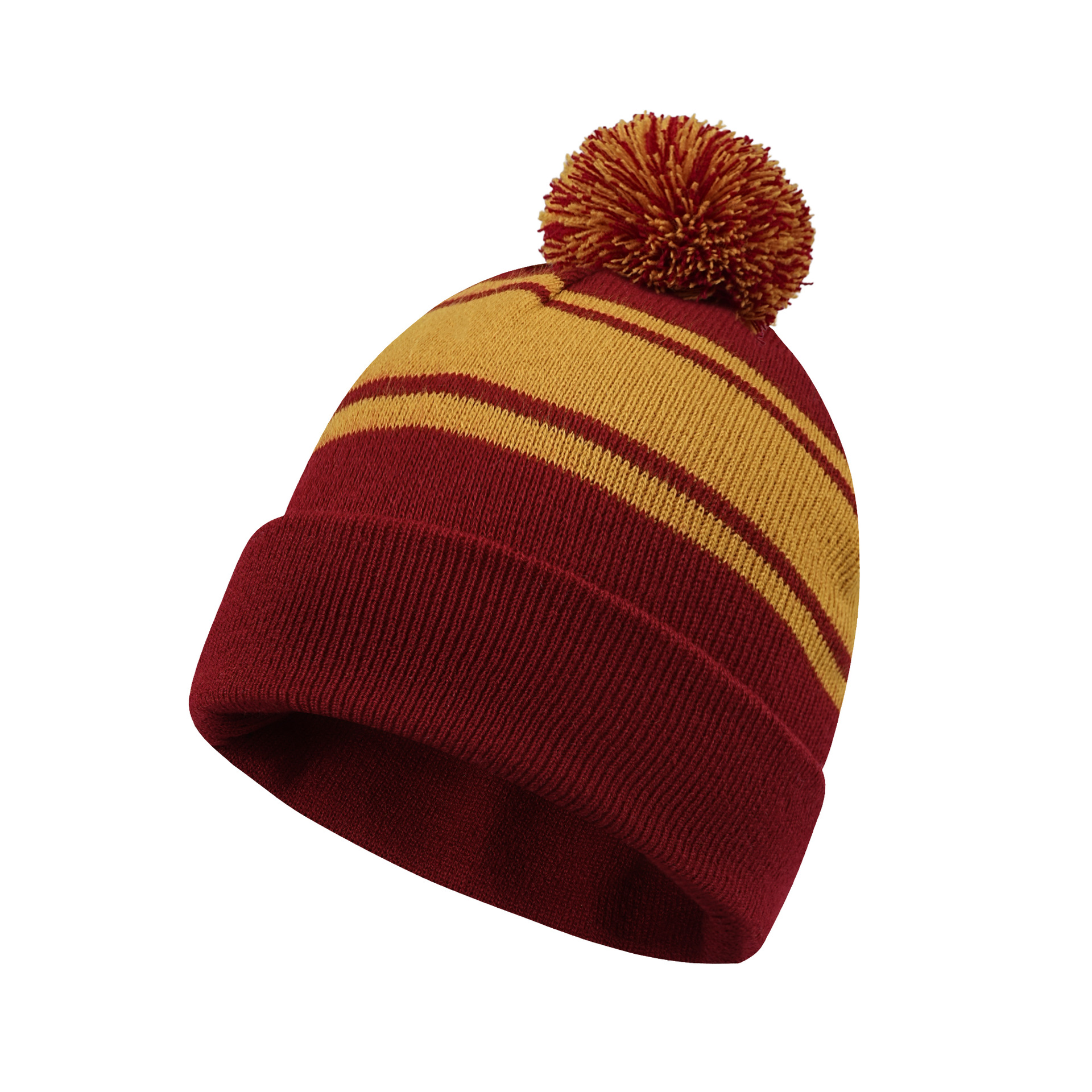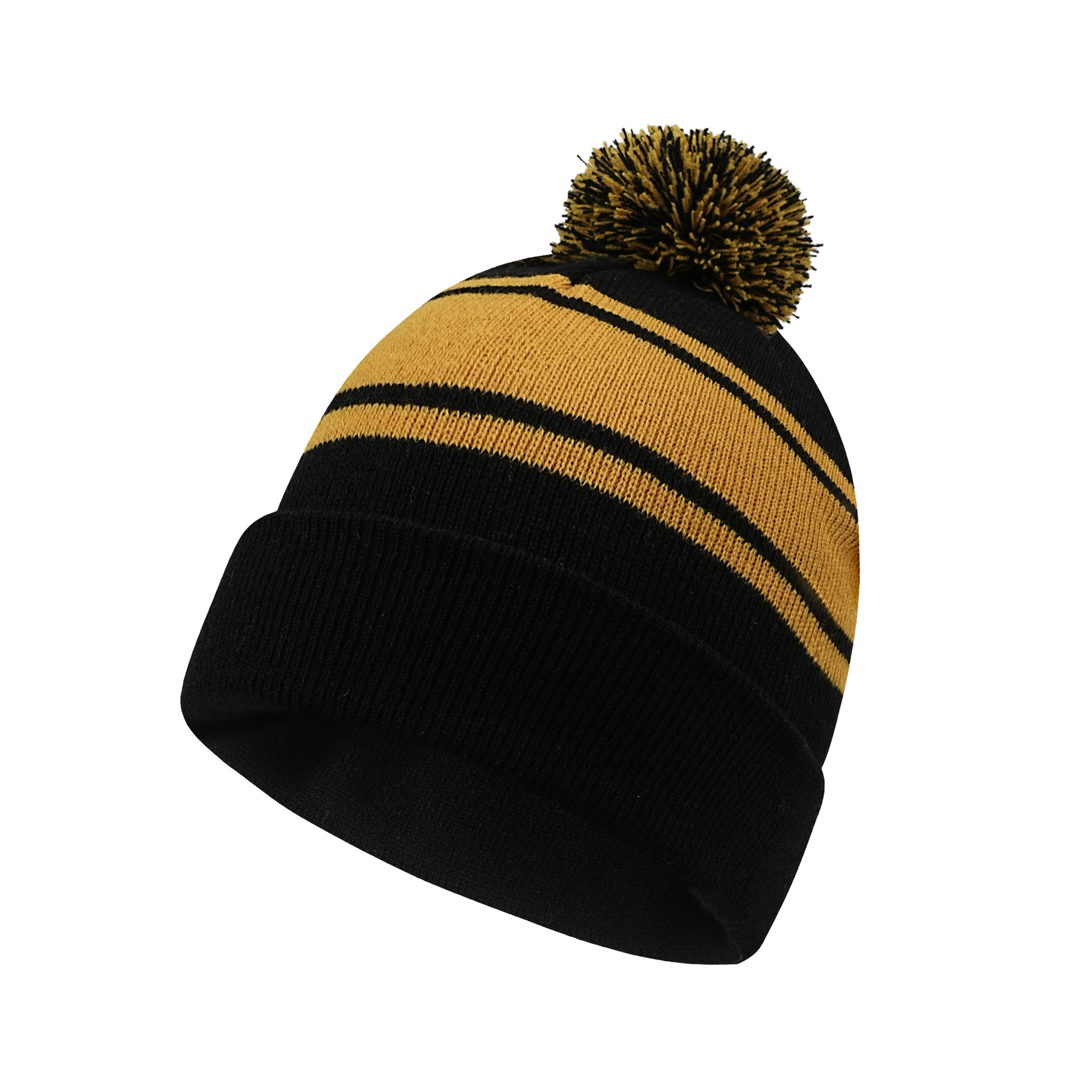 跨境彩色条纹针织帽子男户外滑雪提花毛线帽拼色护耳套头毛球冷帽