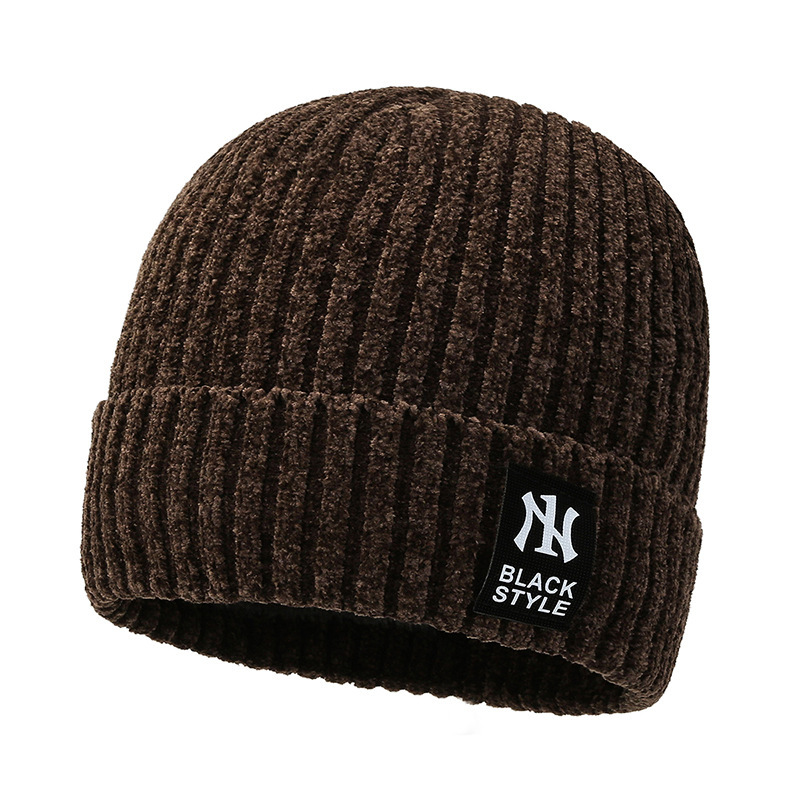 男士冬季针织帽加厚保暖护耳帽雪尼尔毛线防寒帽爸爸骑车帽子