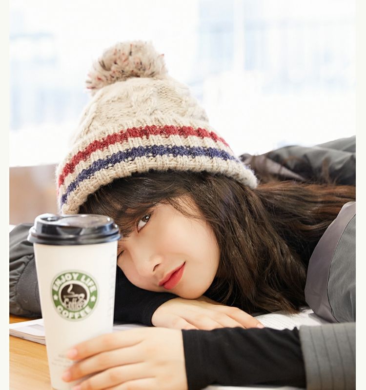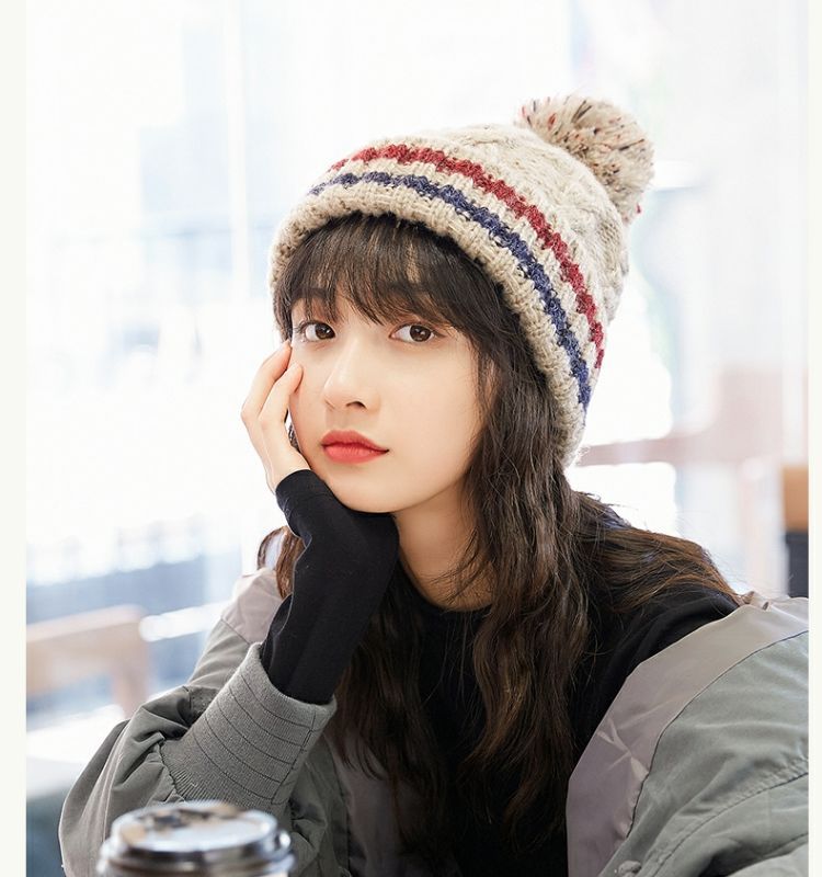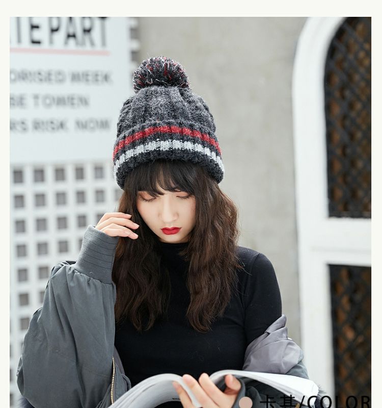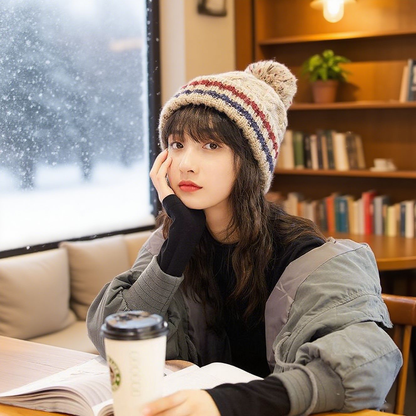 帽子女秋冬韩版加绒加厚月子保暖百搭潮毛线帽日系可爱学生针织帽