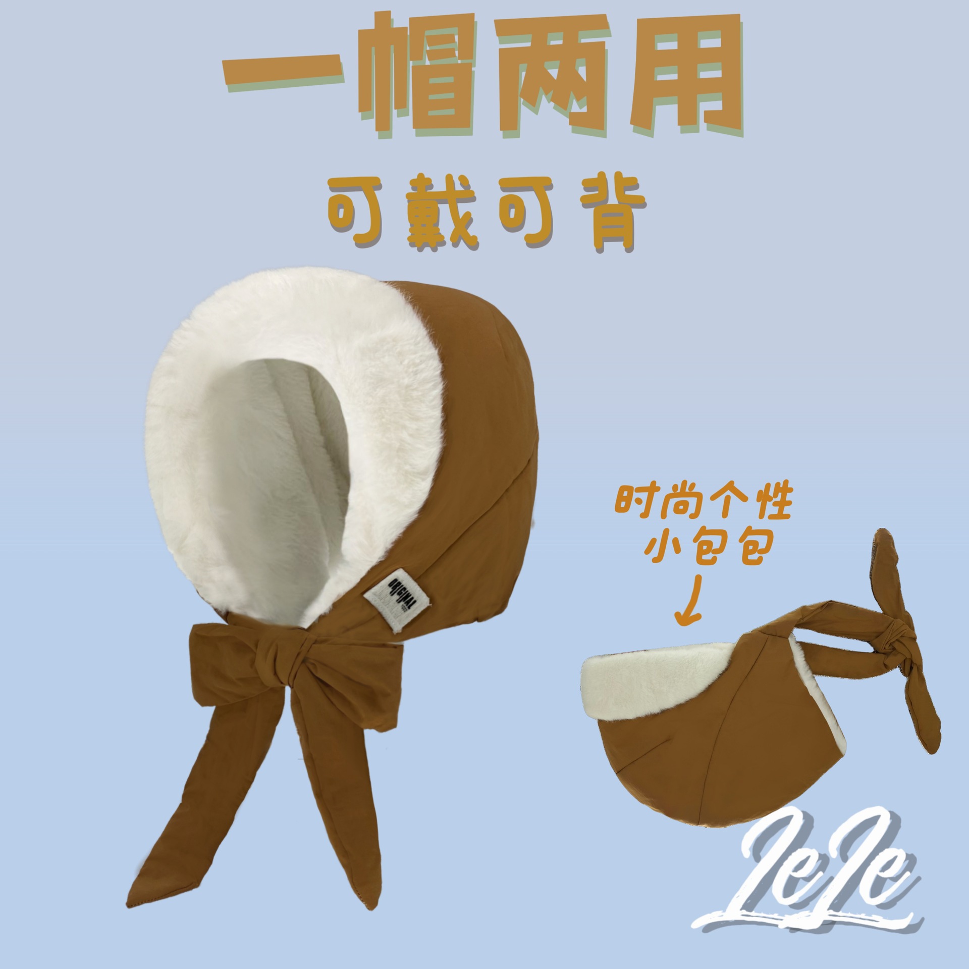 2025秋冬季护耳绑带雷锋帽显脸小可当挎包两用加厚百搭保暖帽子
