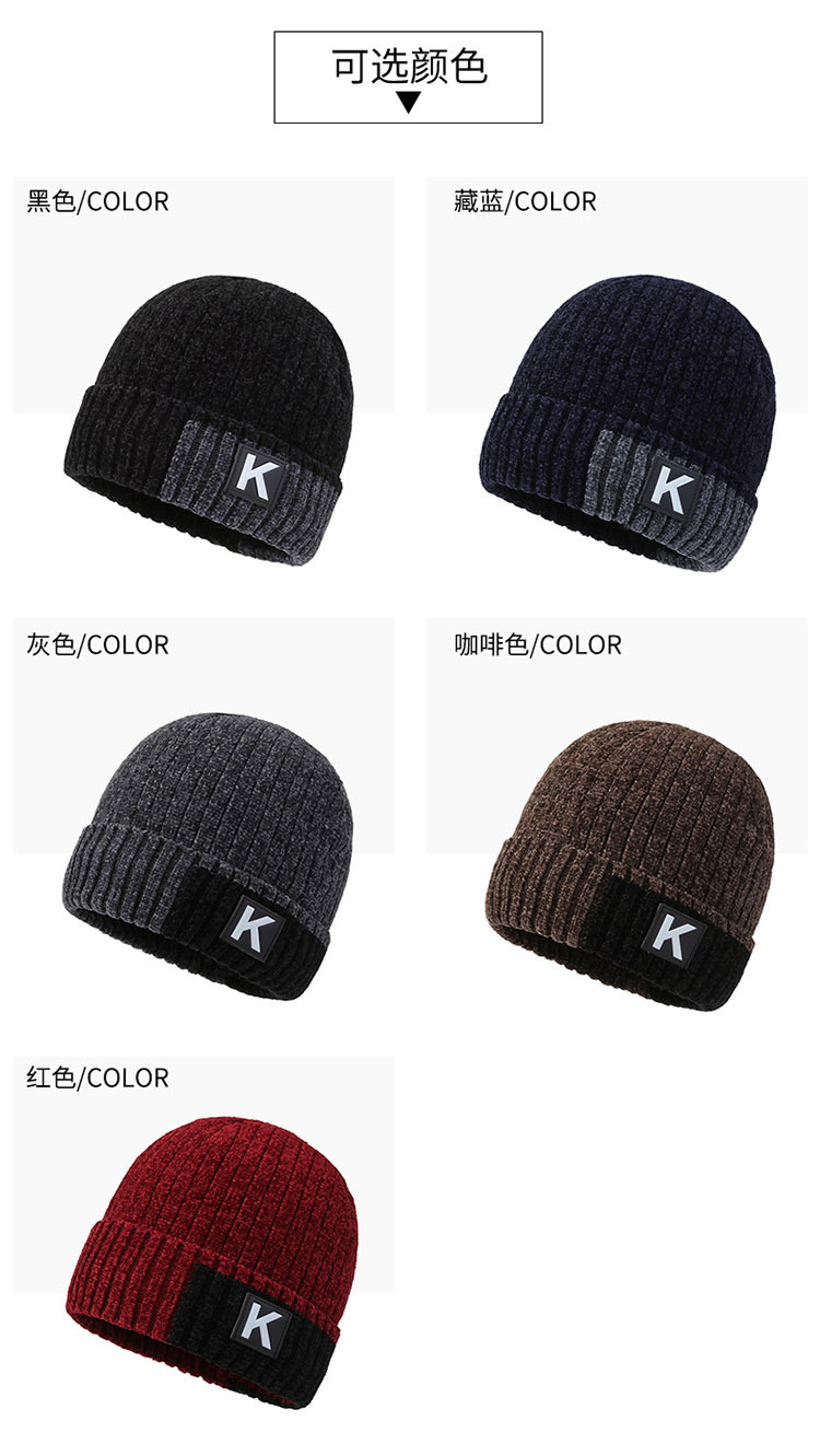 帽子男士冬季加绒加厚雪尼尔针织帽中老年户外骑车防寒套头毛线帽
