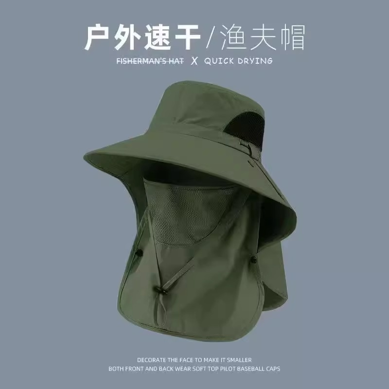 【包邮】大头围户外遮阳帽全脸防晒面罩钓鱼太阳帽大檐登山渔夫帽