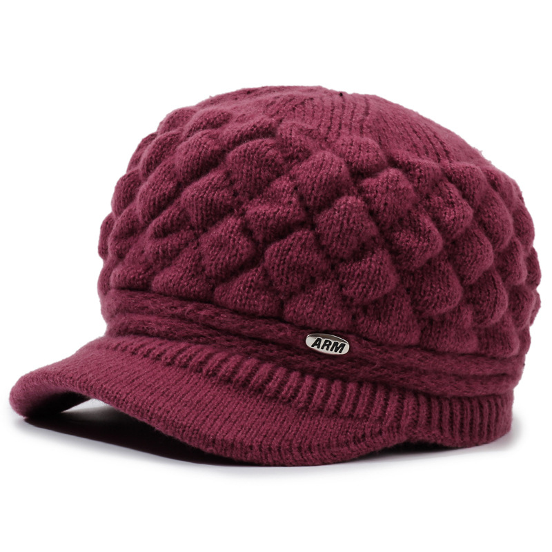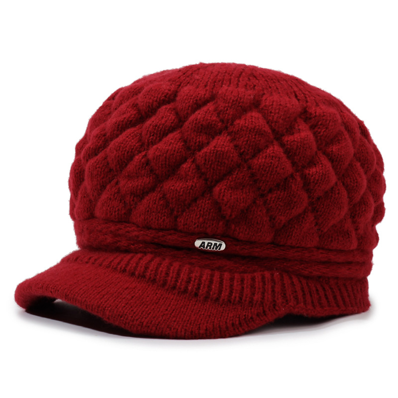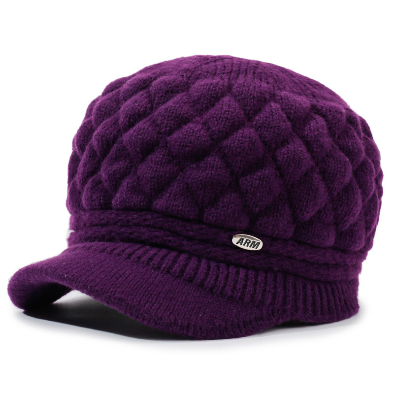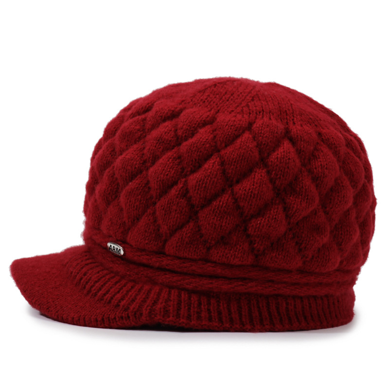 老太太帽子批发加绒加厚保暖针织帽中老年套头帽子奶奶妈妈毛线帽