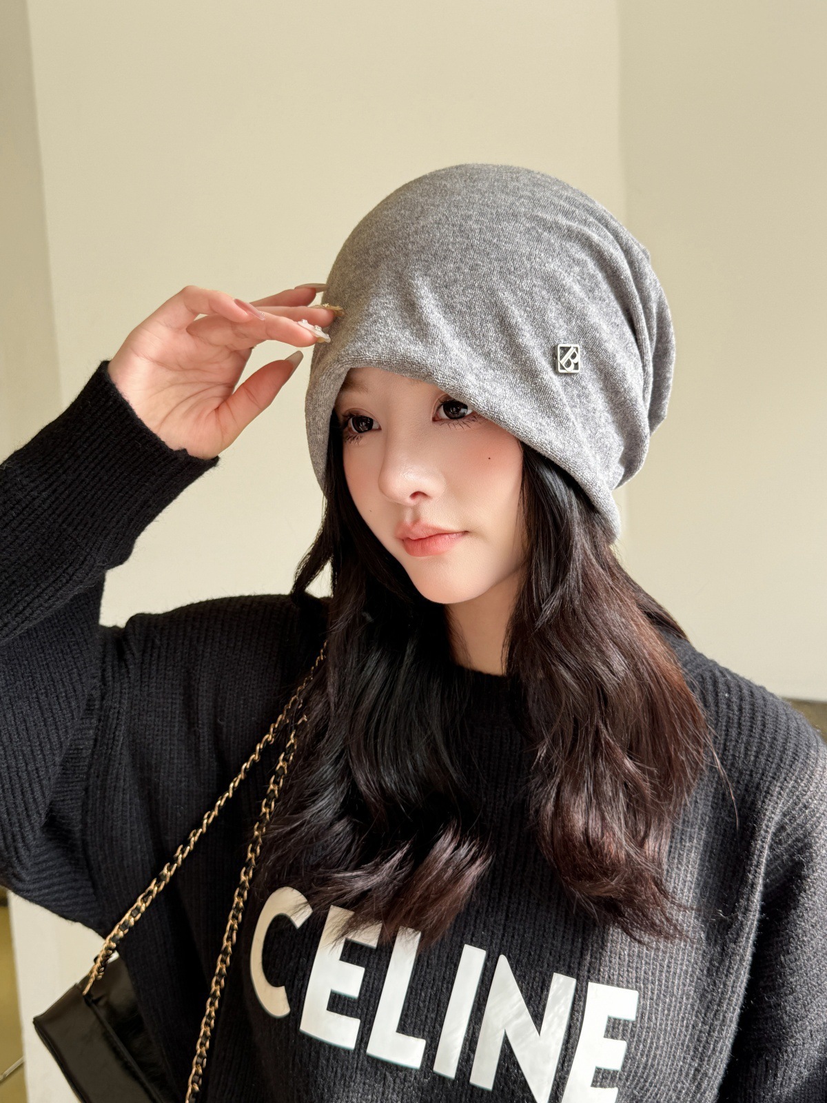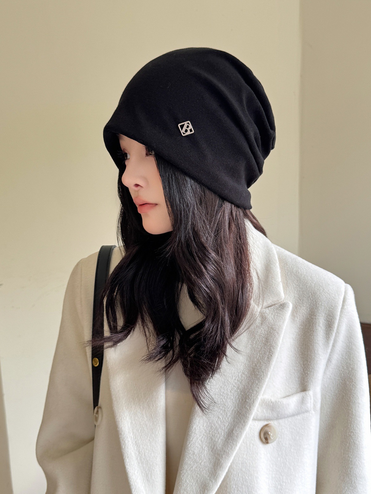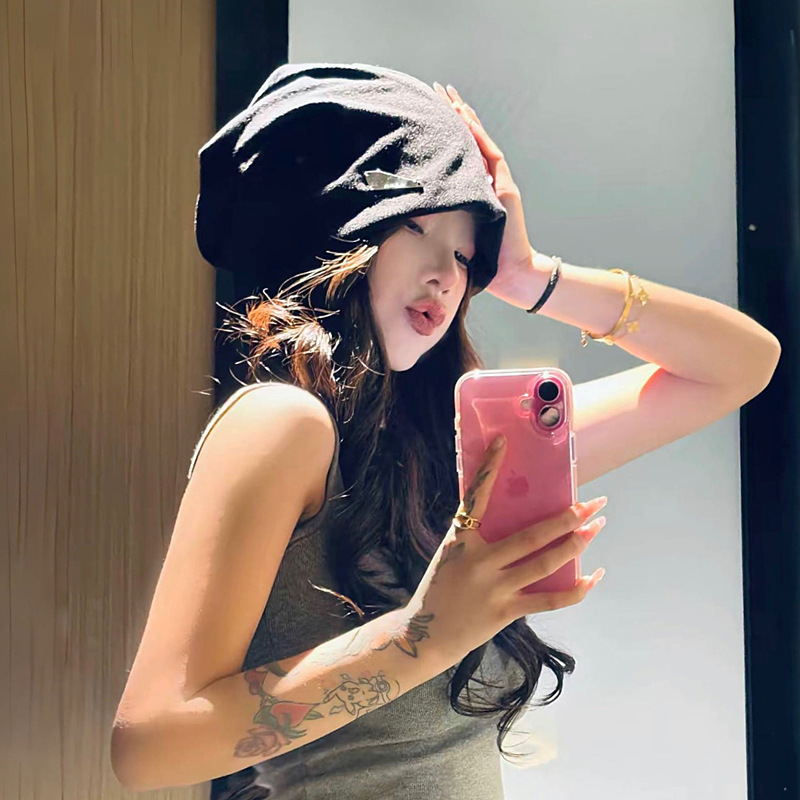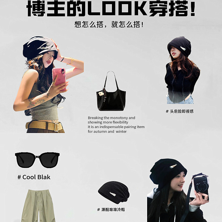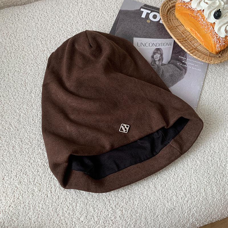 韩系黑色堆堆帽子女款2025新款素颜遮脸颊包头帽大头围显脸小冷帽