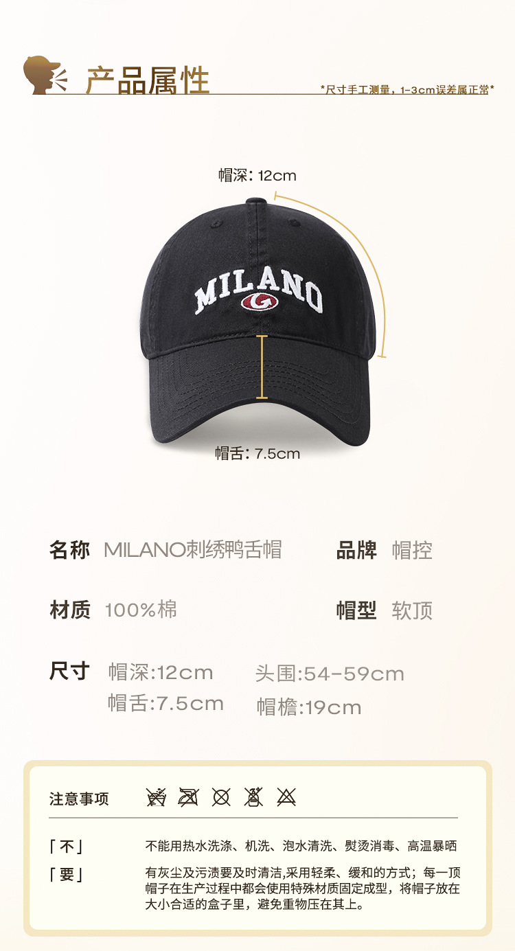 帽控|MILANO米兰原创设计软顶美式棒球帽遮阳防晒显脸小鸭舌帽女