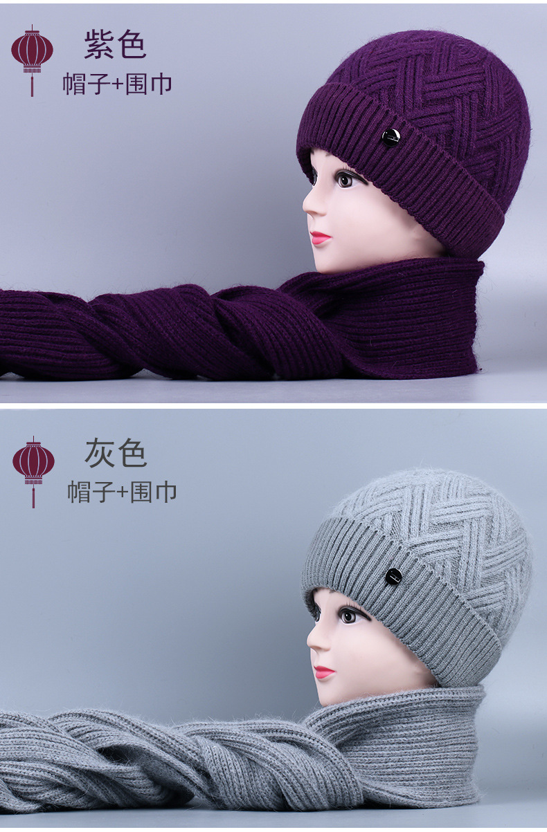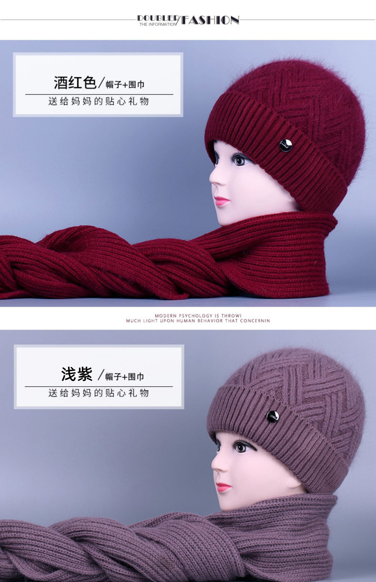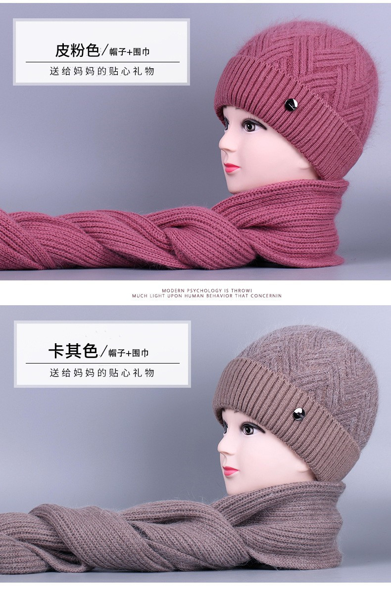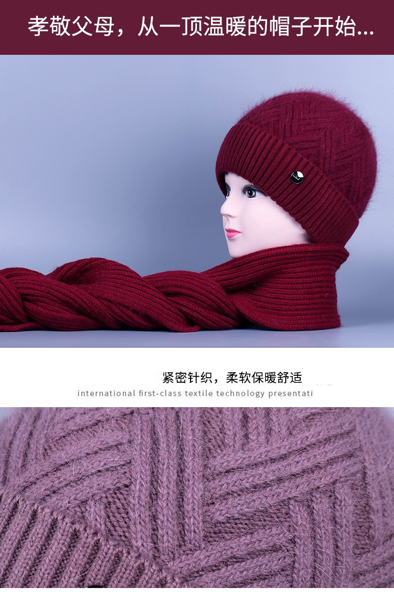 中老年人针织帽子女妈妈毛线帽围巾套装秋冬季保暖奶奶棉帽批发货