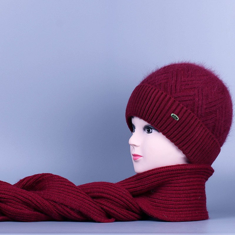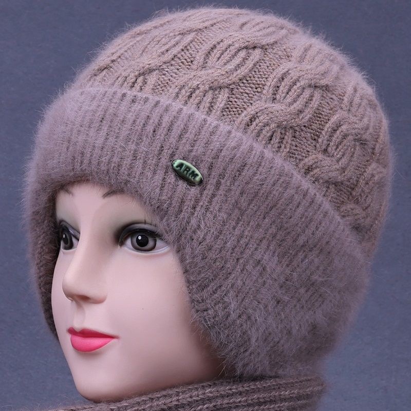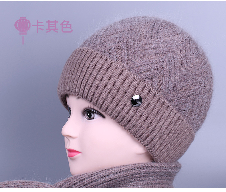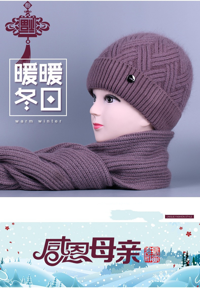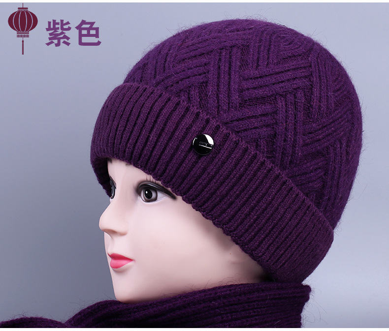 中老年人针织帽子女妈妈毛线帽围巾套装秋冬季保暖奶奶棉帽批发货