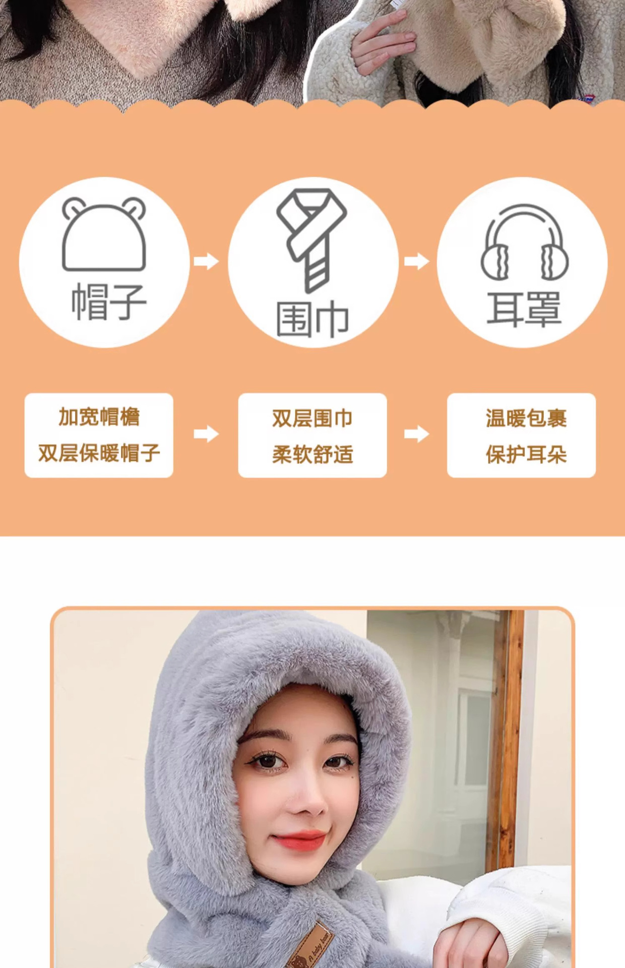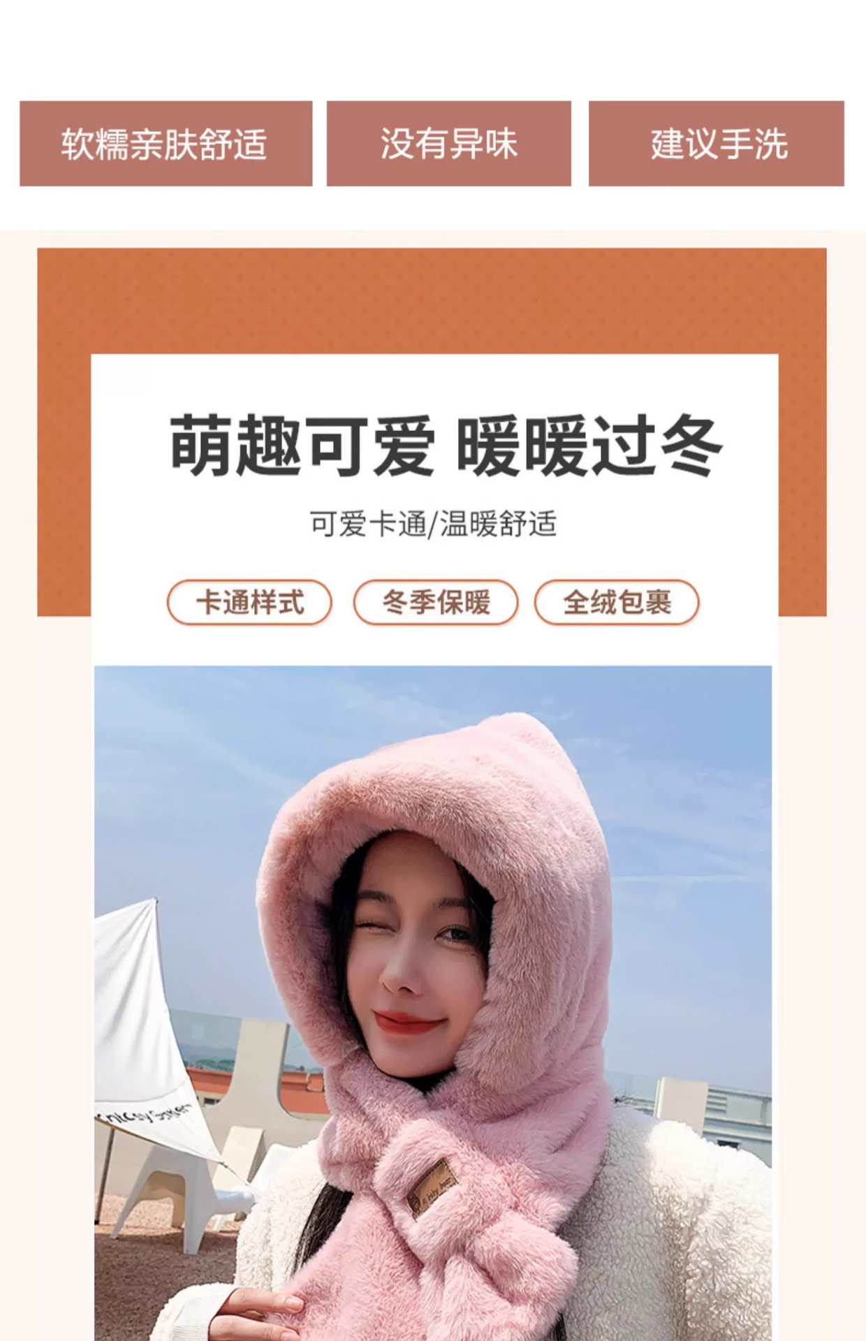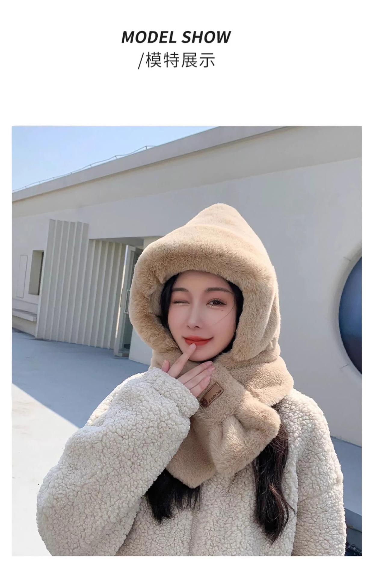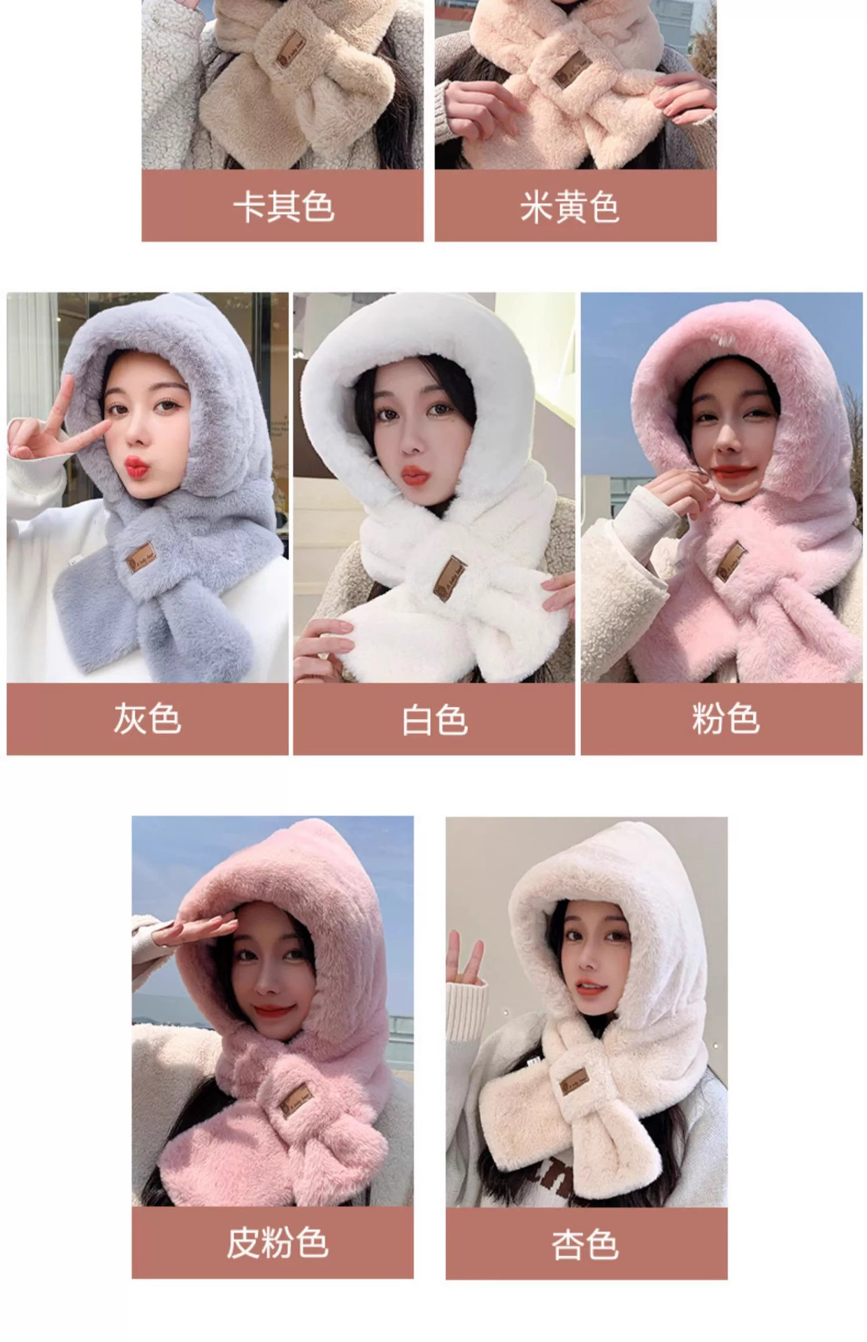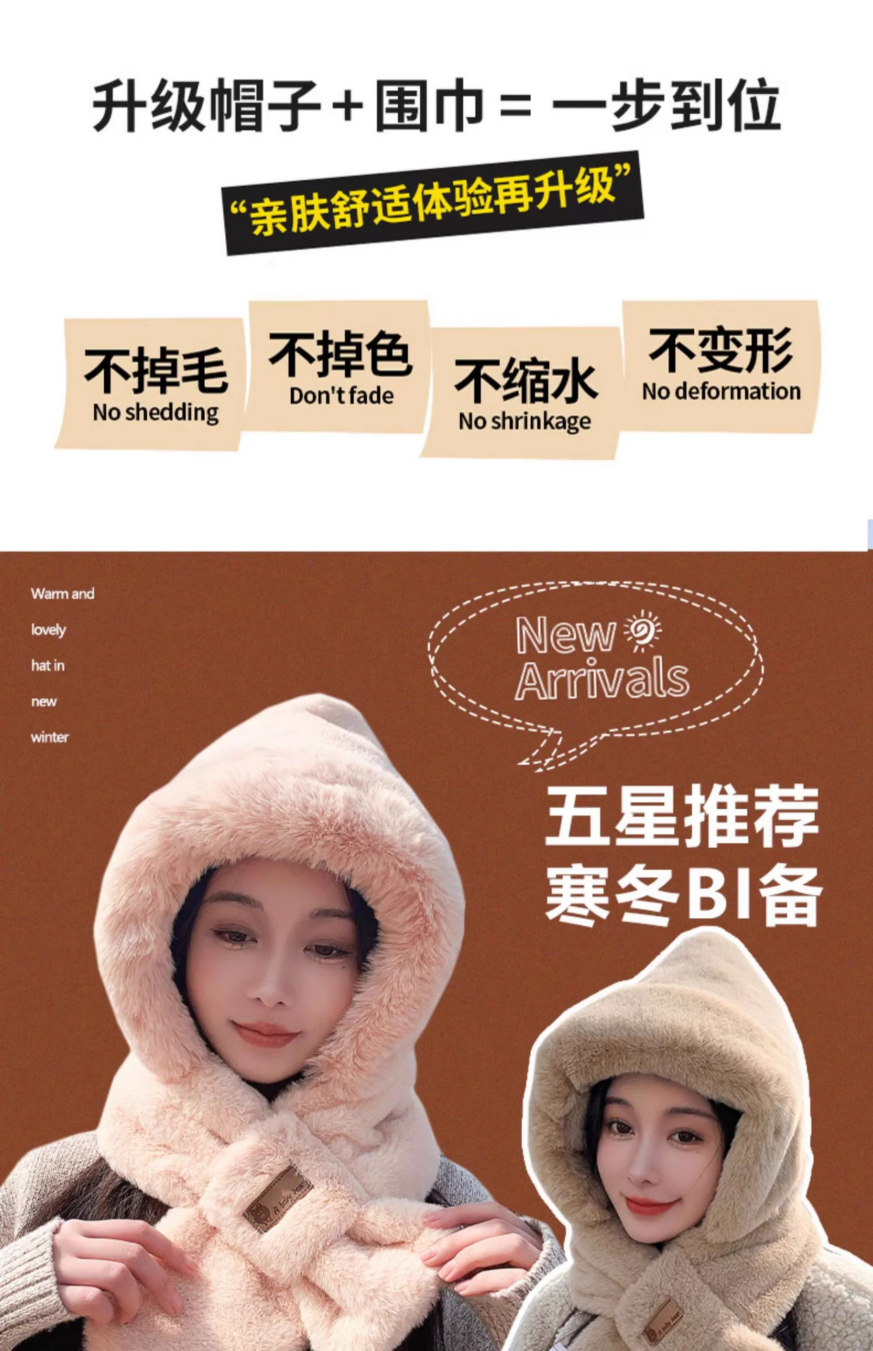 帽子女秋冬季围巾一体保暖毛绒连帽围脖一体骑车防风帽2025新款冬